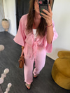 %100 Coton , Pembe , Önden Bağlamalı , Beli Lastikli , Müslim Takım