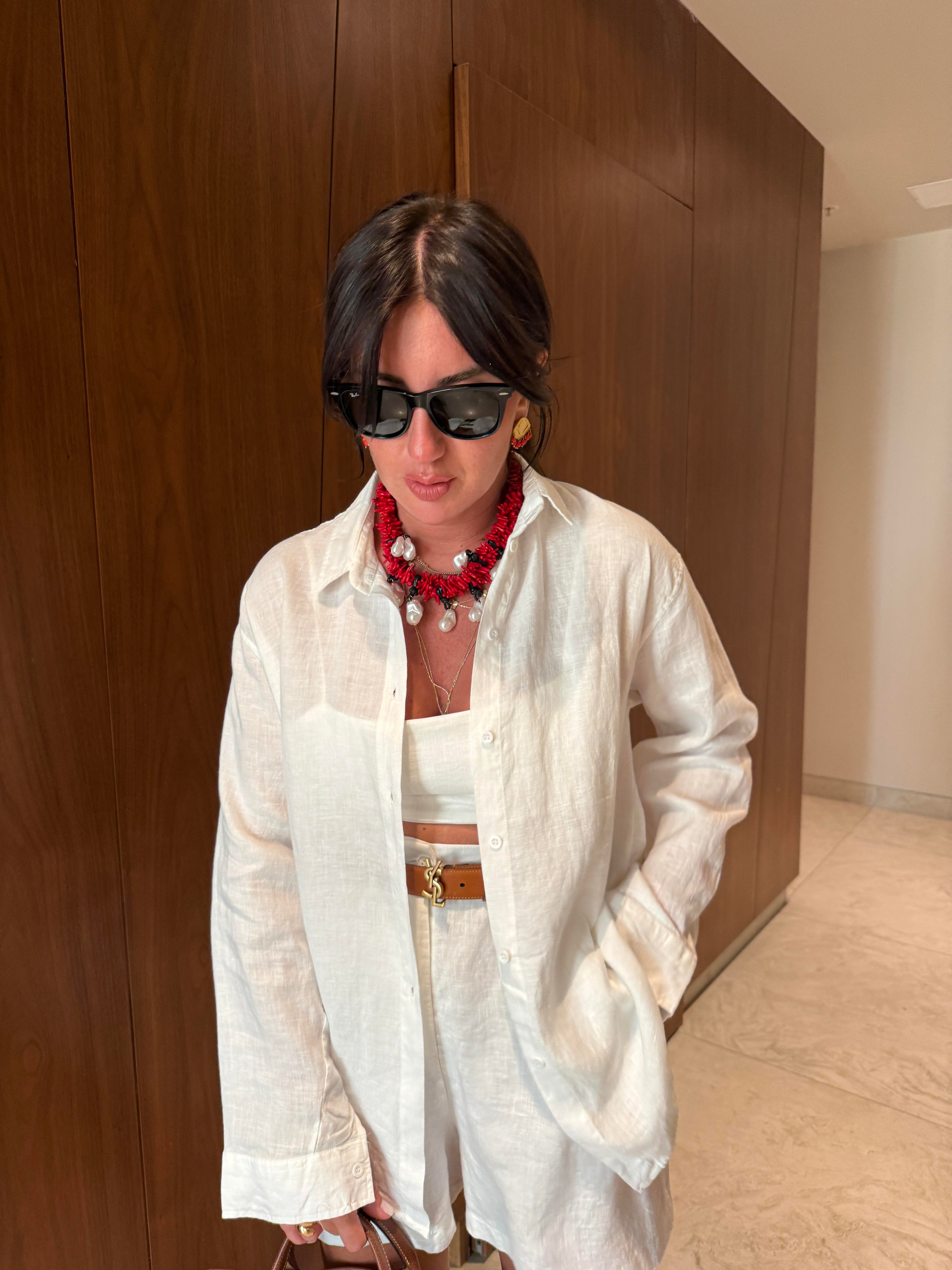 %100 İthal Keten , Ekru Gömlek (velu433gml-7117)