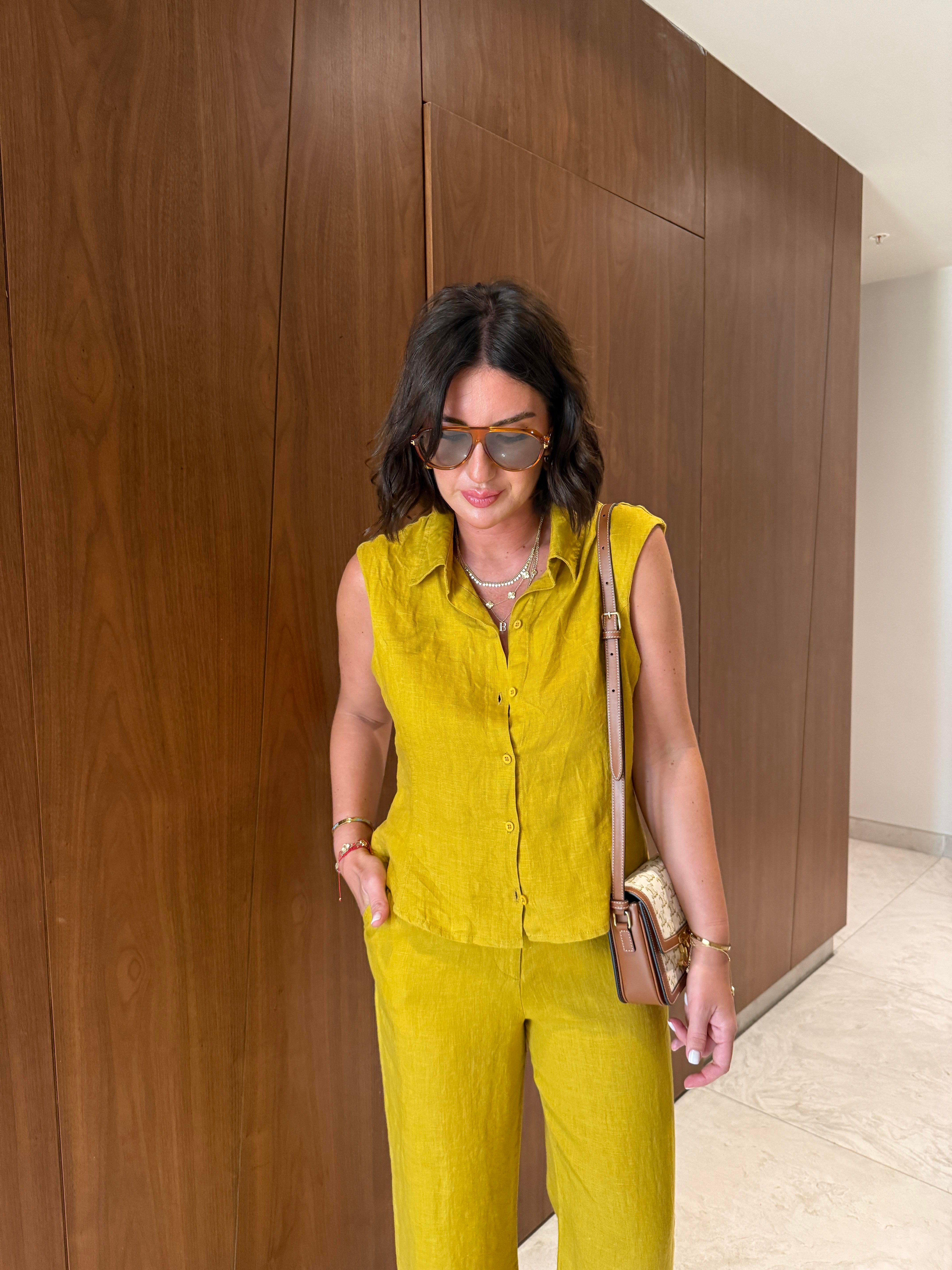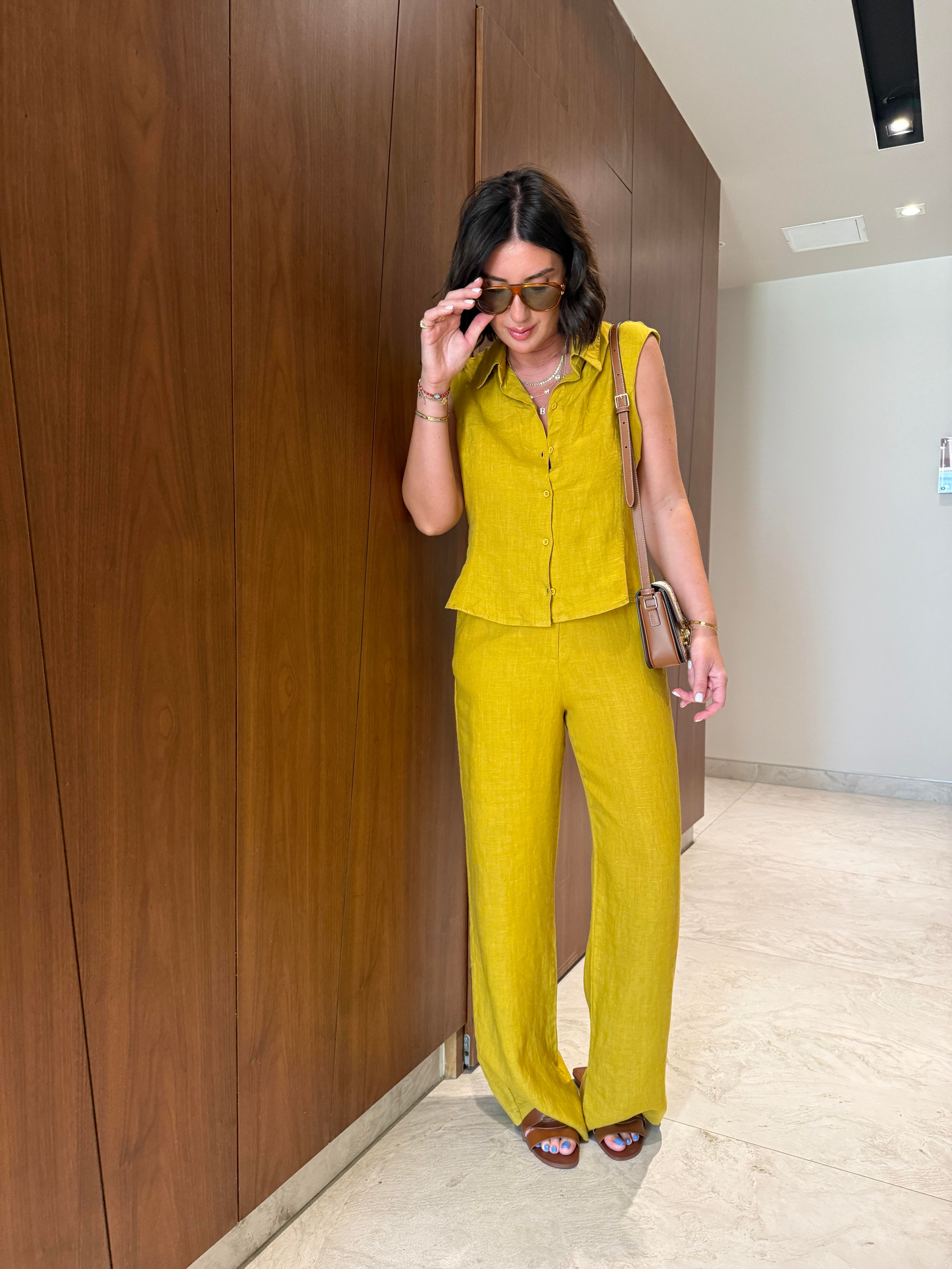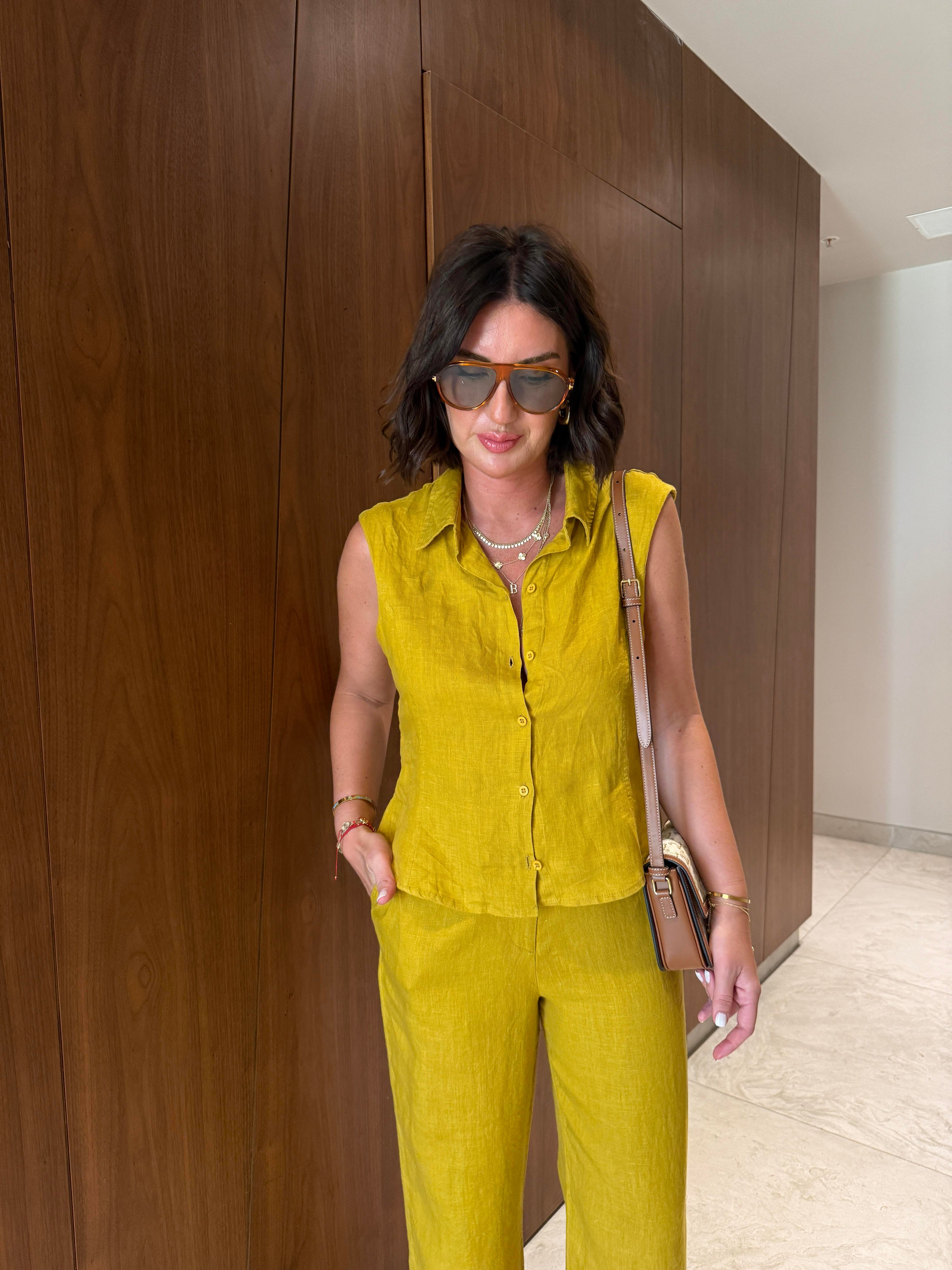 %100 İthal Keten , Premium , Hardal Gömlek Takım (vel445tkm-7097)