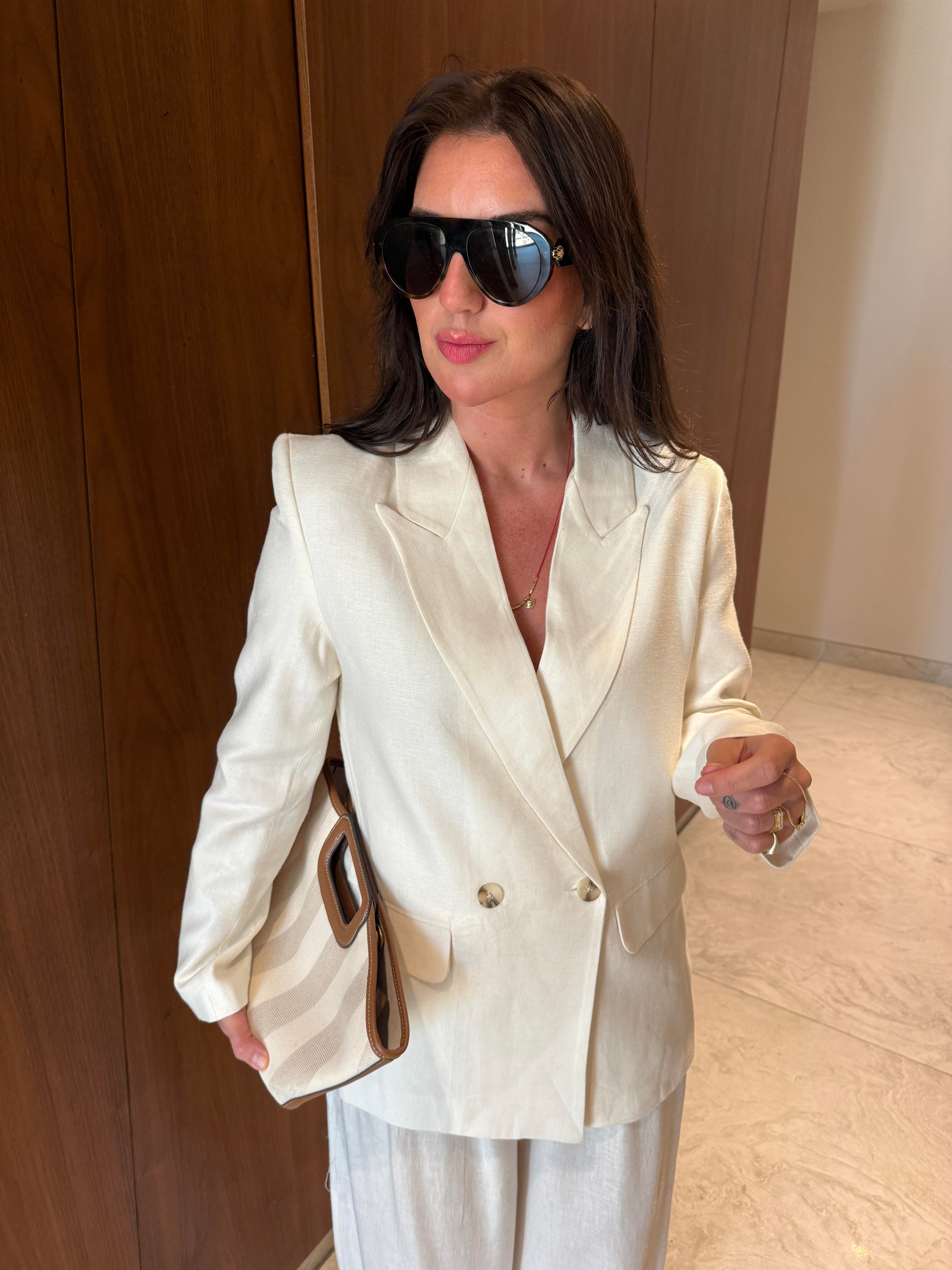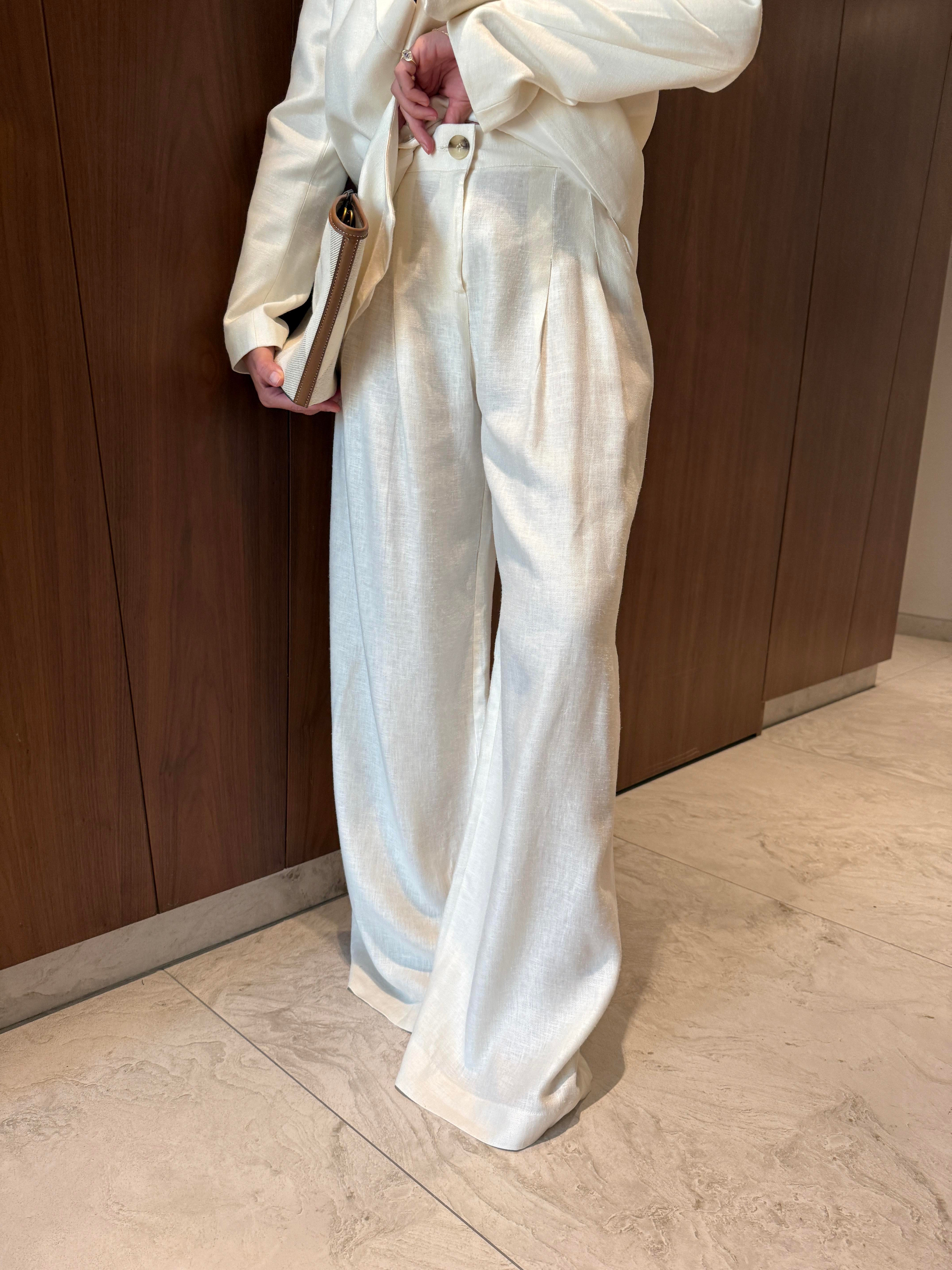 %100 Keten , Ekru , Blazer & Pantolon Takım