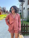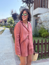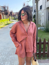 %100 Keten Gül Kurusu Gömlek & Şort Premium Takım