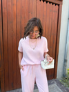 %100 Pamuk Özel Dokulu Toz Pembe Takım
