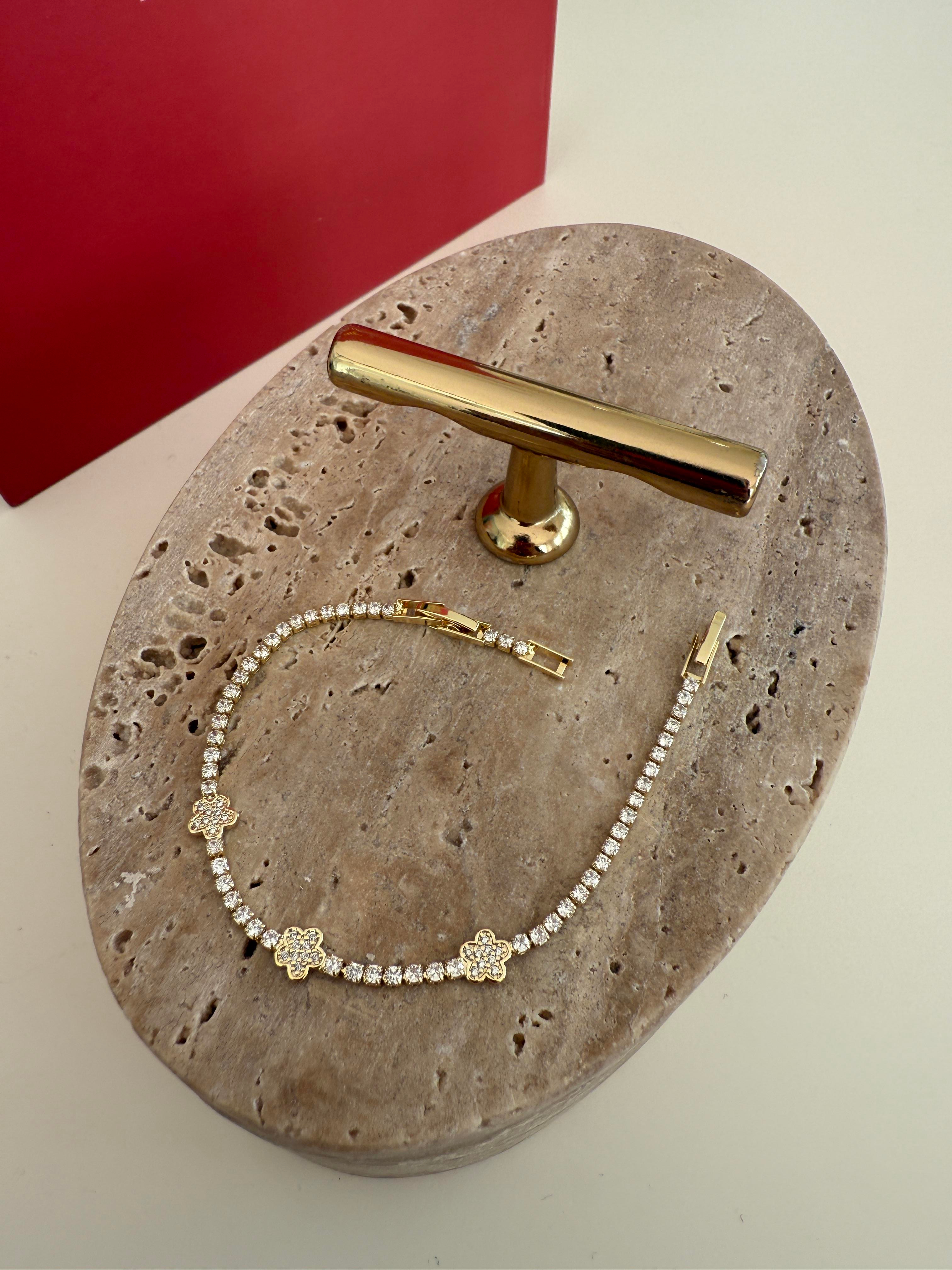 14k Gold Kaplama , Zirkon Taşlı , Üç Yonca Bileklik