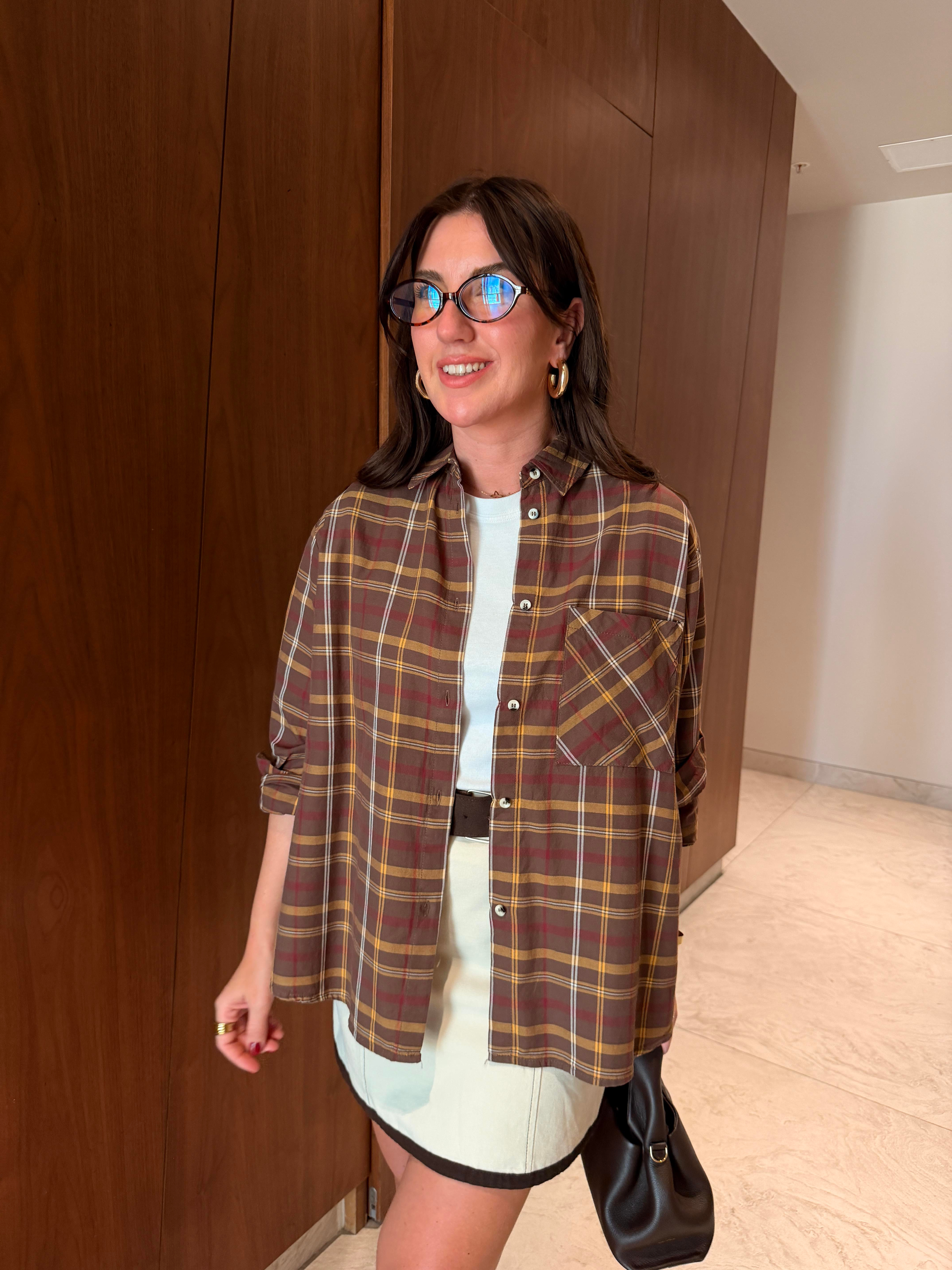 Acı Kahve Ekoseli , %100 Koton Gömlek