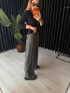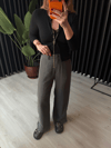 Antrasit Premium Tok Tencel Kumaş, Paçası Düğme Detaylı Pantalon