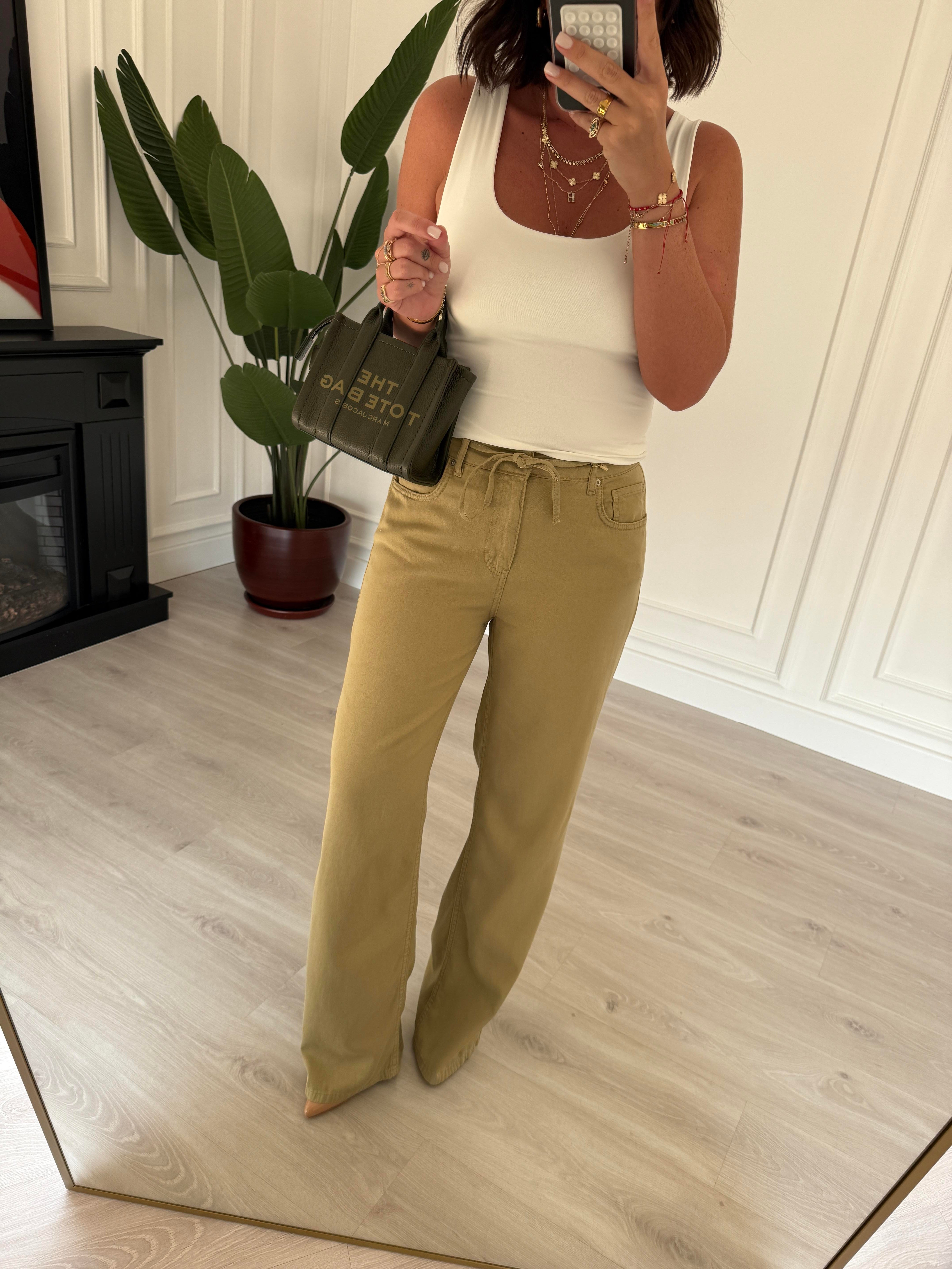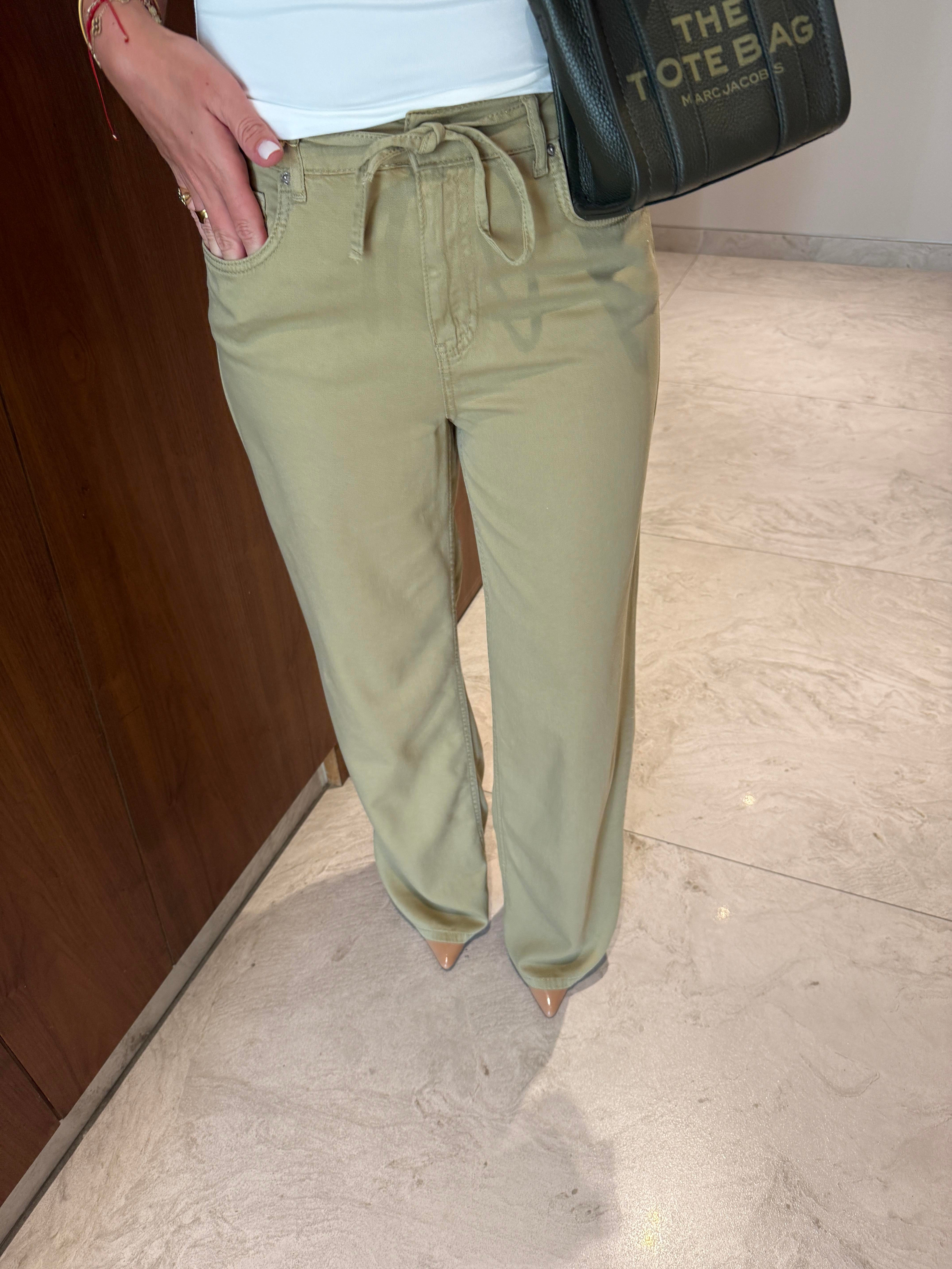 Arkası Lastikli , Kuşaklı , Premium , Haki , Tencel Gabardin Palazzo (dilvi543pnt1-7089)