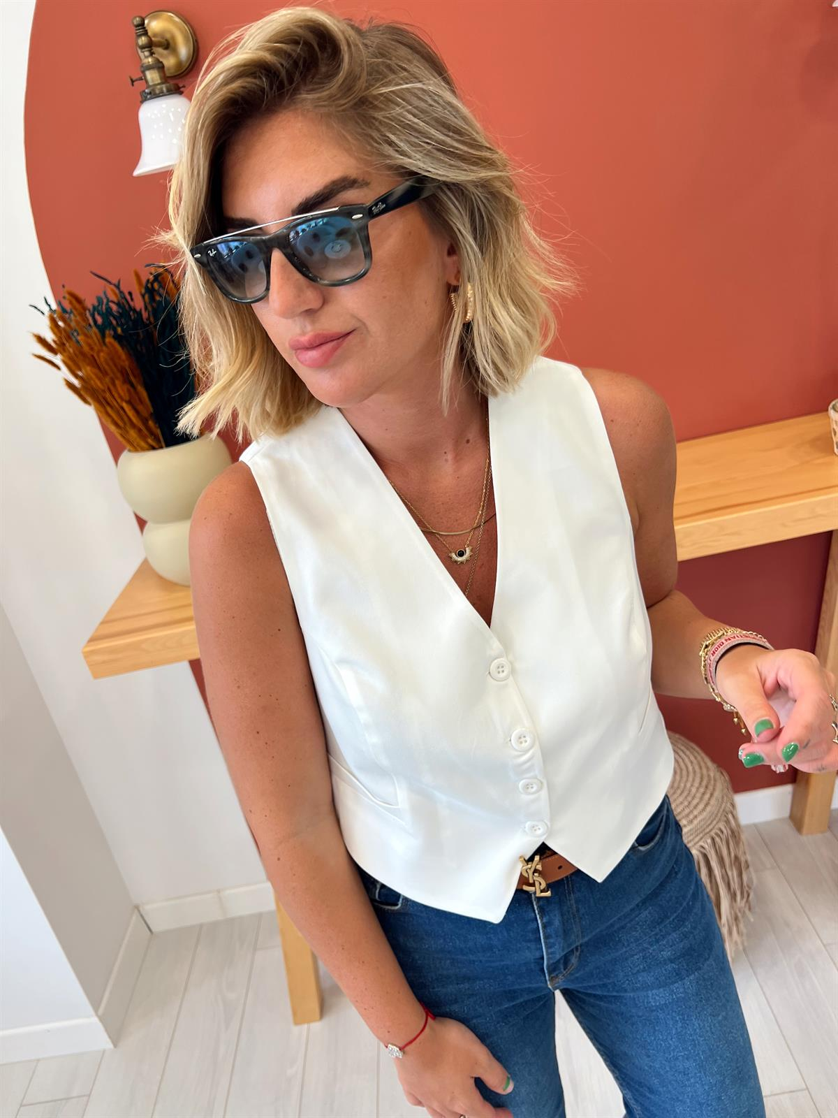 Astarlı Ekru Krep Kumaş Yelek (839203)