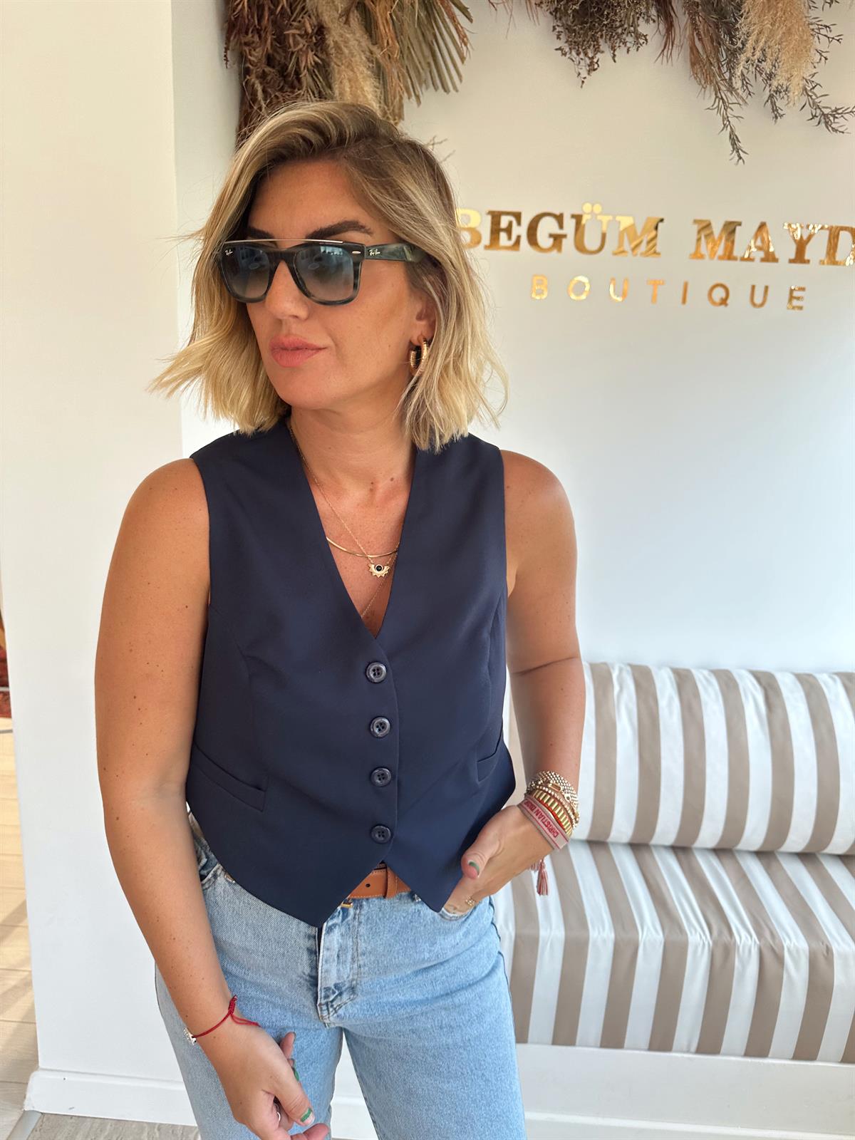 Astarlı Lacivert Krep Kumaş Yelek (839203)