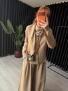 Bej Orijinal Model Fular Yakalı Gömlek & Pantalon Premium Tencel Takım