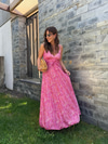 Belden Bağlamalı , Askılı , Bordo Desenli , İthal Elbise Belden Bağlamalı , Askılı , Pembe Şal Desenli , İthal Elbise