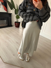 Beli Gizli Lastikli Pamuk Saten , Gümüş Etek