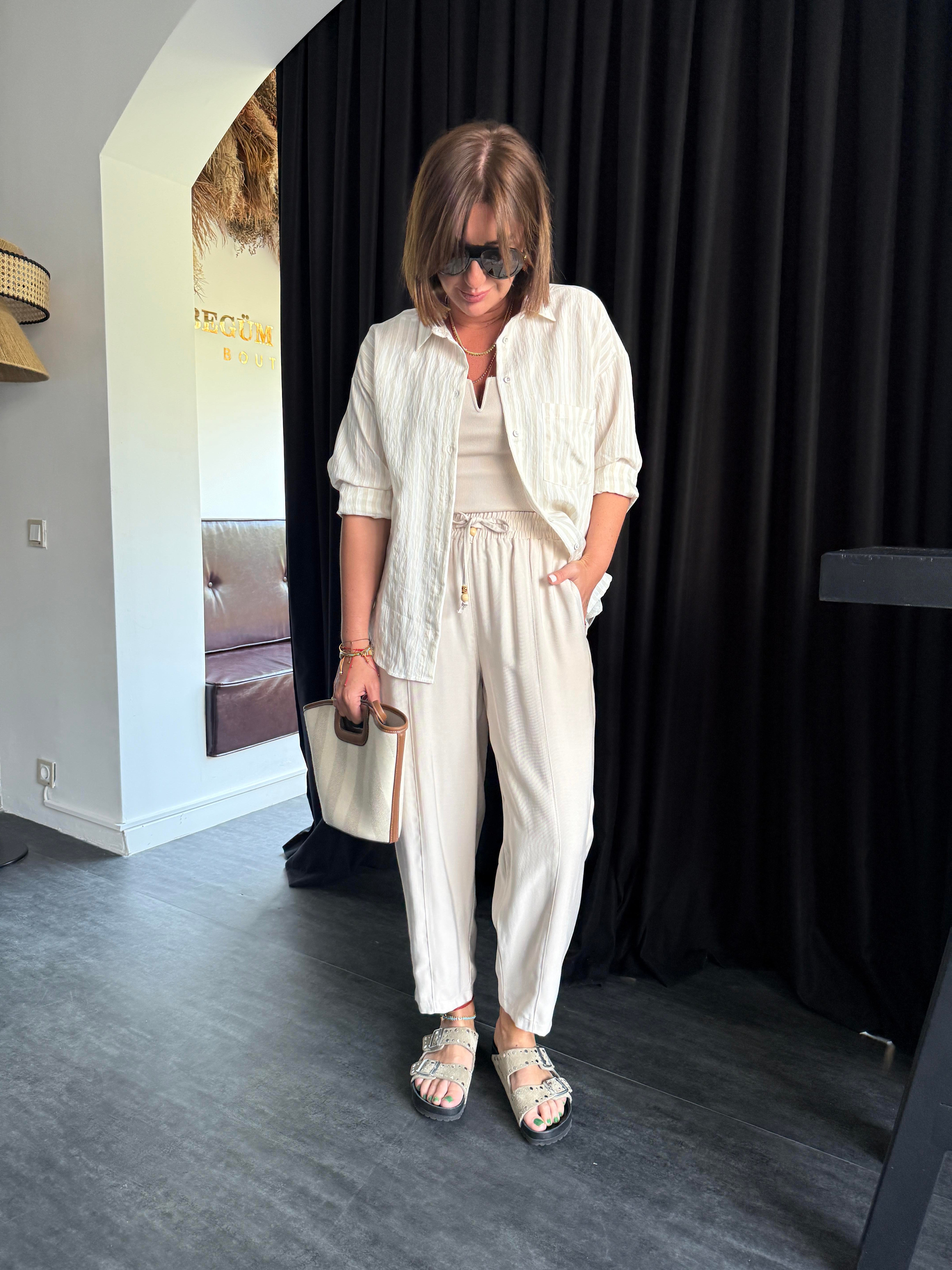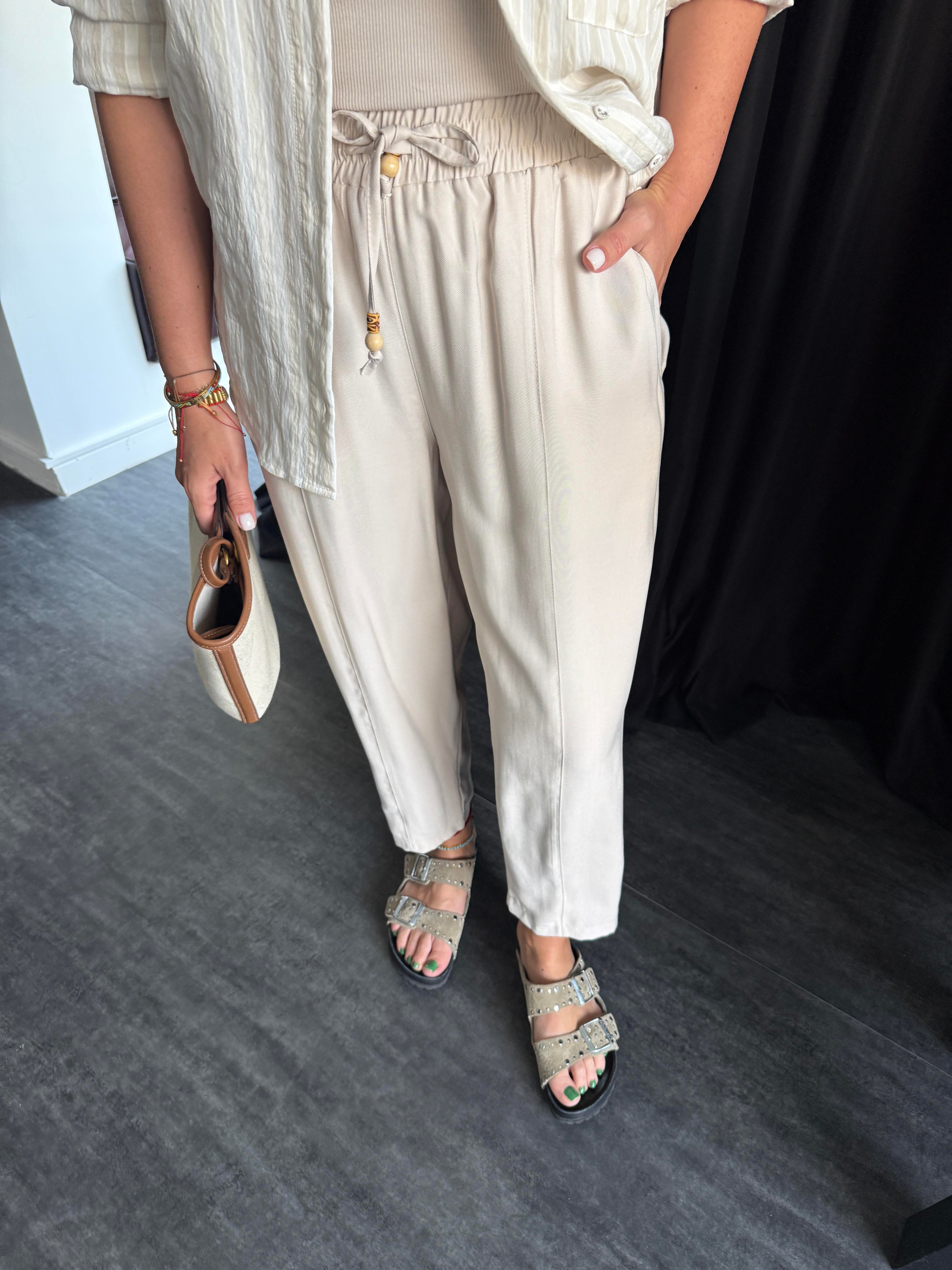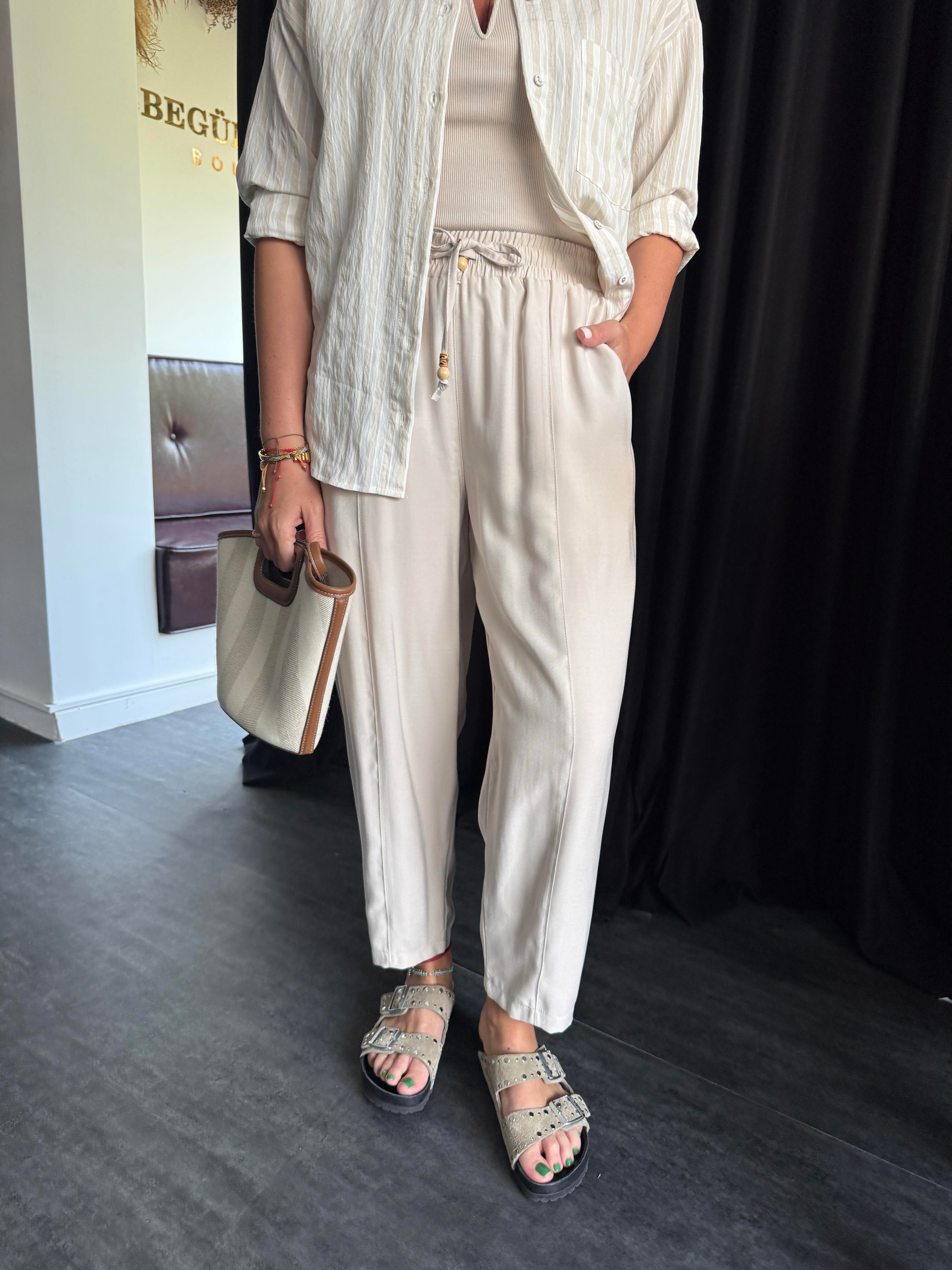 Beli Lastikli , Binici Model , Bej , Tencel Pantolon