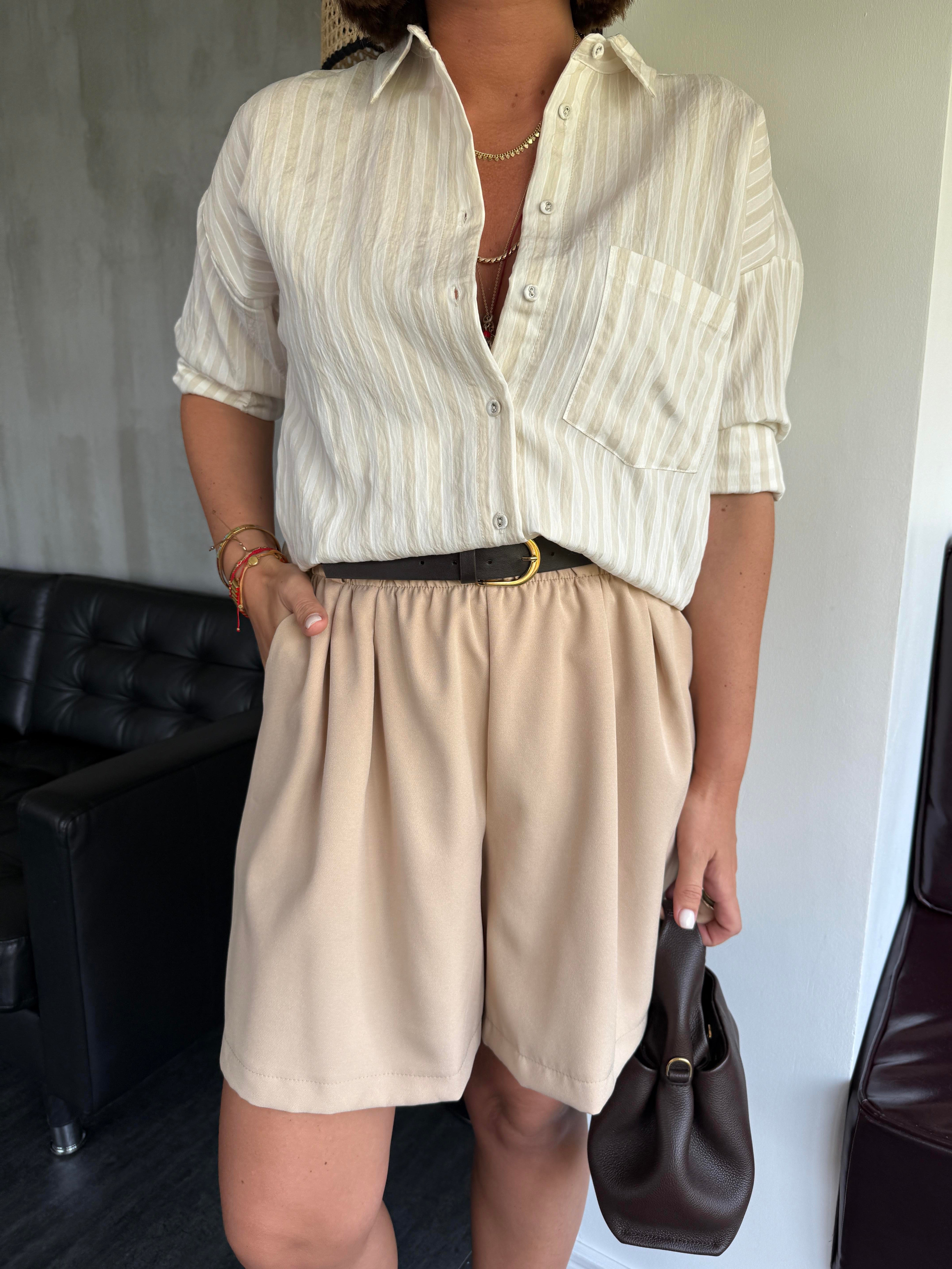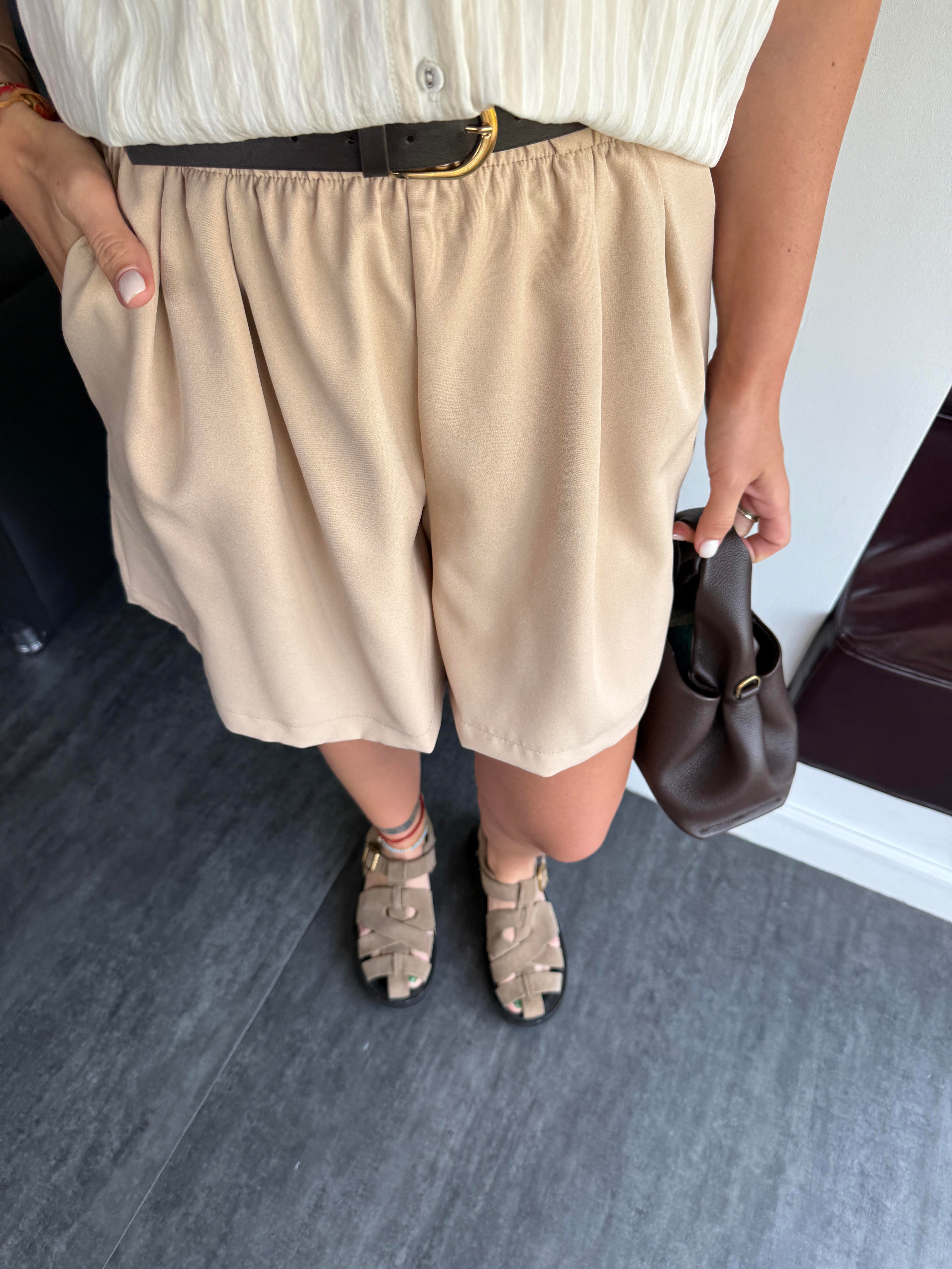 Beli Lastikli , Likralı , Kemerli , Bej Şort