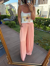 Beli Lastikli , Somon Rengi , Saten Pantolon