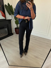 Bir Beden İncelten , Lacivert , Yırtmaçlı Paça Pantolon