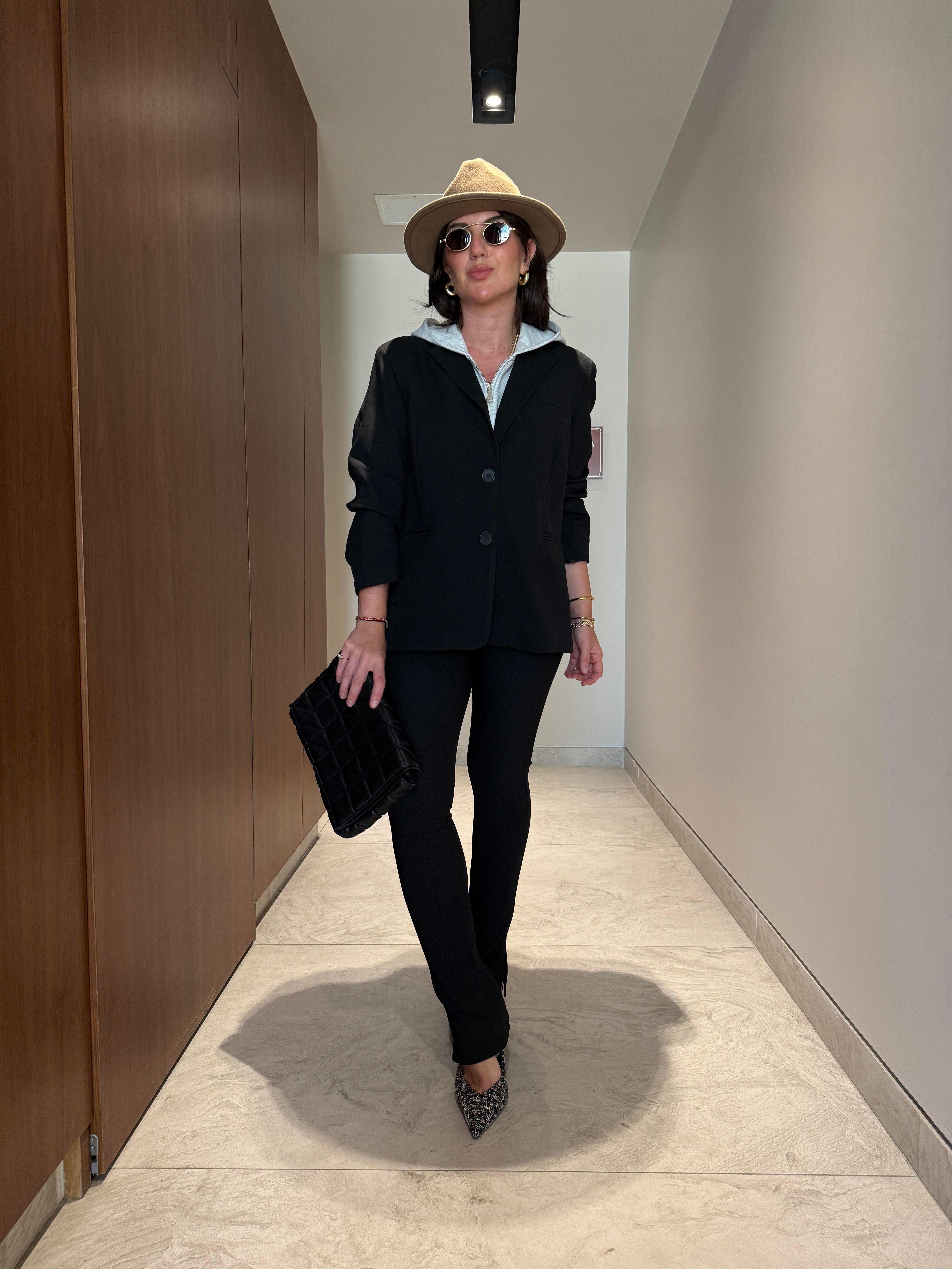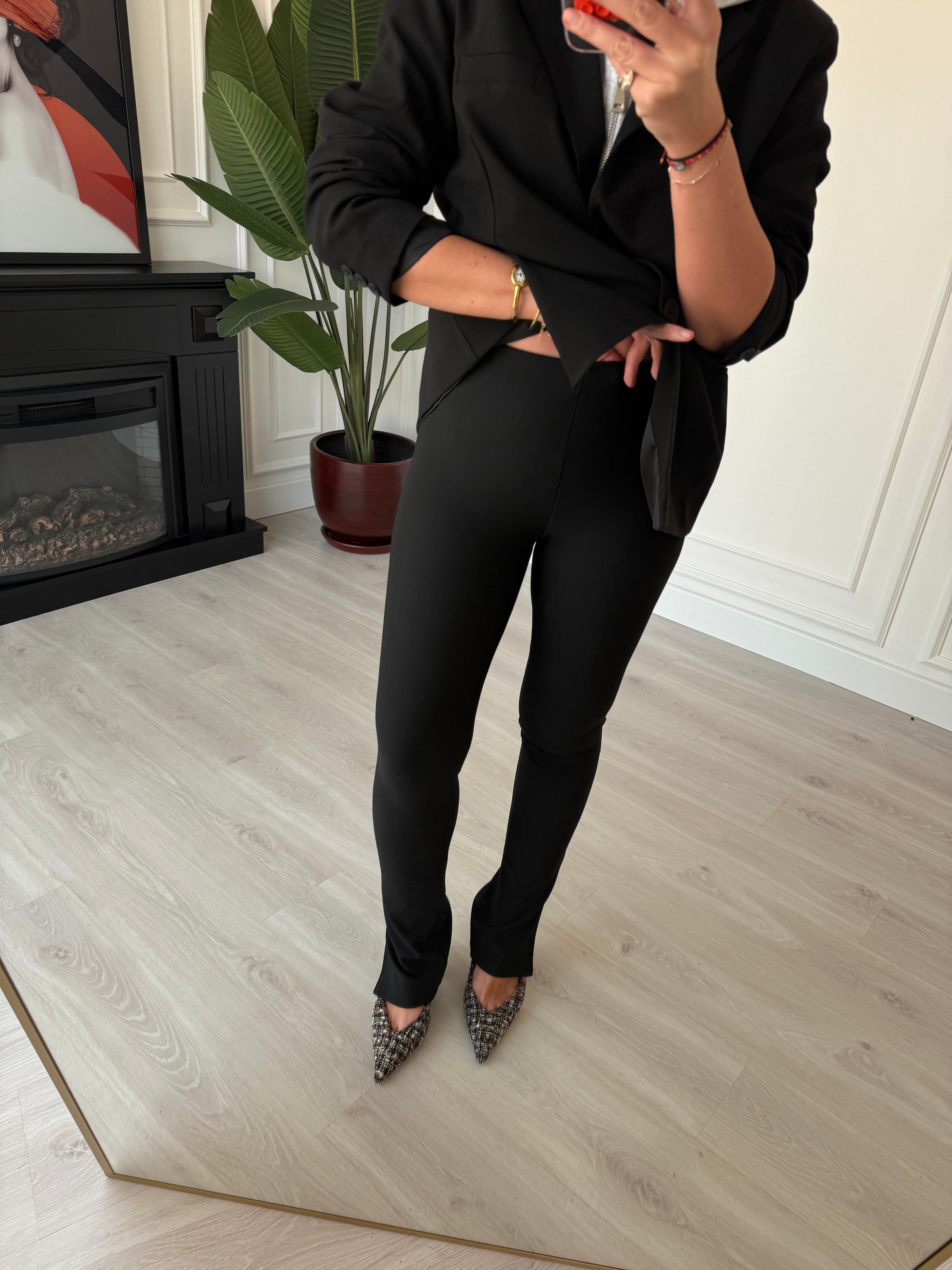 Bir Beden İncelten , Paçası Yırtmaçlı , Siyah , Tayt Pantolon