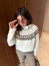 Bisiklet Yaka , Ajurlu Ekru Triko