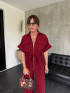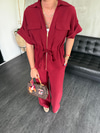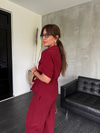 Bordo Tencel Ceket & Beli Lastikli Pantolon Takım
