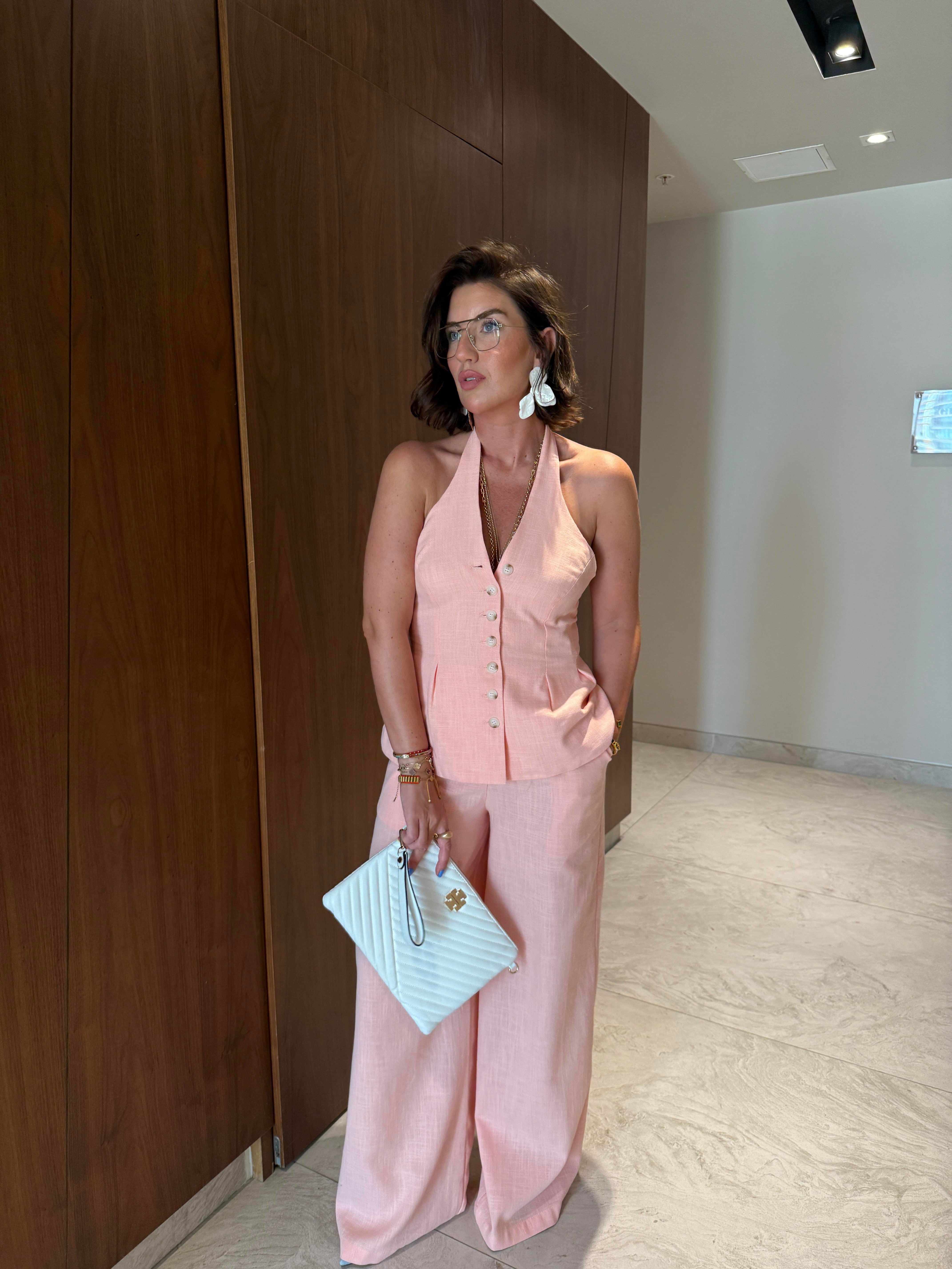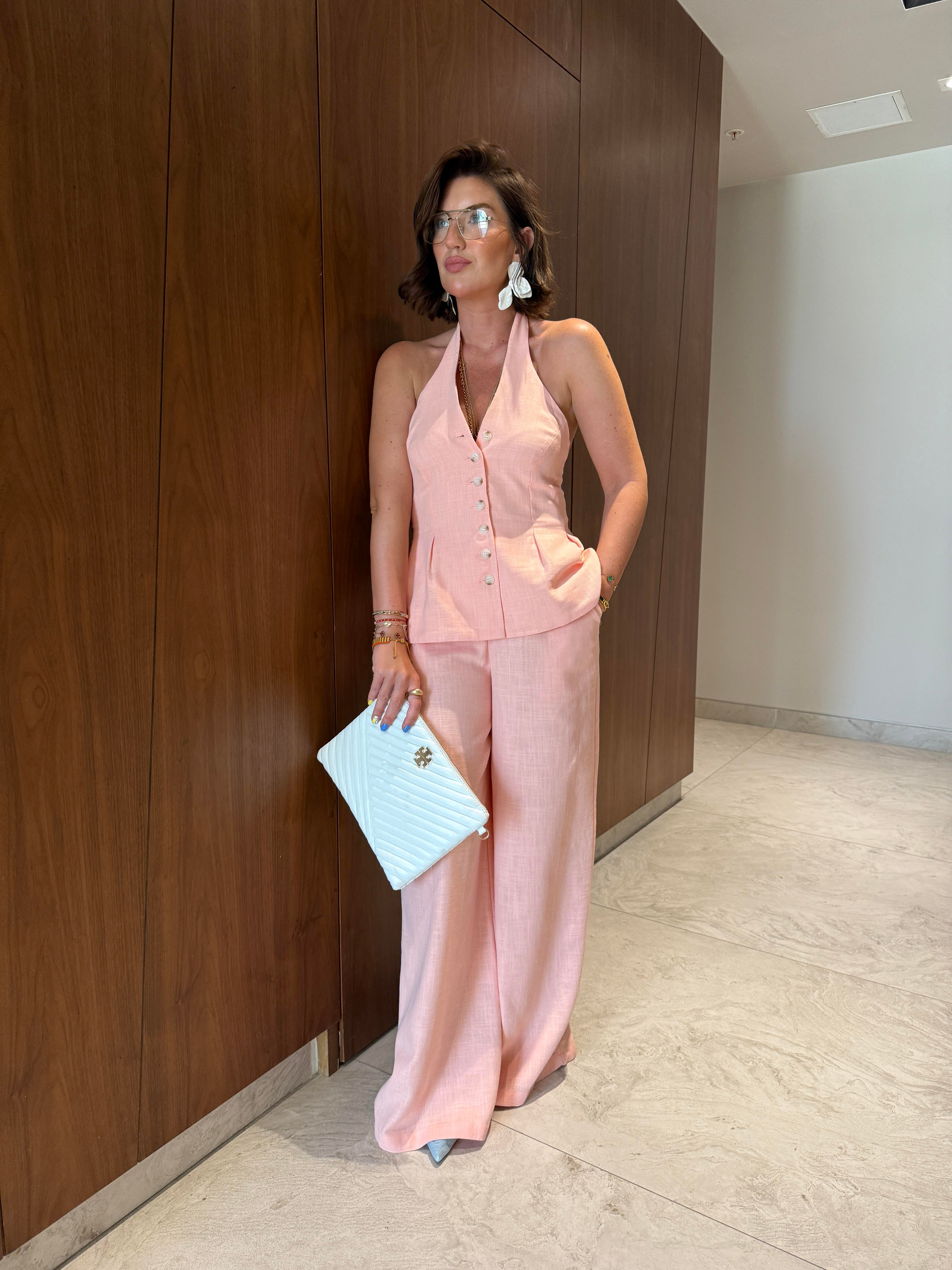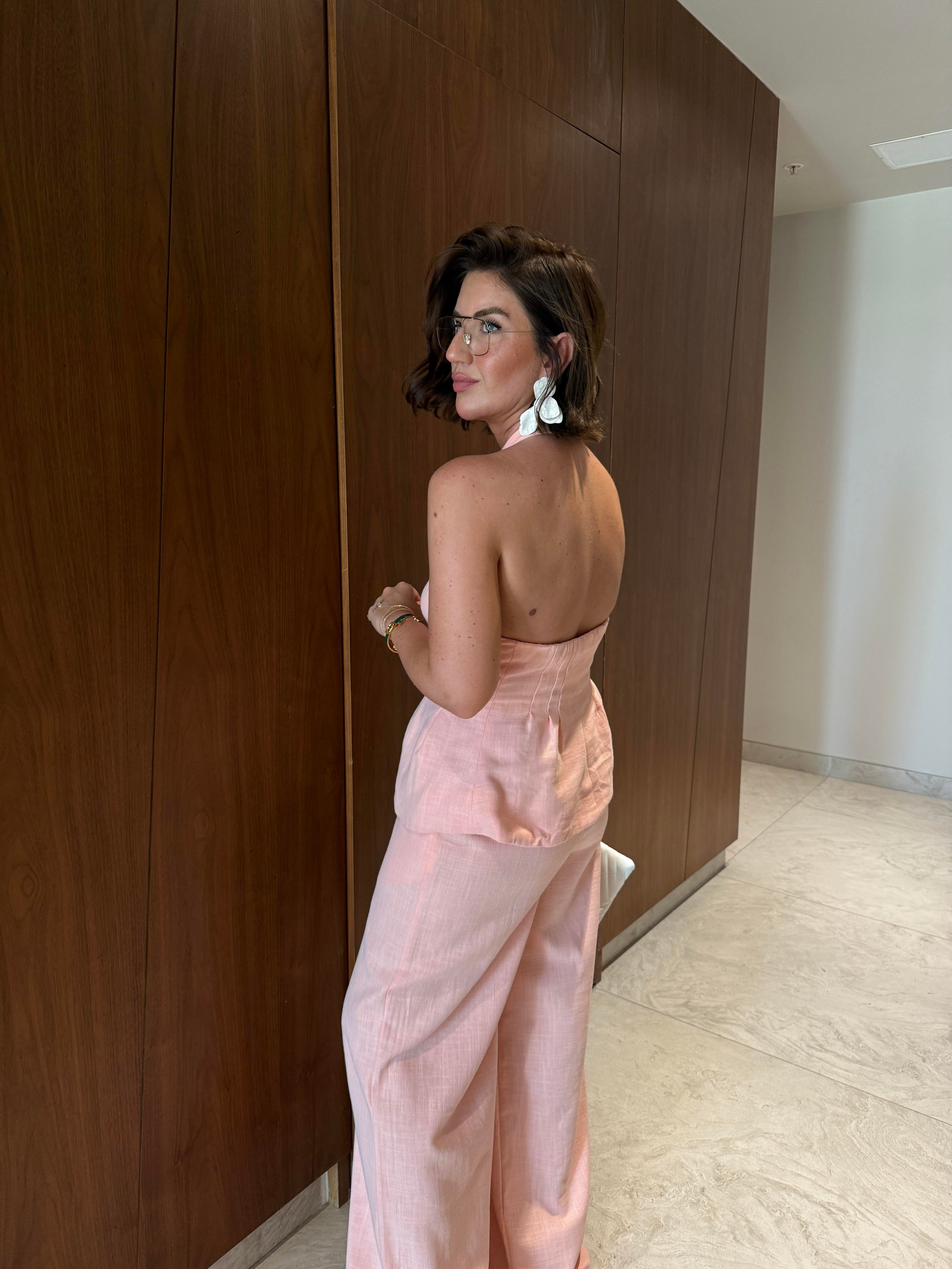 Boyundan Bağlamalı , Premium , Somon , Pamuk Keten Takım