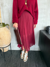 Buruşuk Model , İçi Astarlı , Bordo Midi Etek
