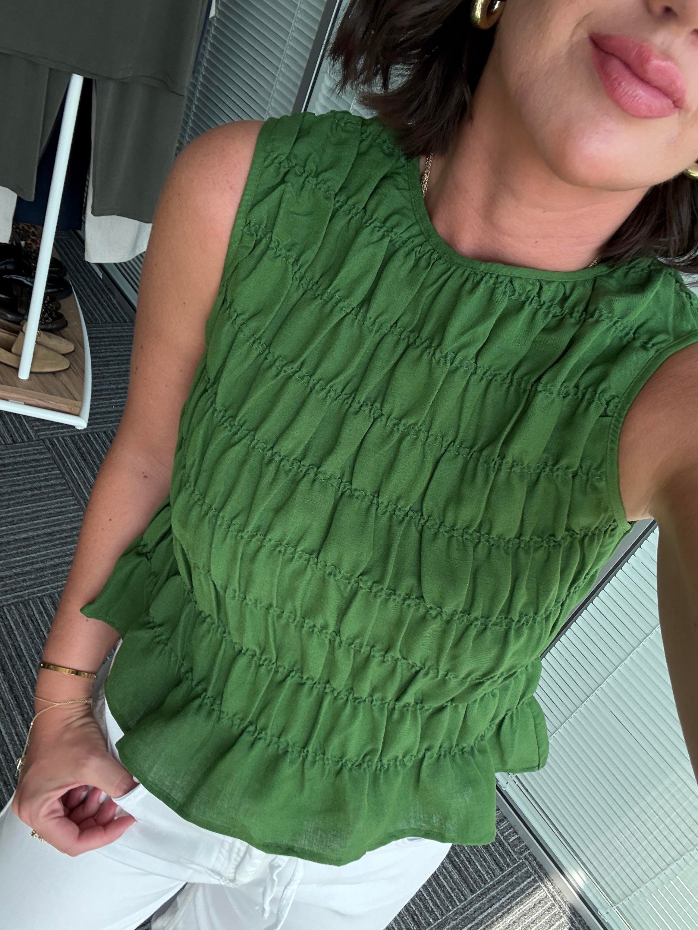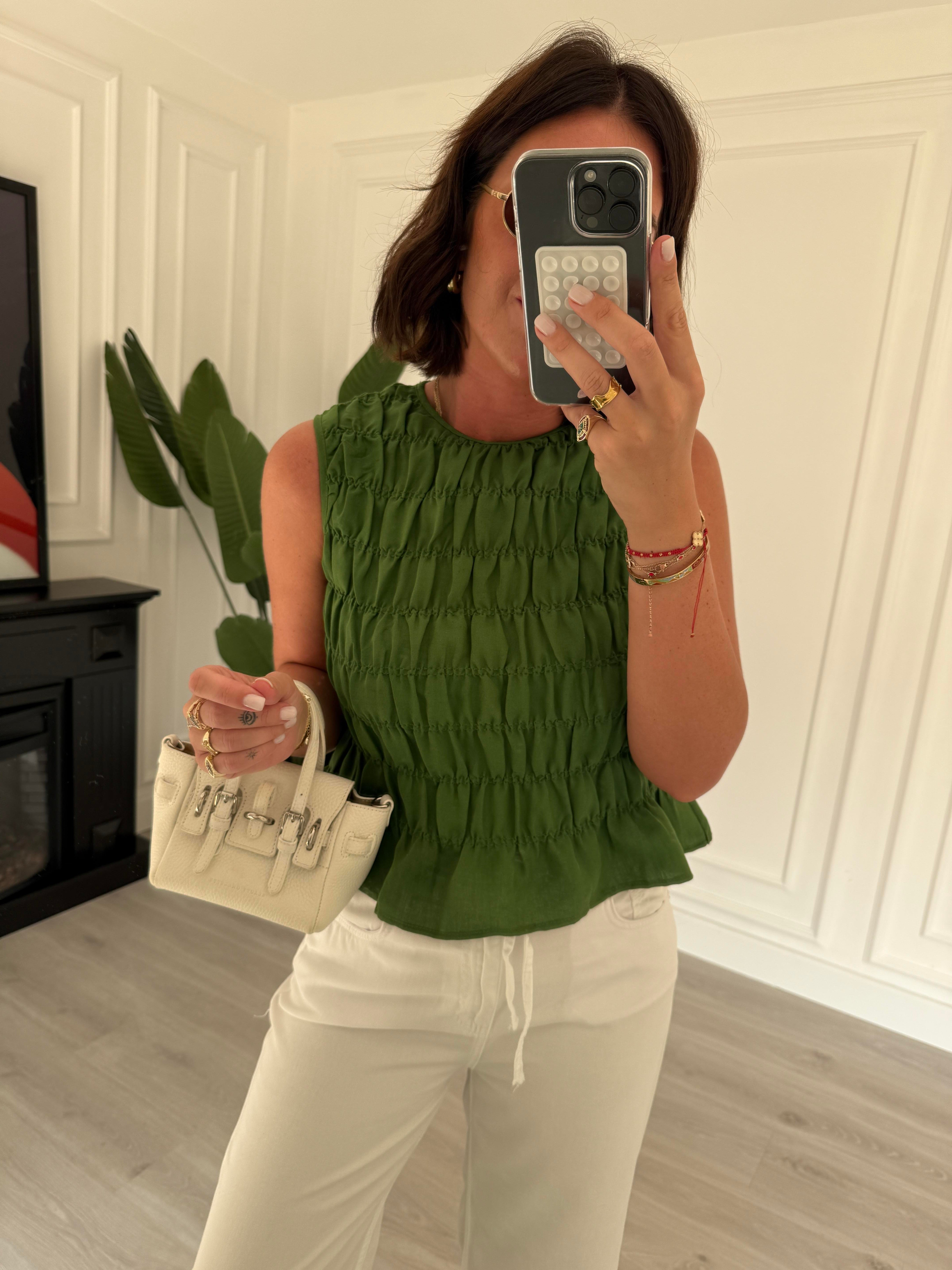 Büzgülü , Tasarım , Yeşil Kolsuz Bluz