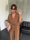 Camel Tencel Ceket & Beli Lastikli Pantolon Takım (DT839923)