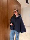 Çantalı , Premium , Lacivert Pelerin Trençkot