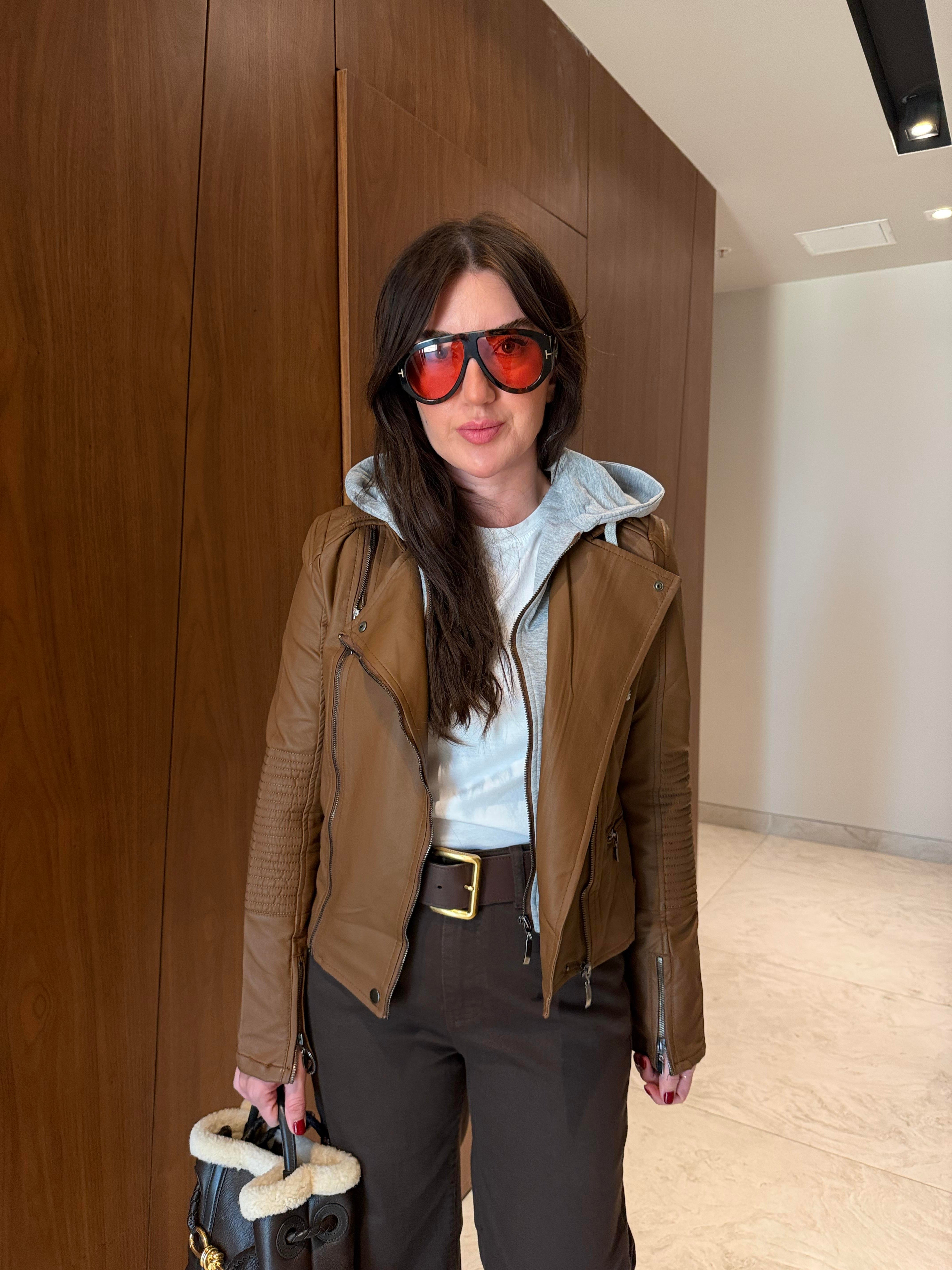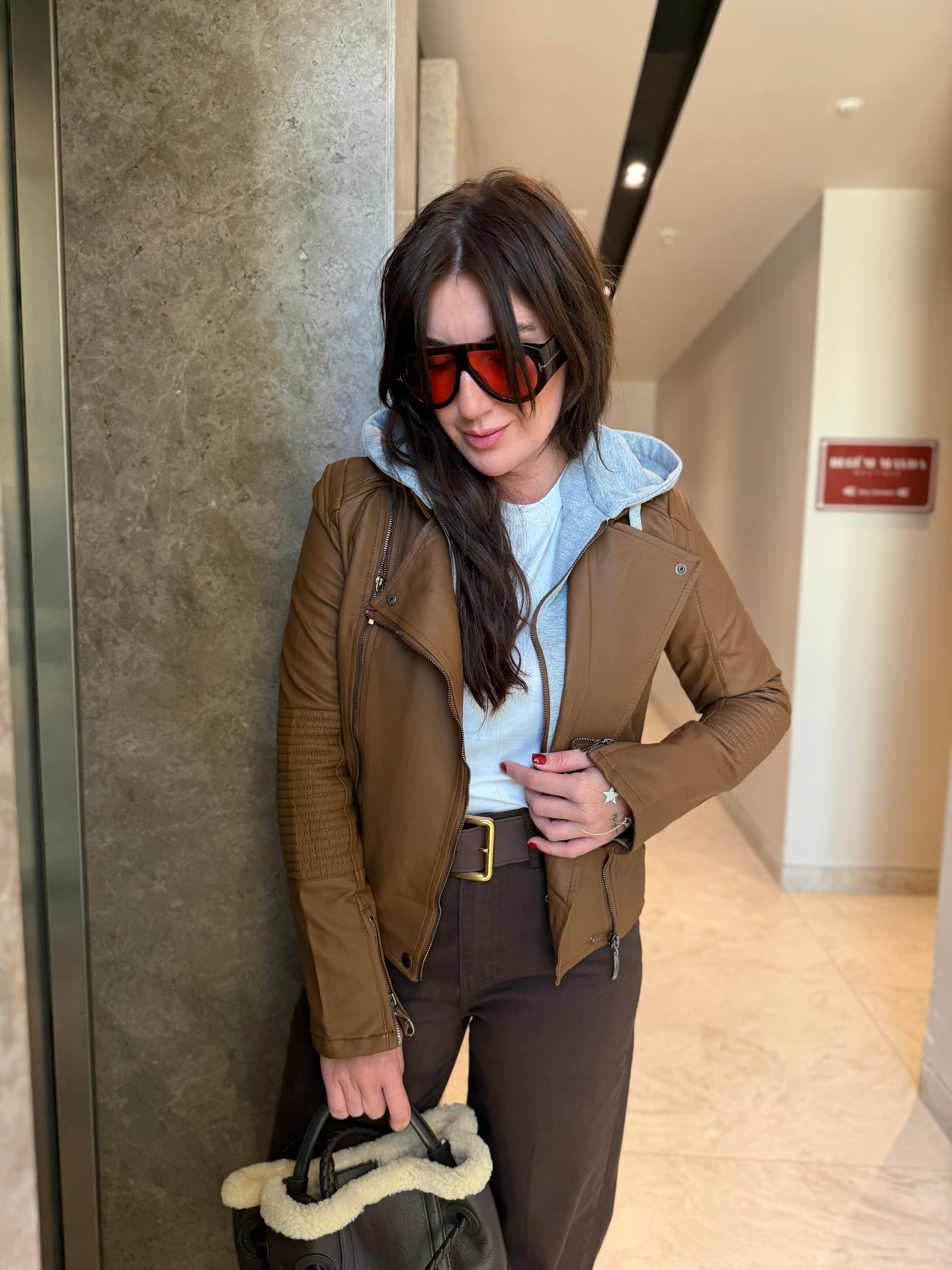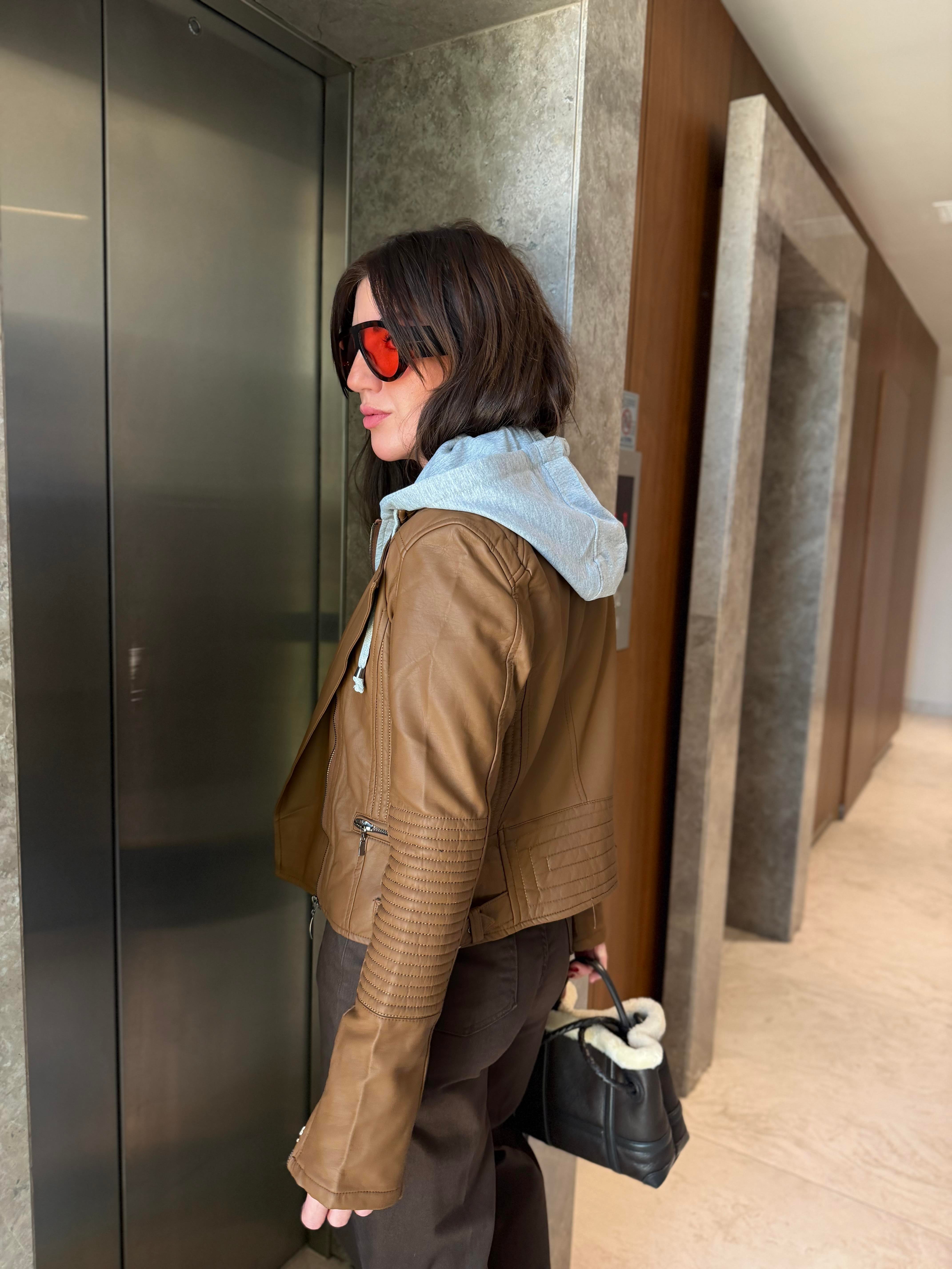 Çıkabilir Kapişonlu , Taba Deri Ceket