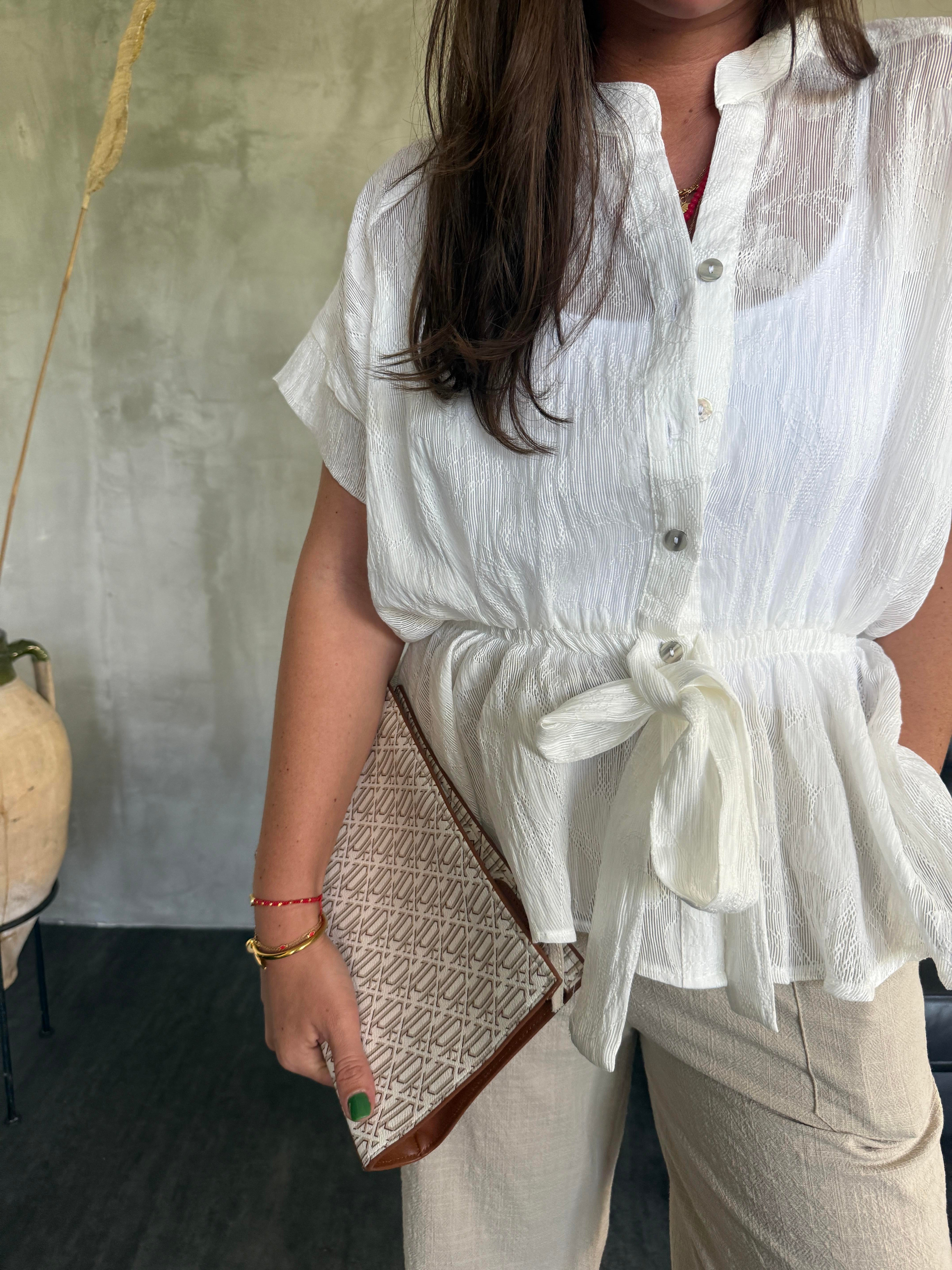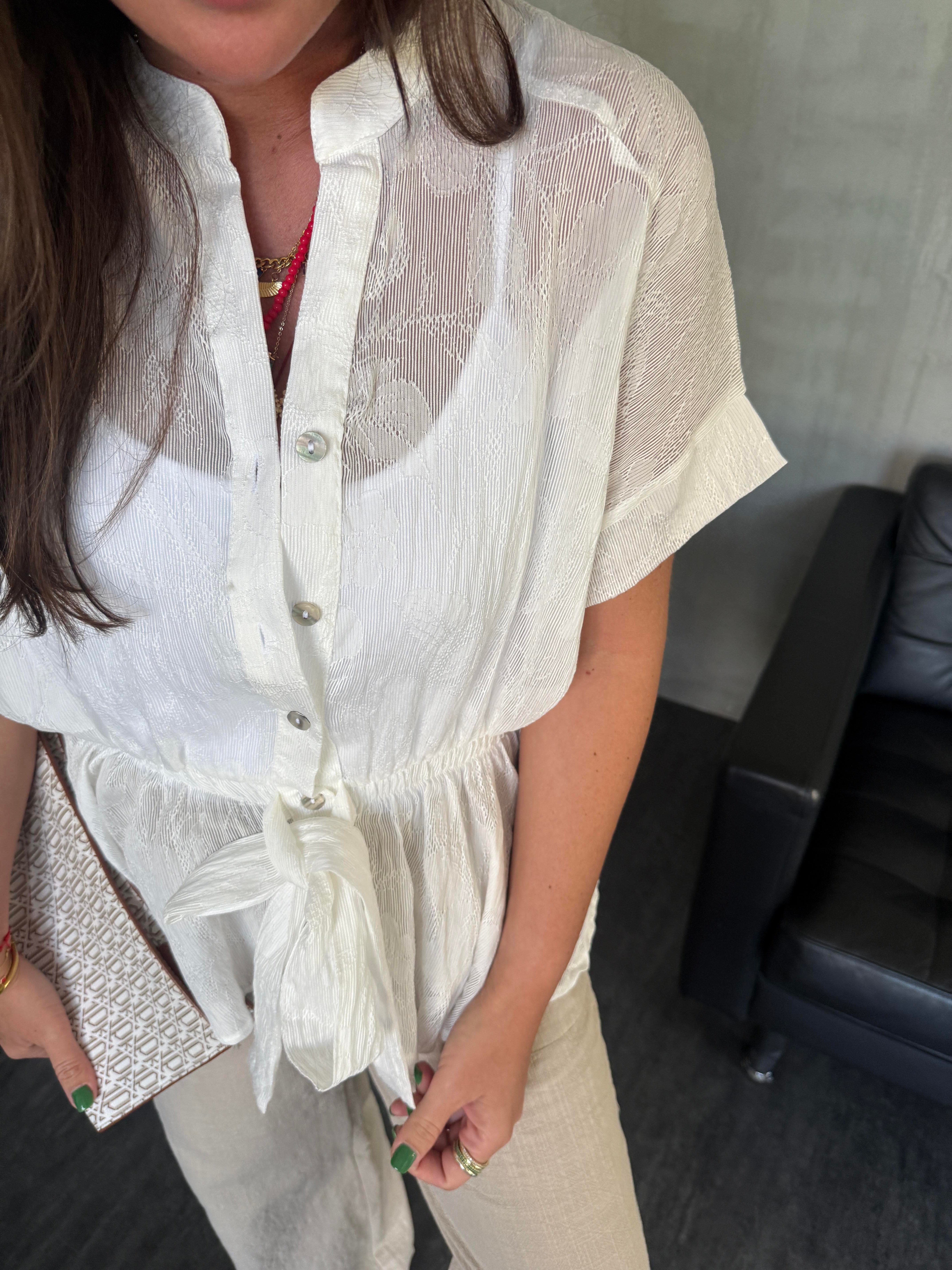 Dantel Desenli , Belden Bağlamalı , Premium , Beyaz Bluz