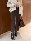 Dantel Yırtmaç Detaylı , Likralı Acıkahve Etek (st439dnt_9546)
