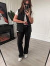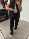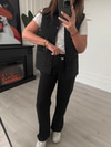 Deri İp Bağlamalı, Taşlı Üçgen Aksesuarlı Siyah Pantolon