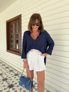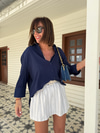 Deri Kemerli , İçi Şortlu , Lacivert Çizgili Etek