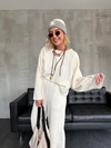 Dokulu Sweat & Pantolon , Ekru Takım