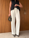 Ekru , Premium Krep Kumaş , Palazzo Pantolon