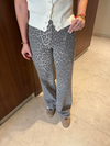 Gabardin Kumaş , Füme Leopar Desenli , Palazzo Pantolon