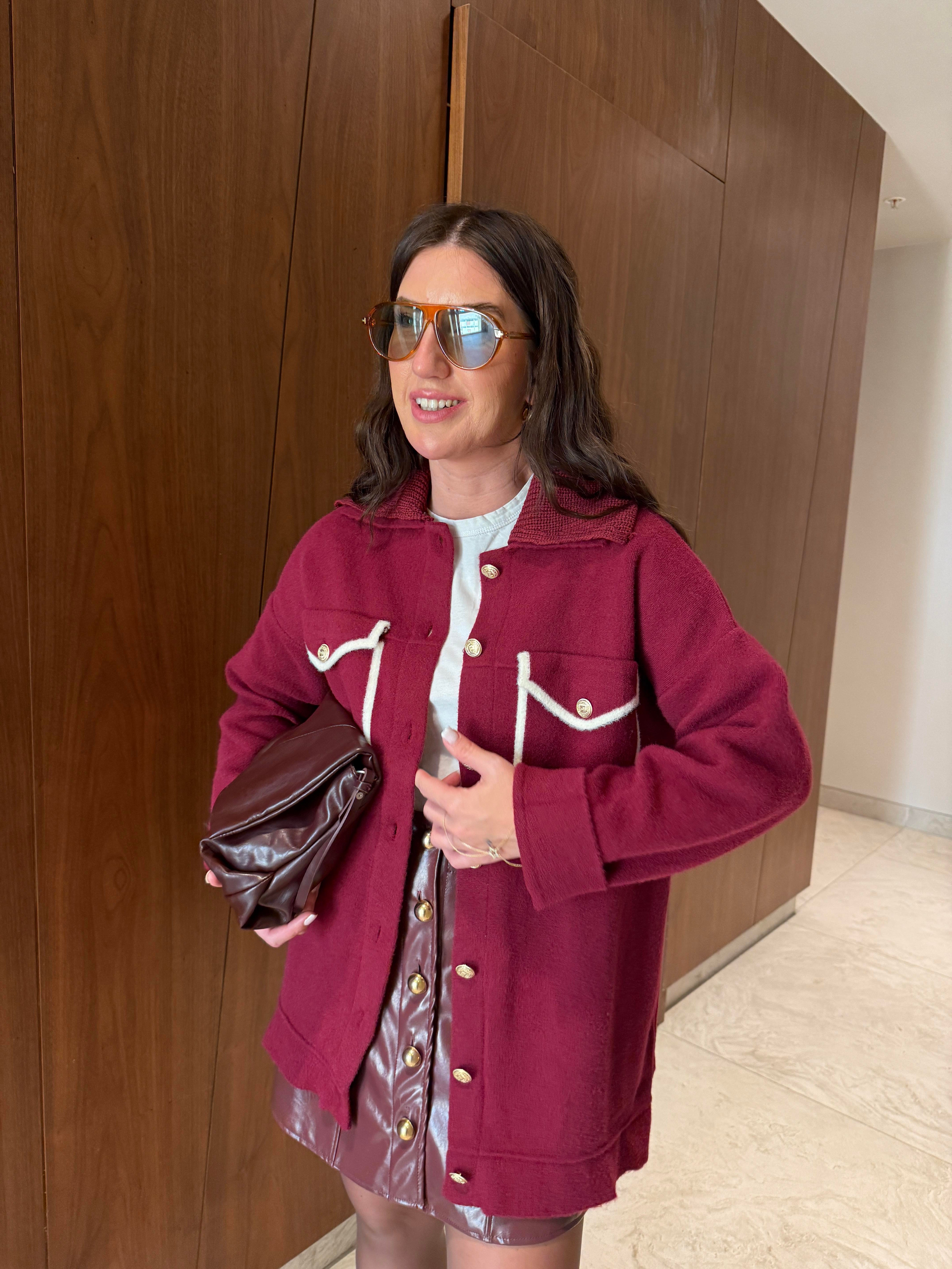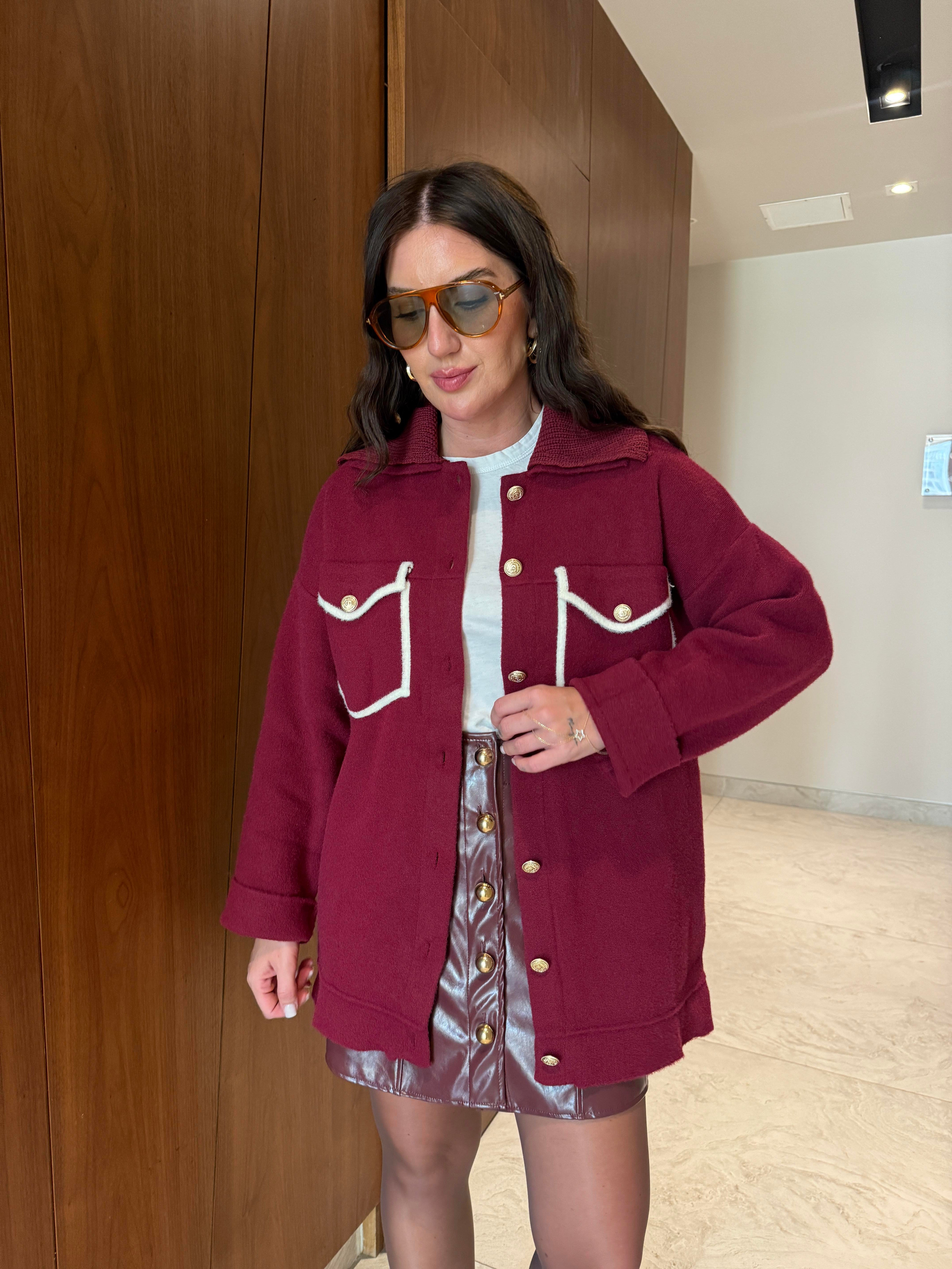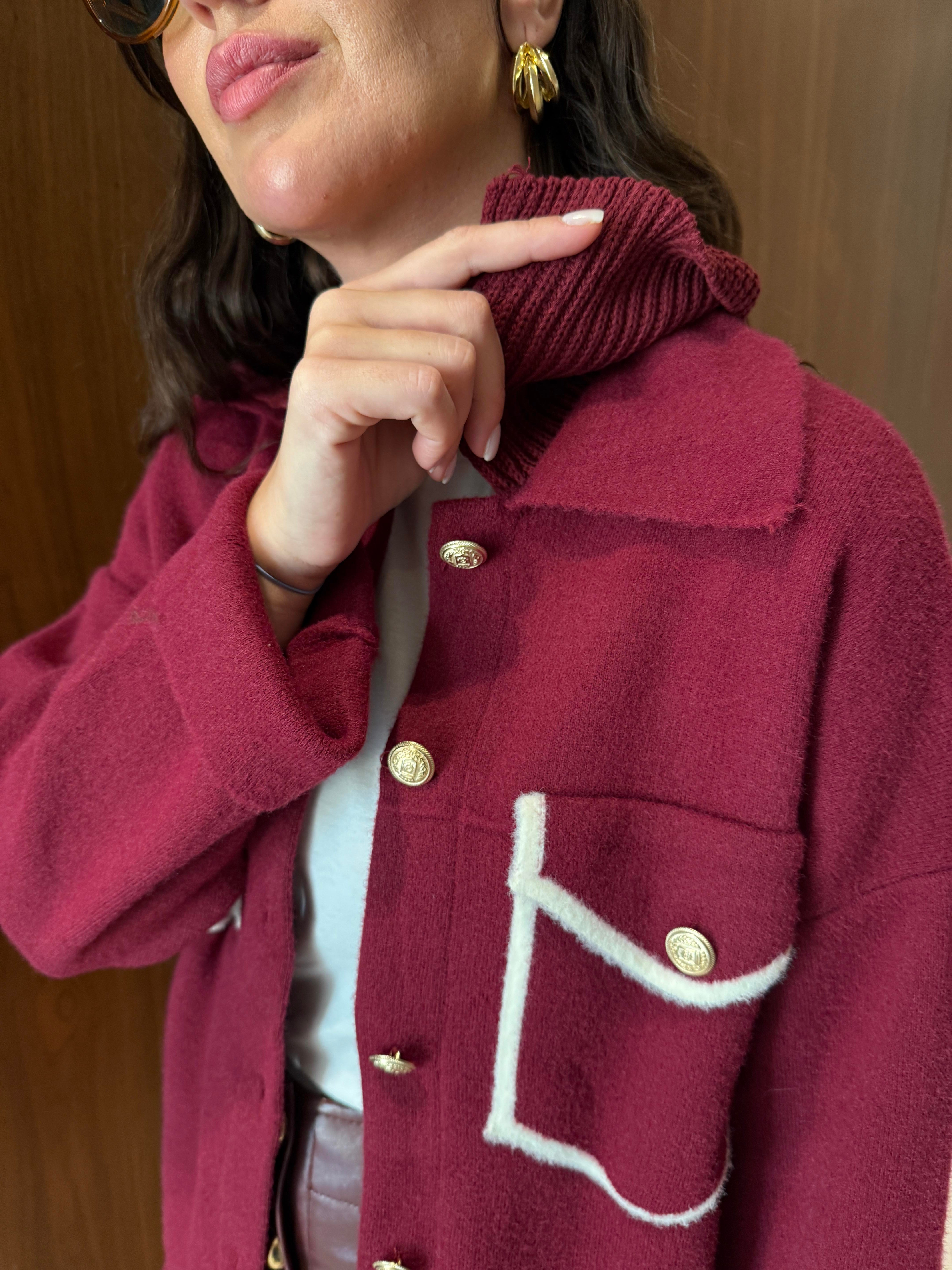 Gold Düğmeli , Çıkarılabilir Yakalı , Bordo , Kaşe Triko Ceket