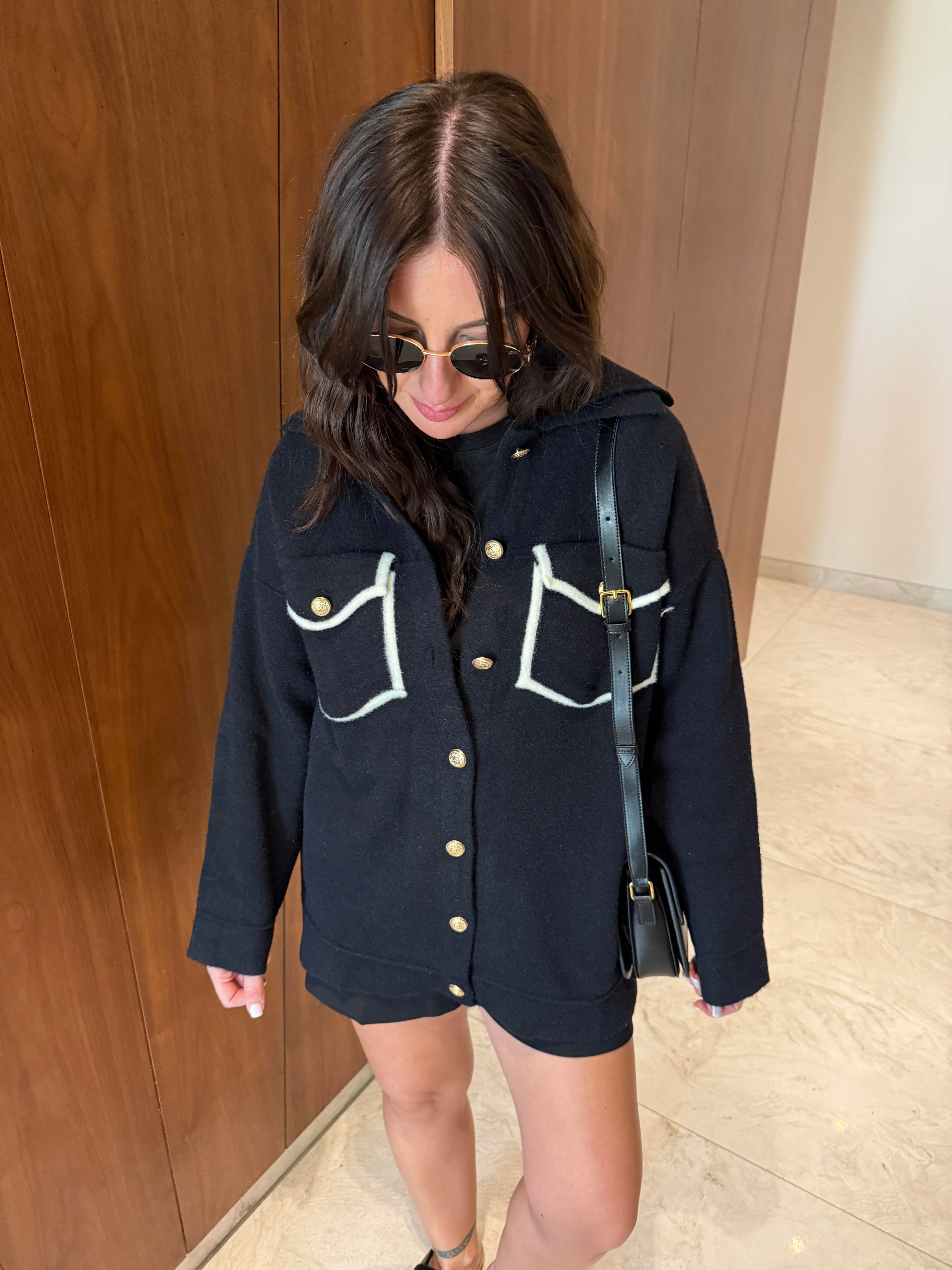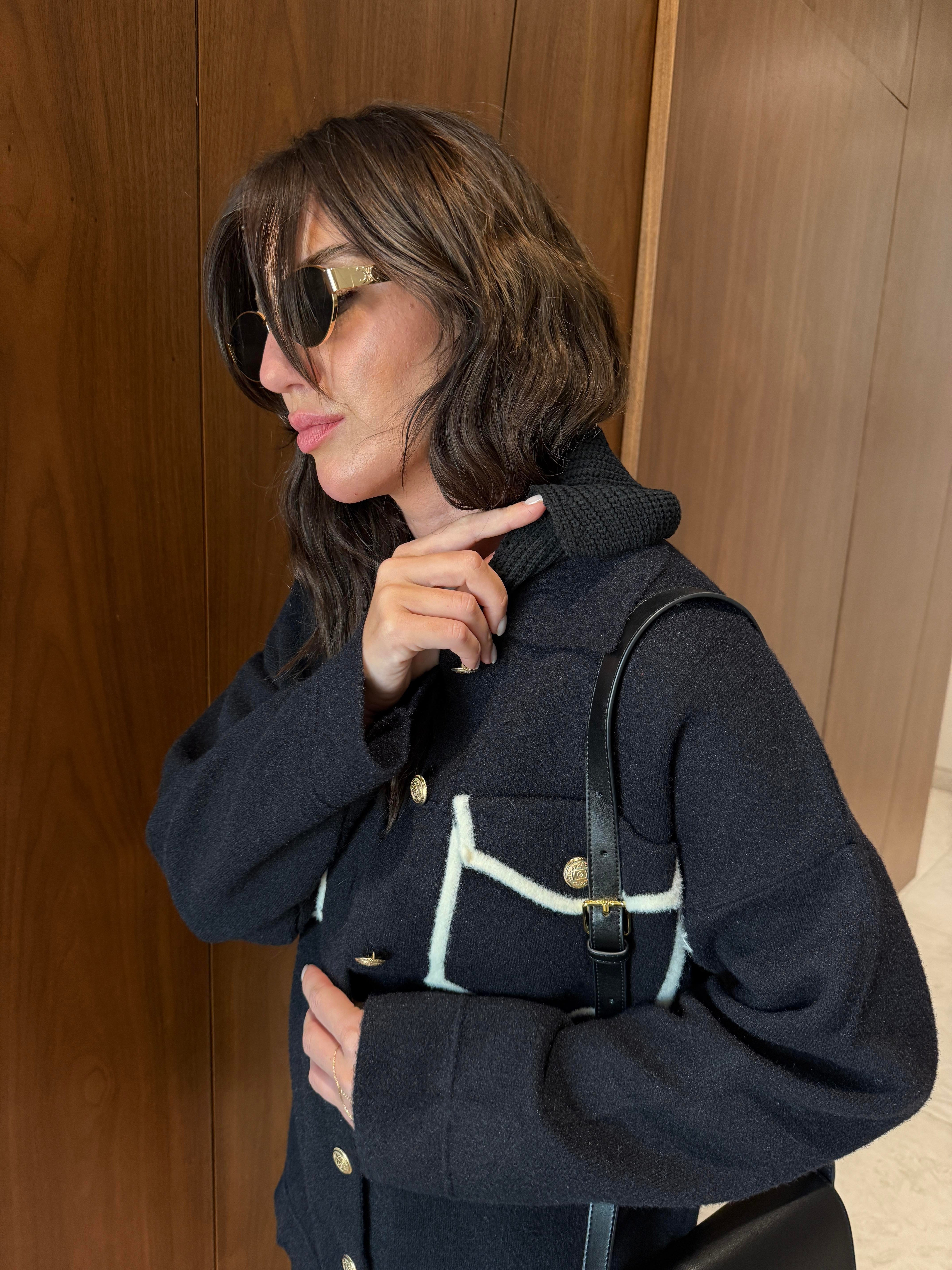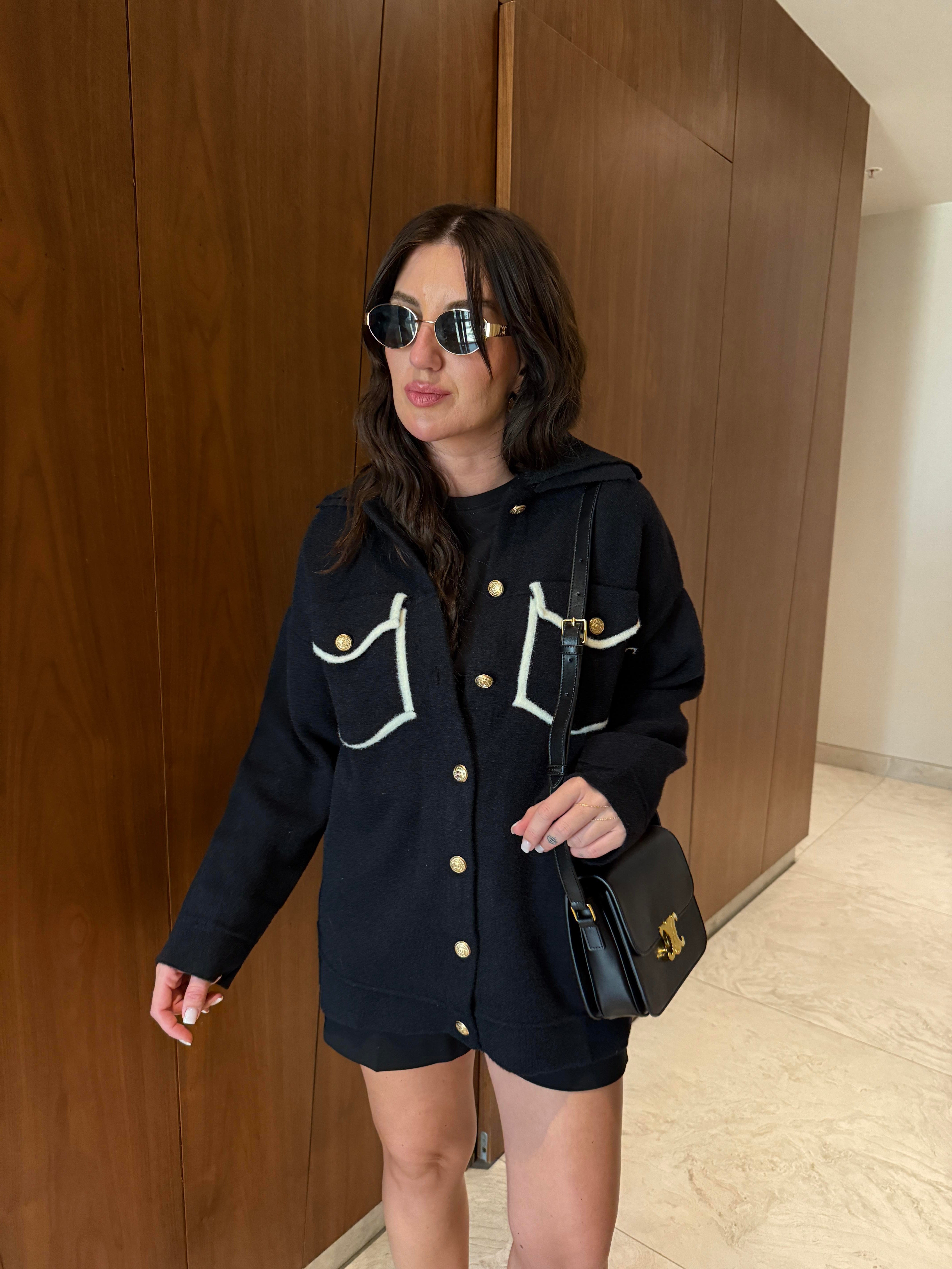 Gold Düğmeli , Çıkarılabilir Yakalı , Siyah , Kaşe Triko Ceket