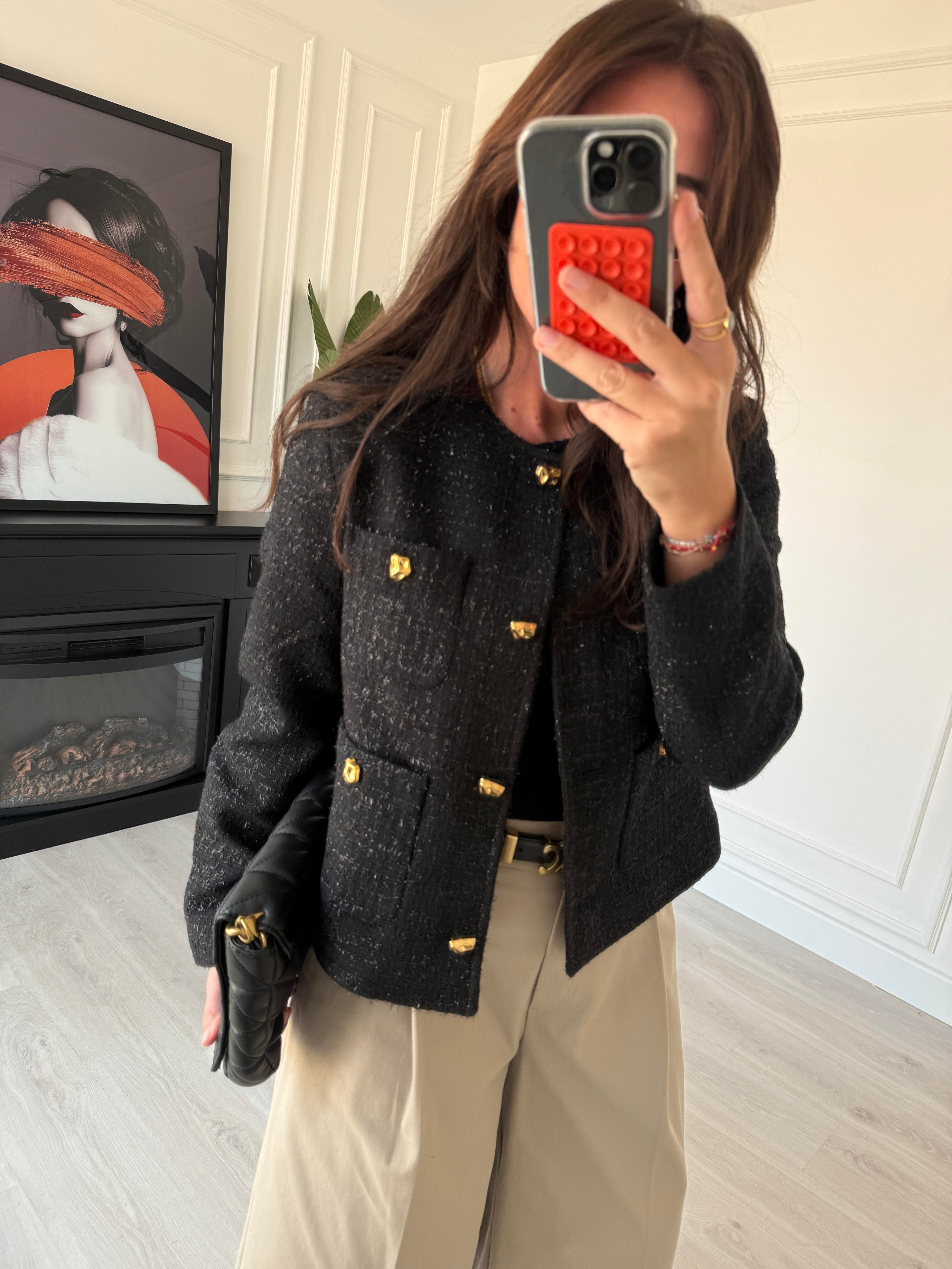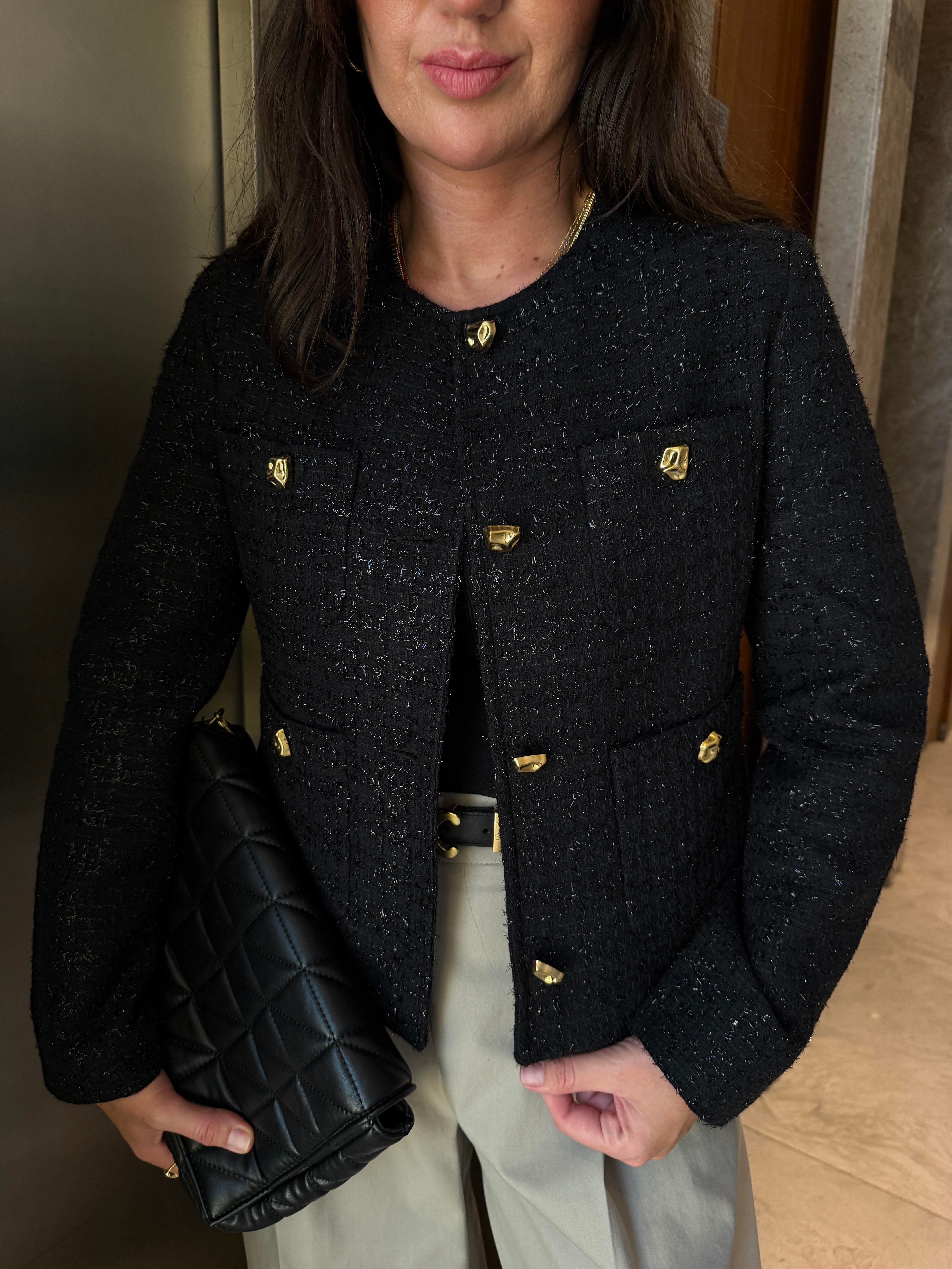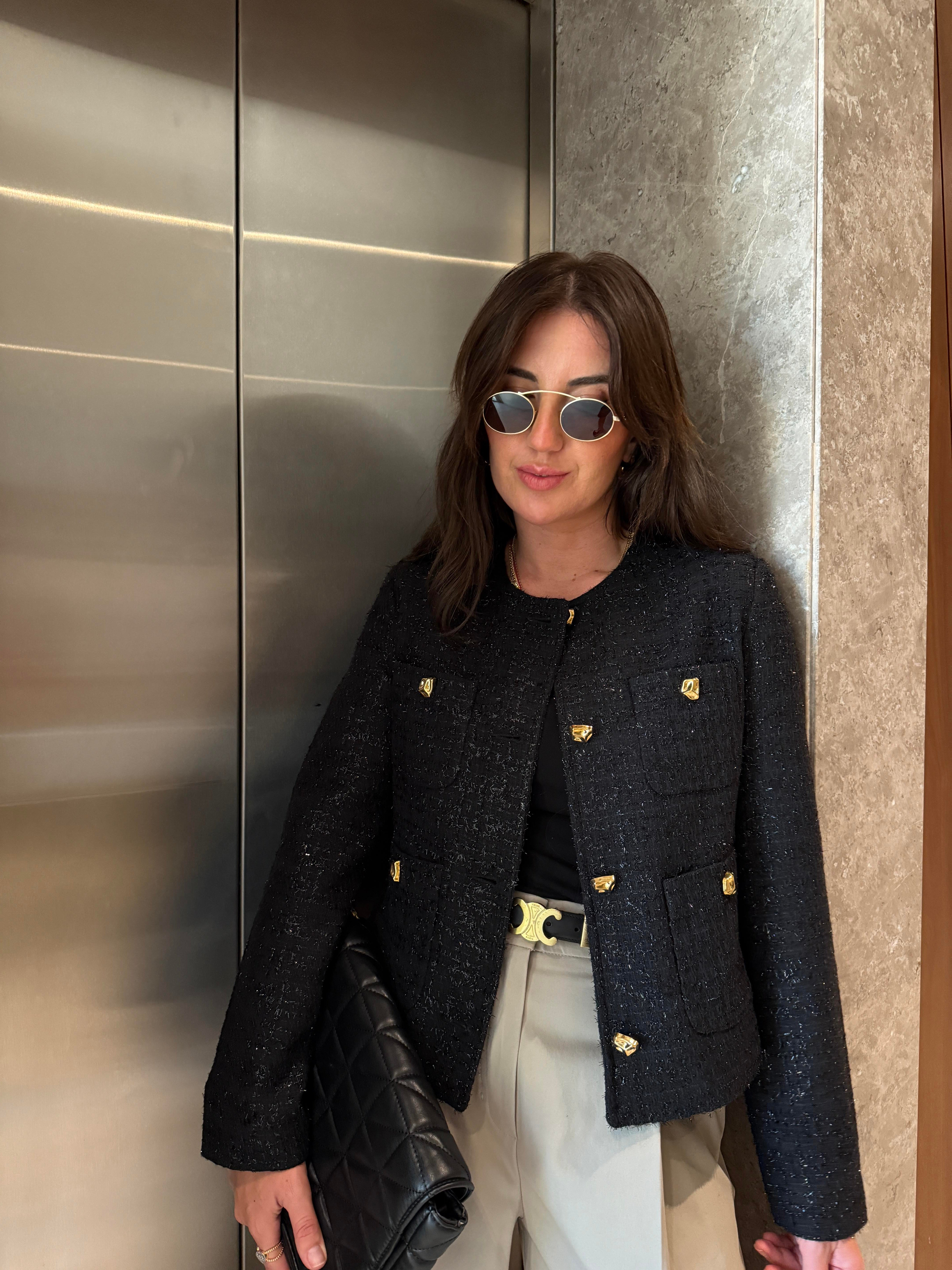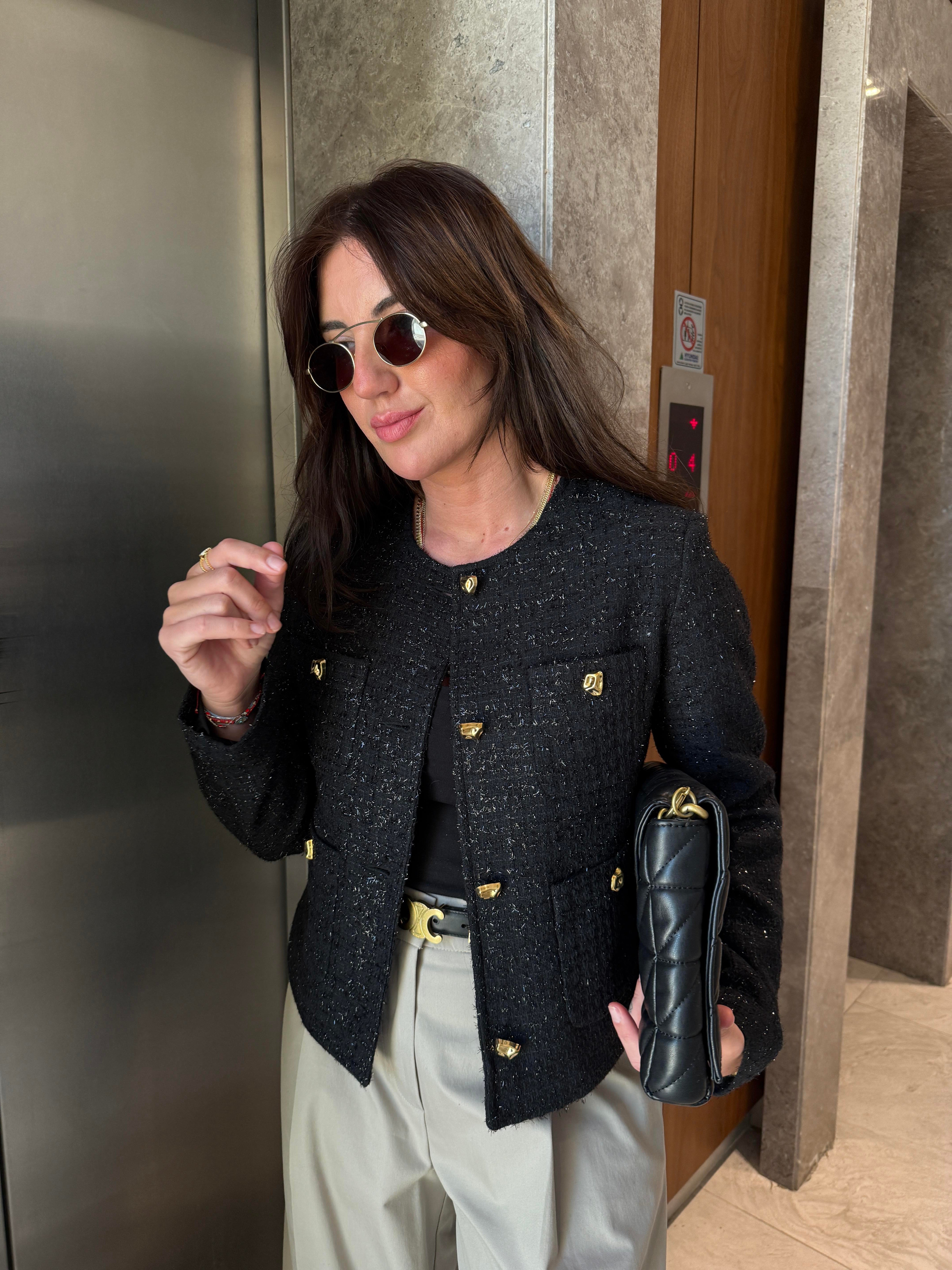Gold Düğmeli , Parıltılı , Siyah , Premium Tüvit Ceket (ggy544tvt-7411)