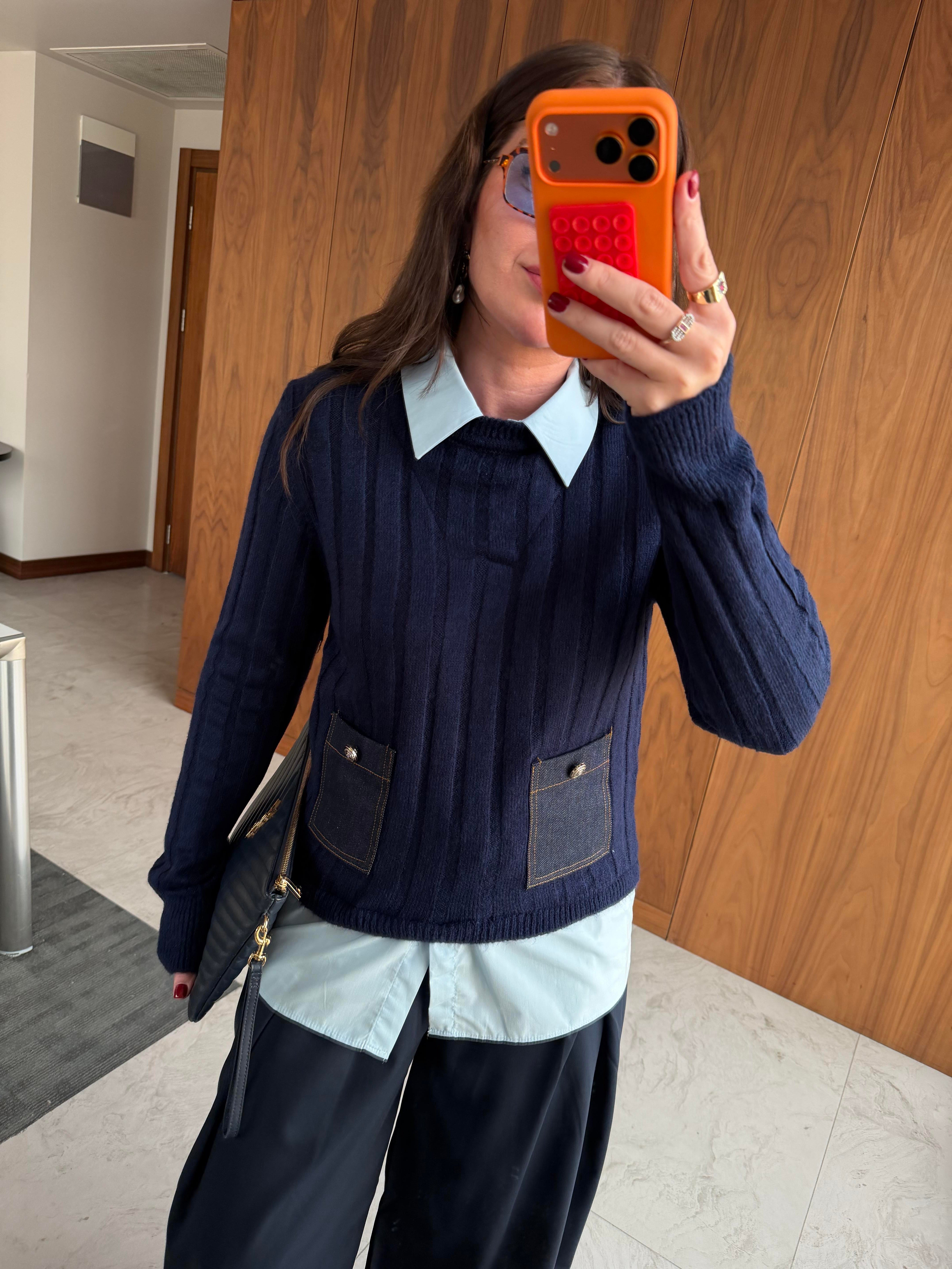 Gömlek Detaylı Lacivert Triko (f993937766)