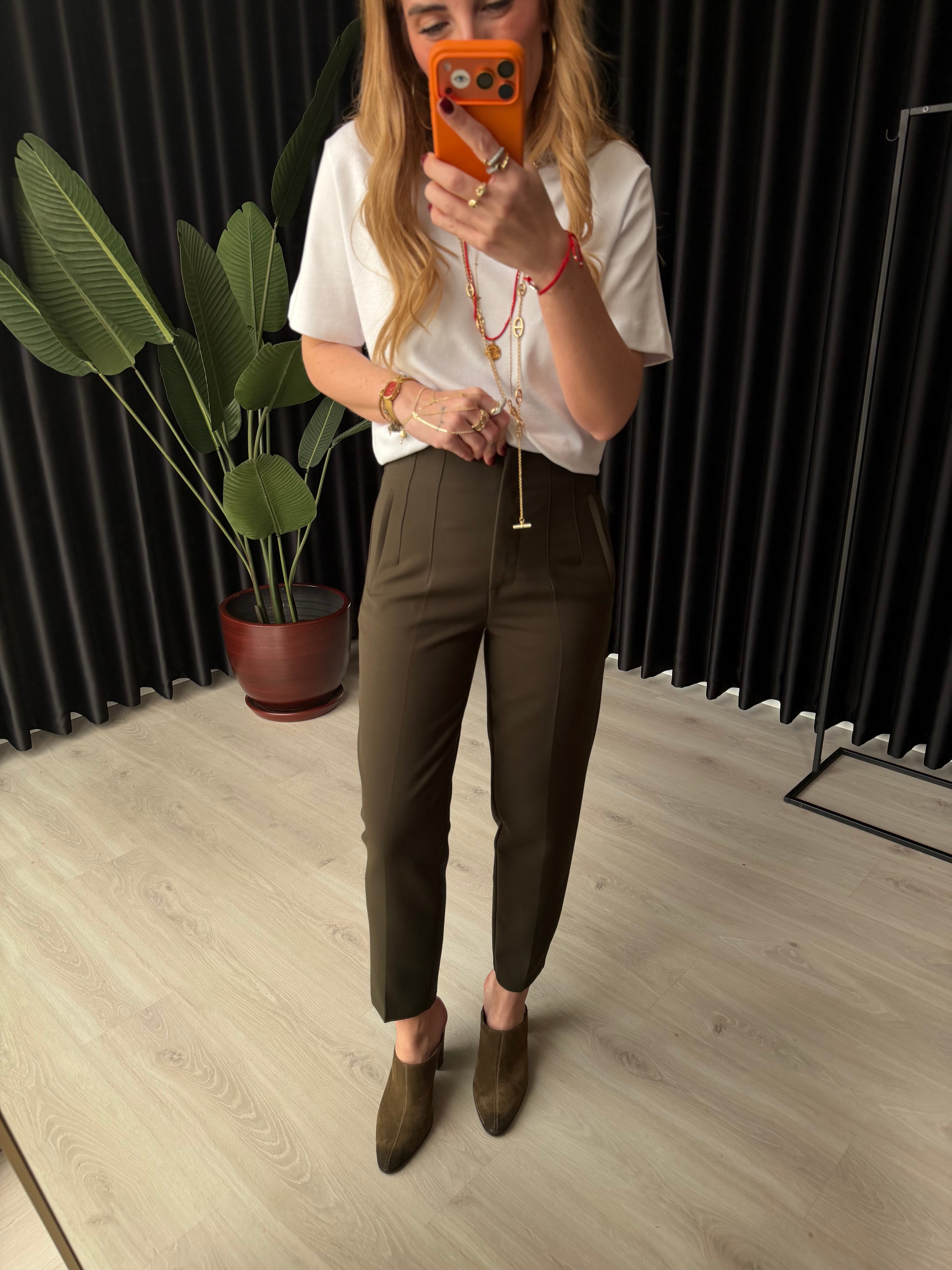 Haki , Likralı , Filetolu Pantolon (rol339flt_9564)