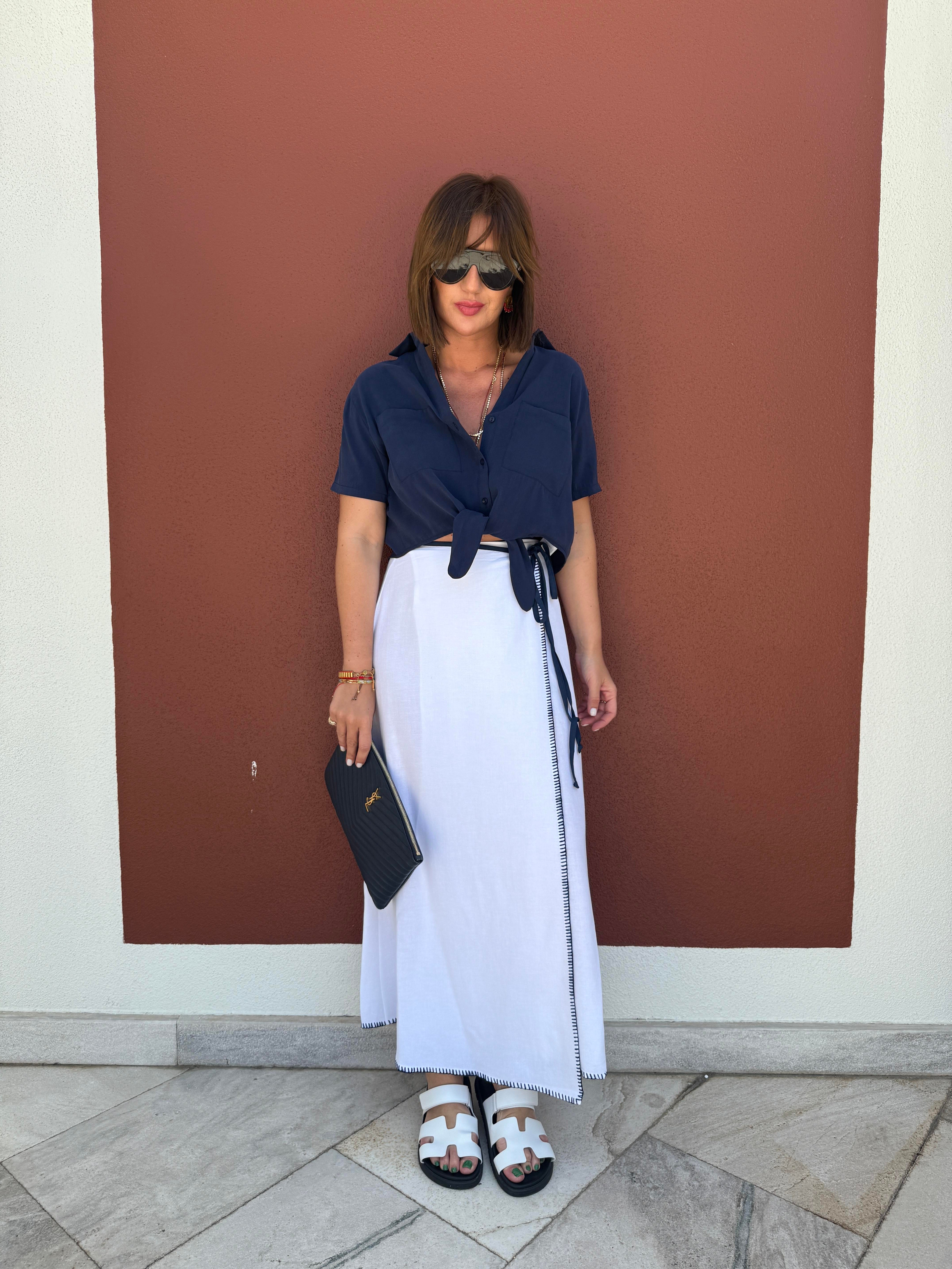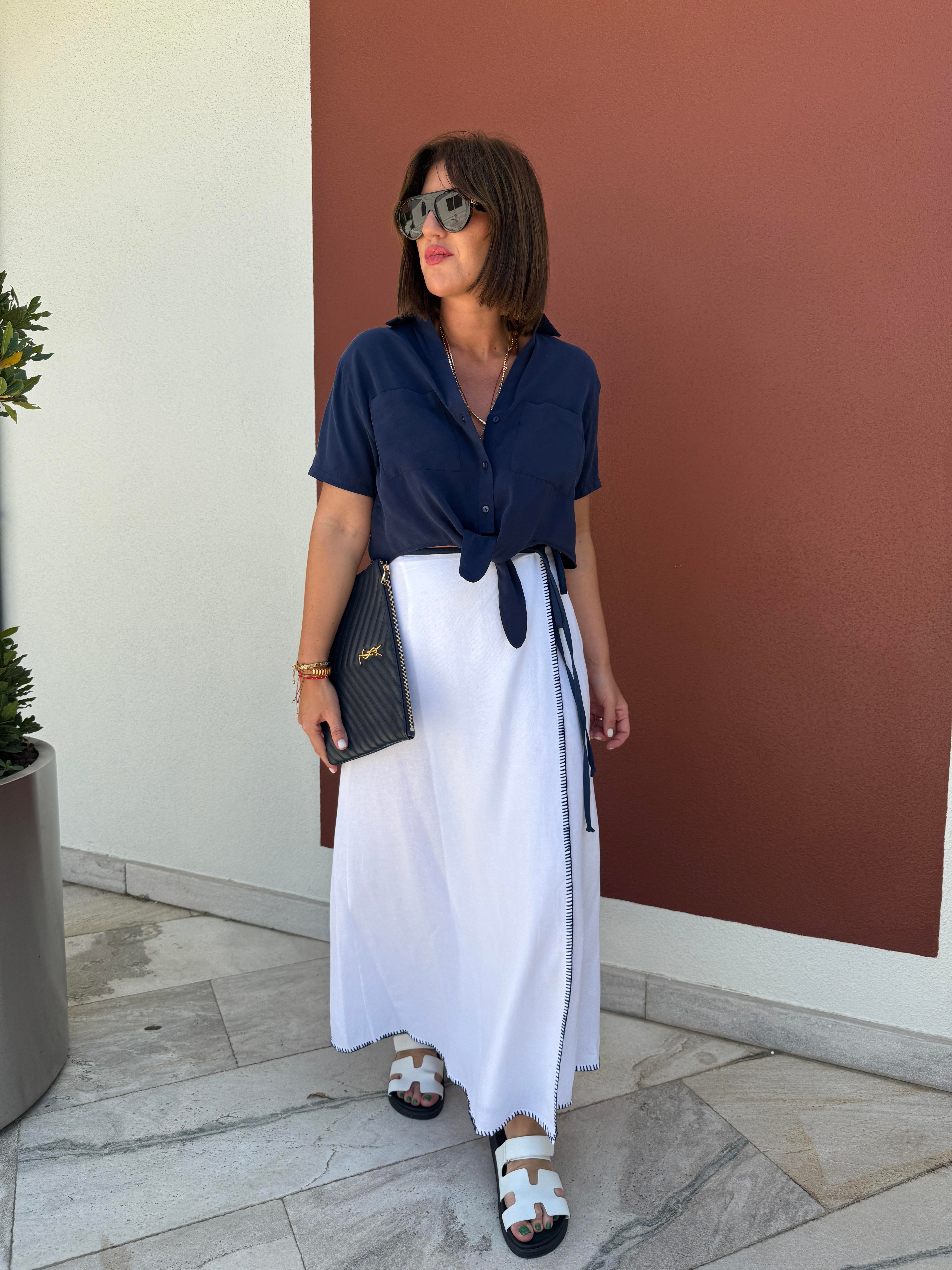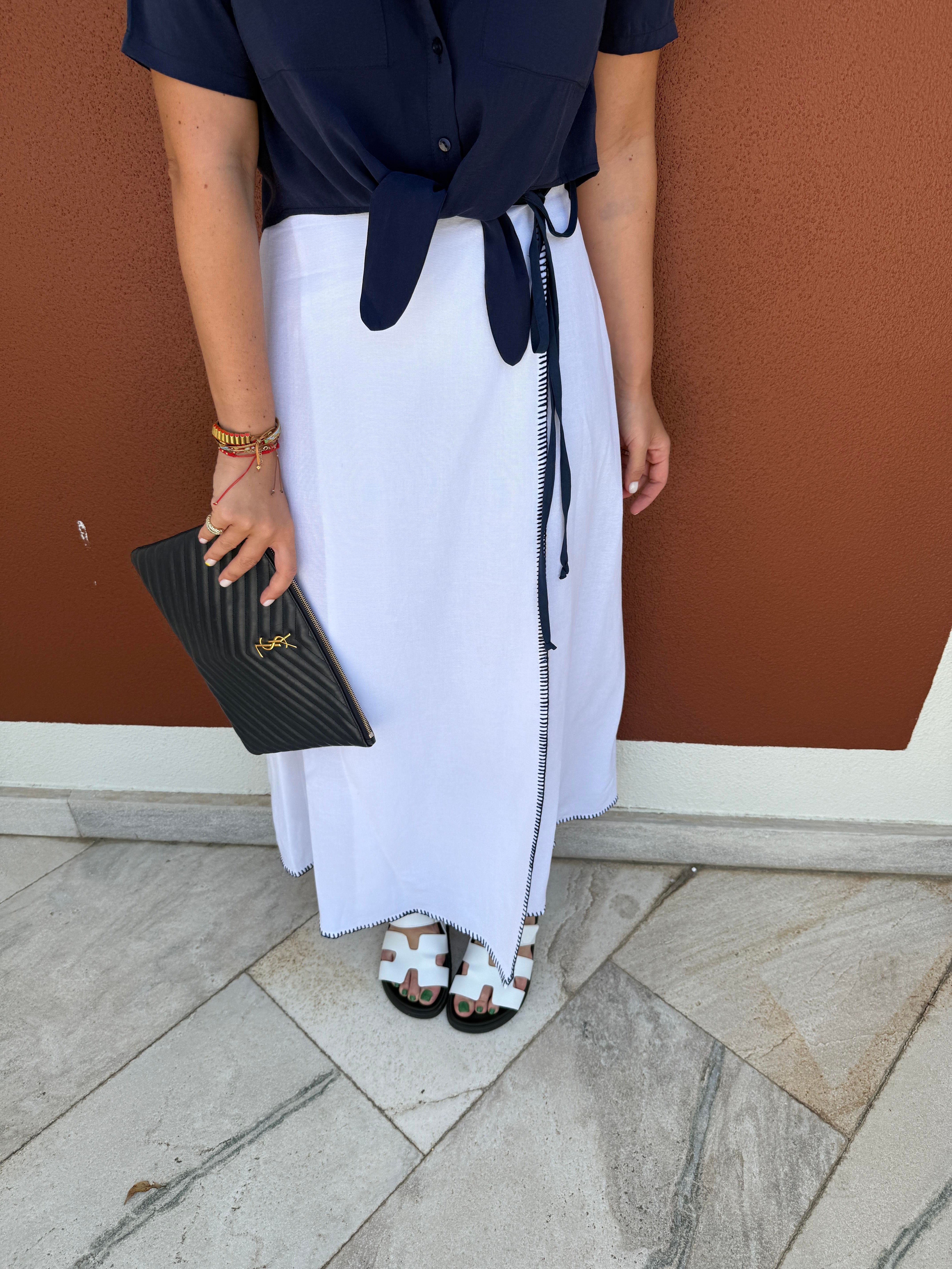 İçi Astarlı , Lacivert Biyeli , Beyaz Kruvaze Etek