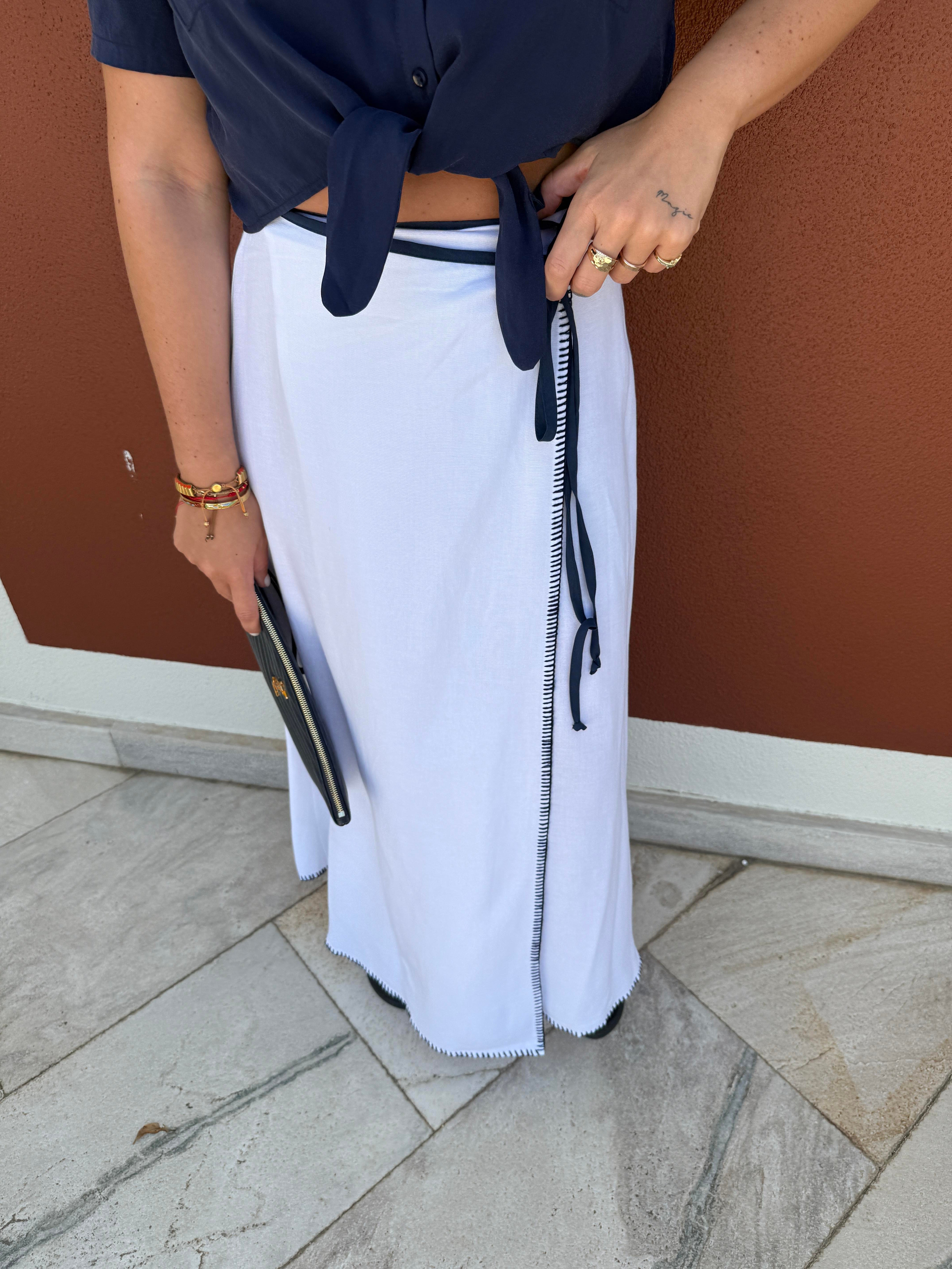 İçi Astarlı , Lacivert Biyeli , Beyaz Kruvaze Etek (zu544etk)