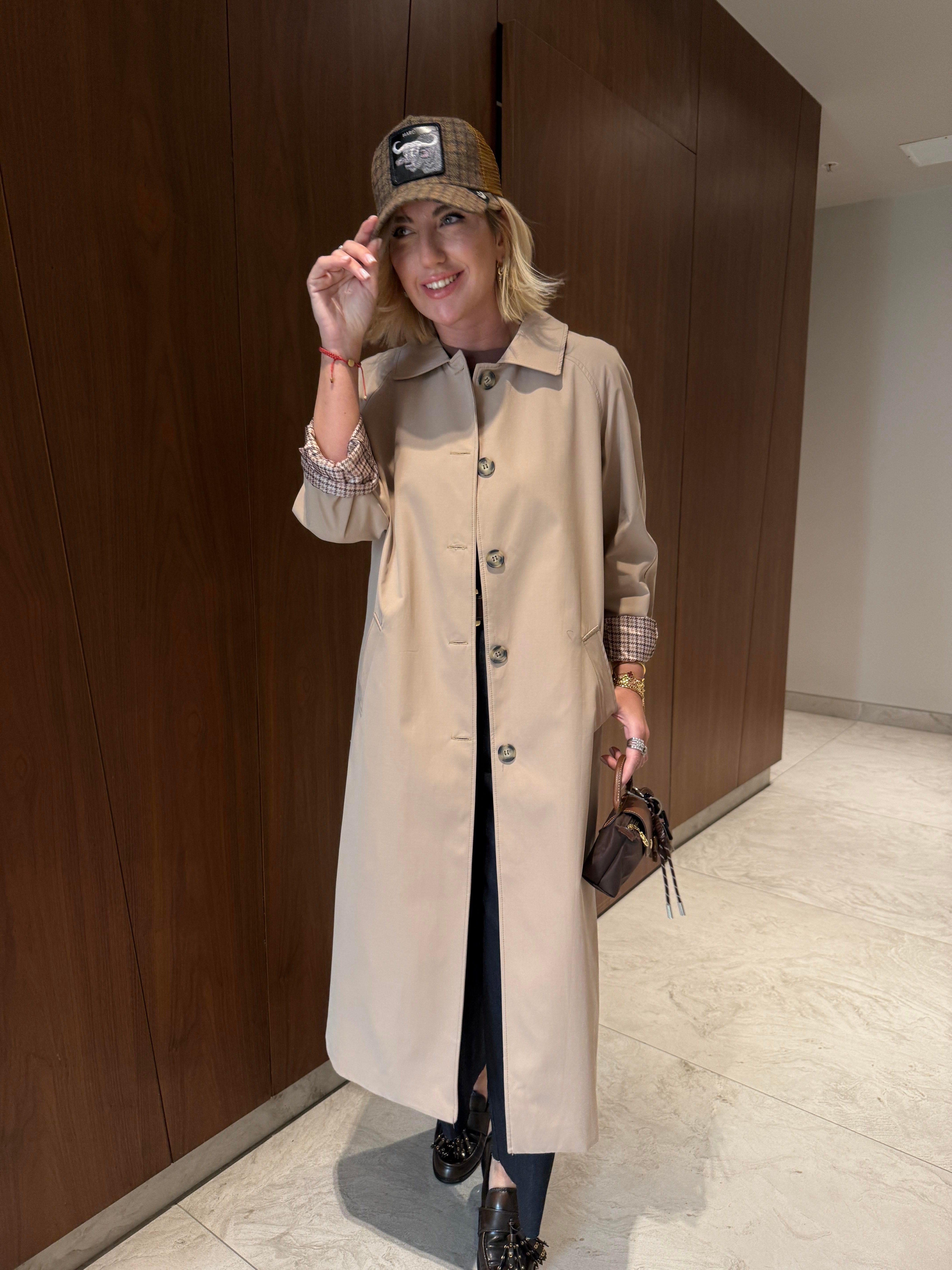 İçi Ekose Astarlı , Camel , Premium Trençkot (lo9944trn)