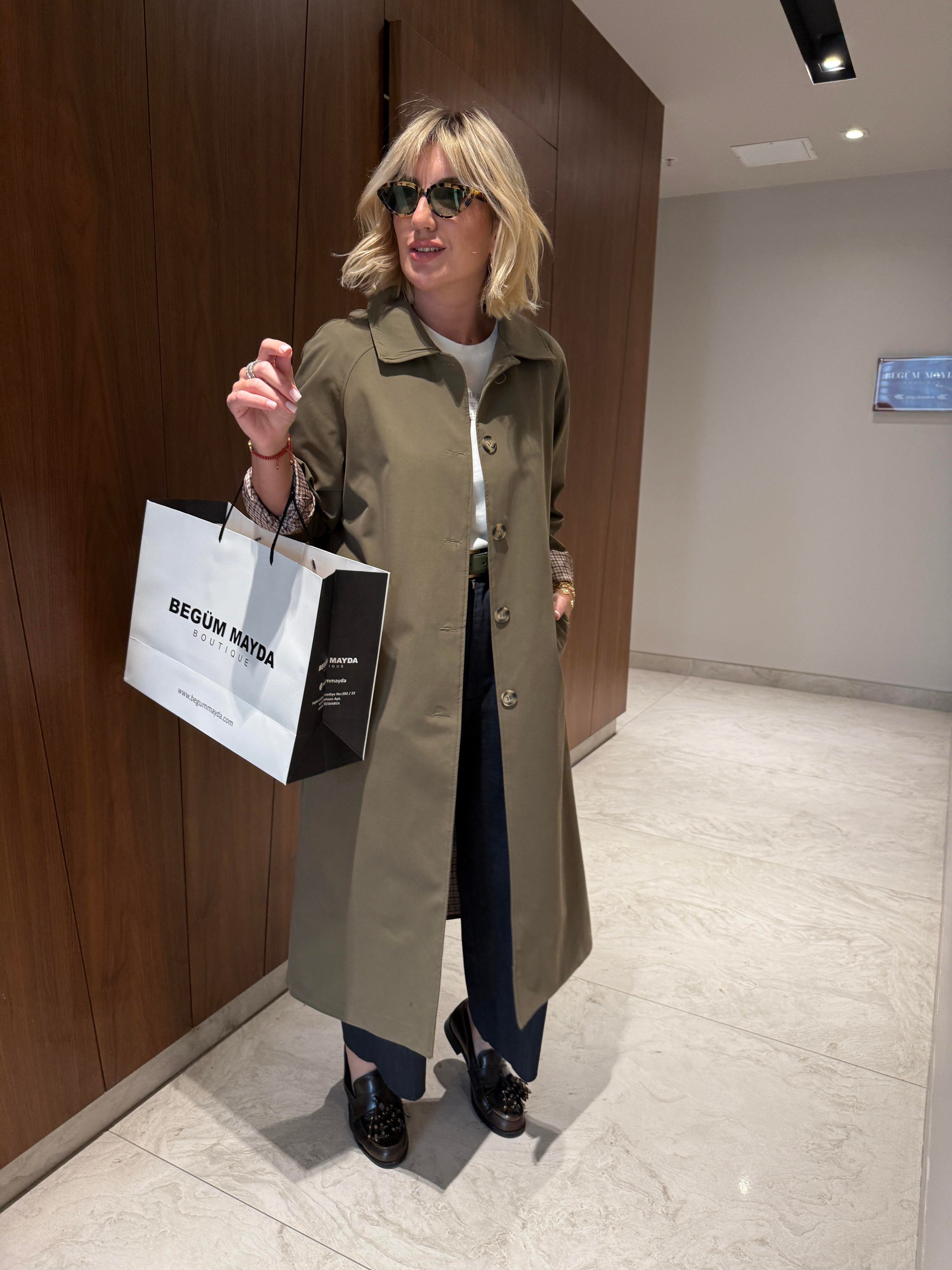 İçi Ekose Astarlı , Haki , Premium Trençkot (lo9944trn)