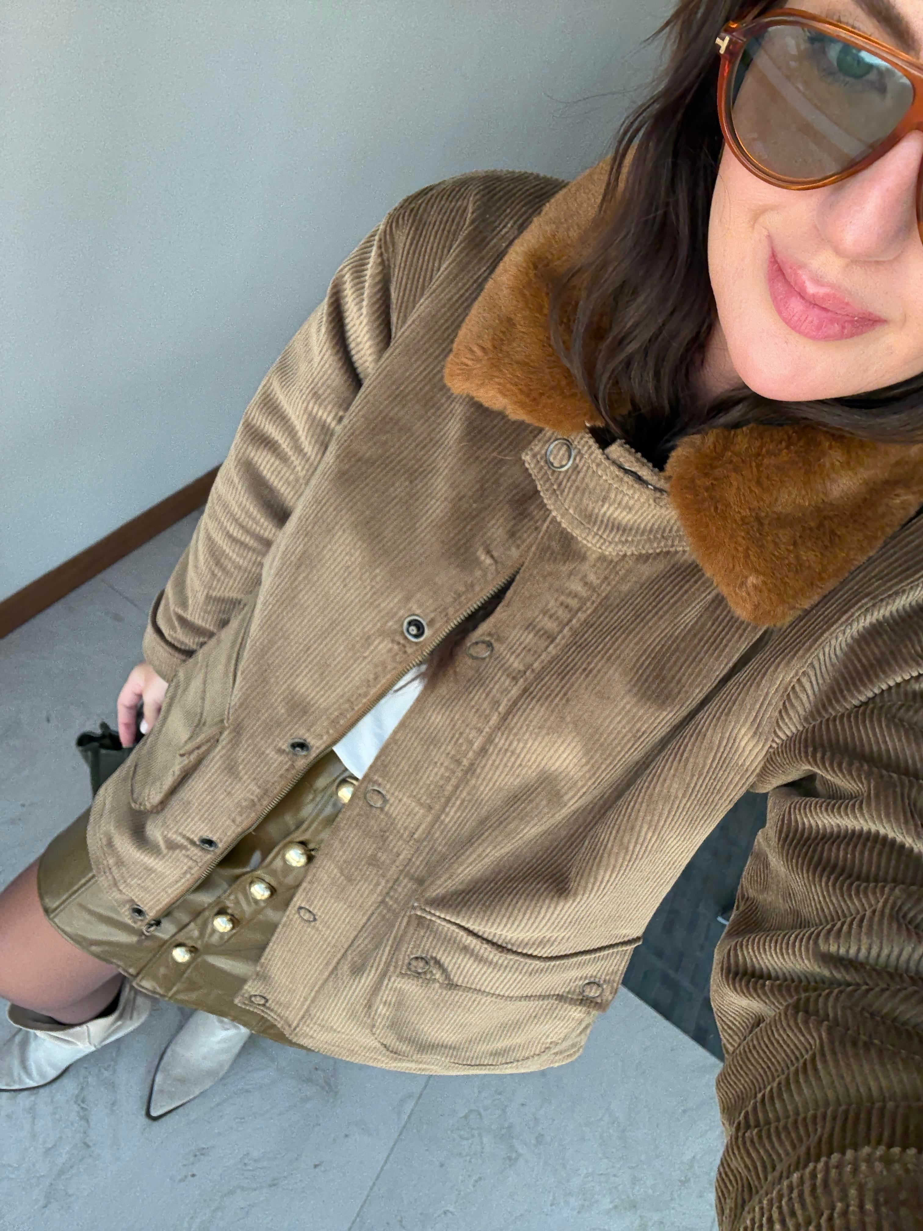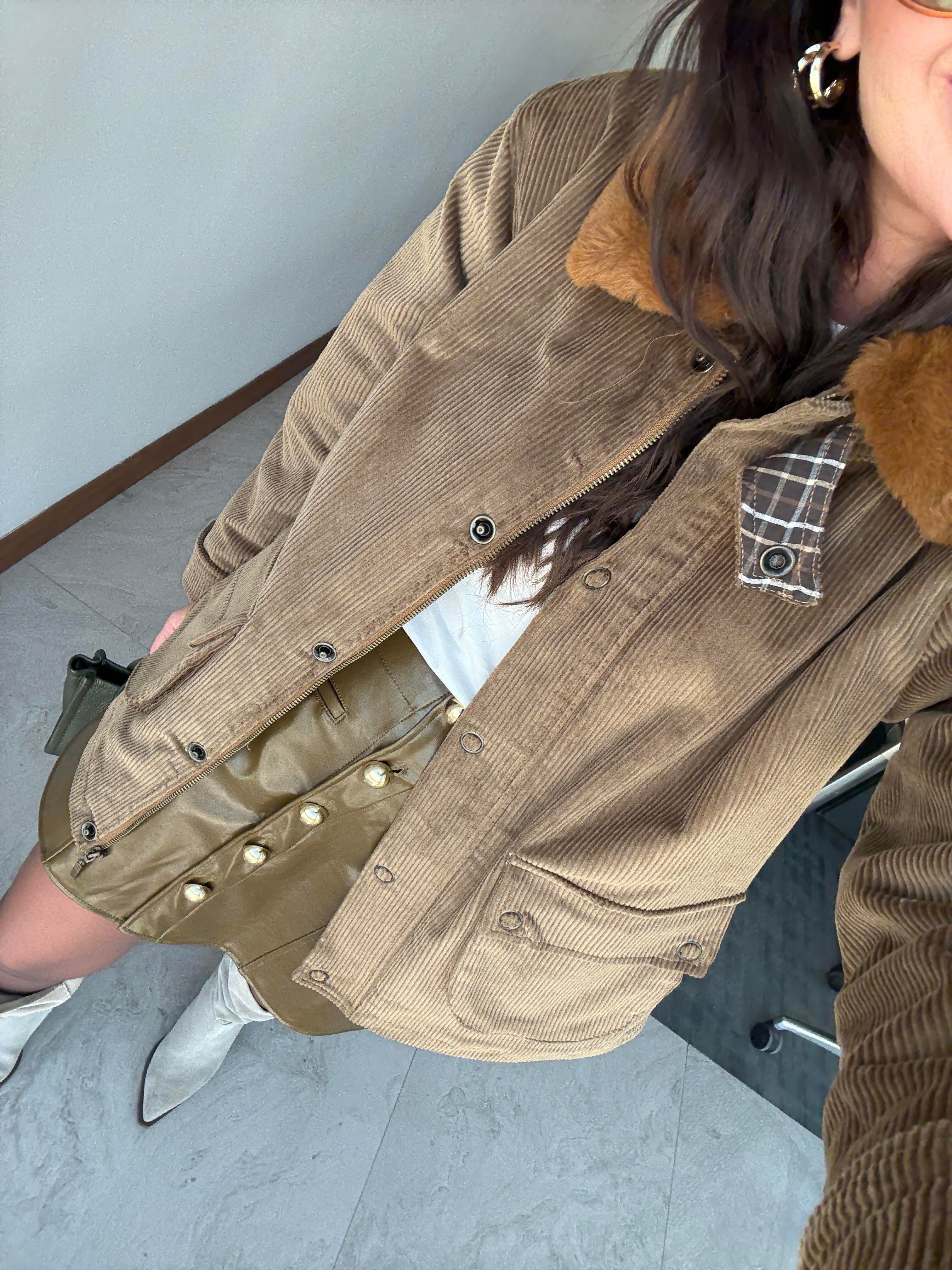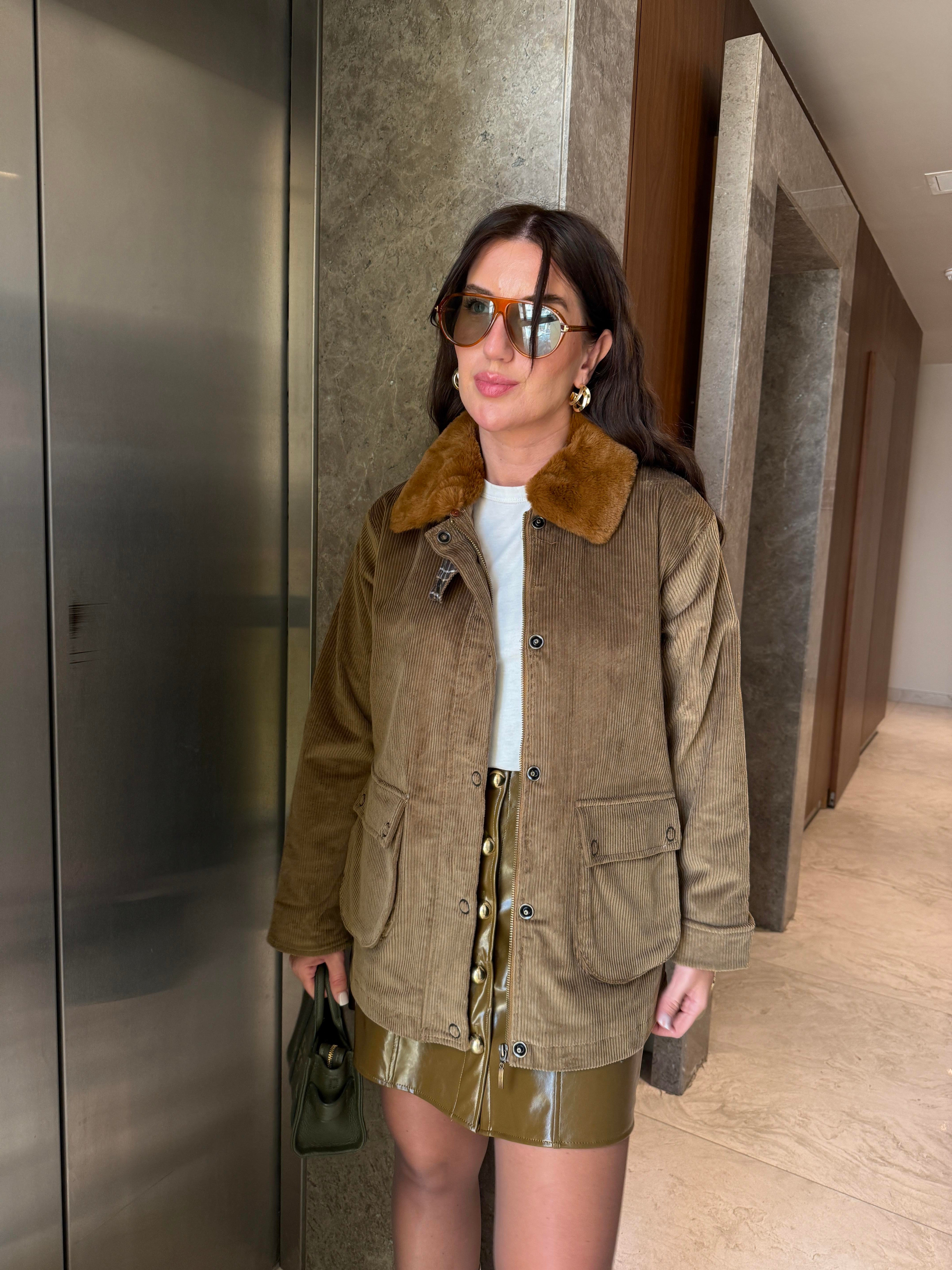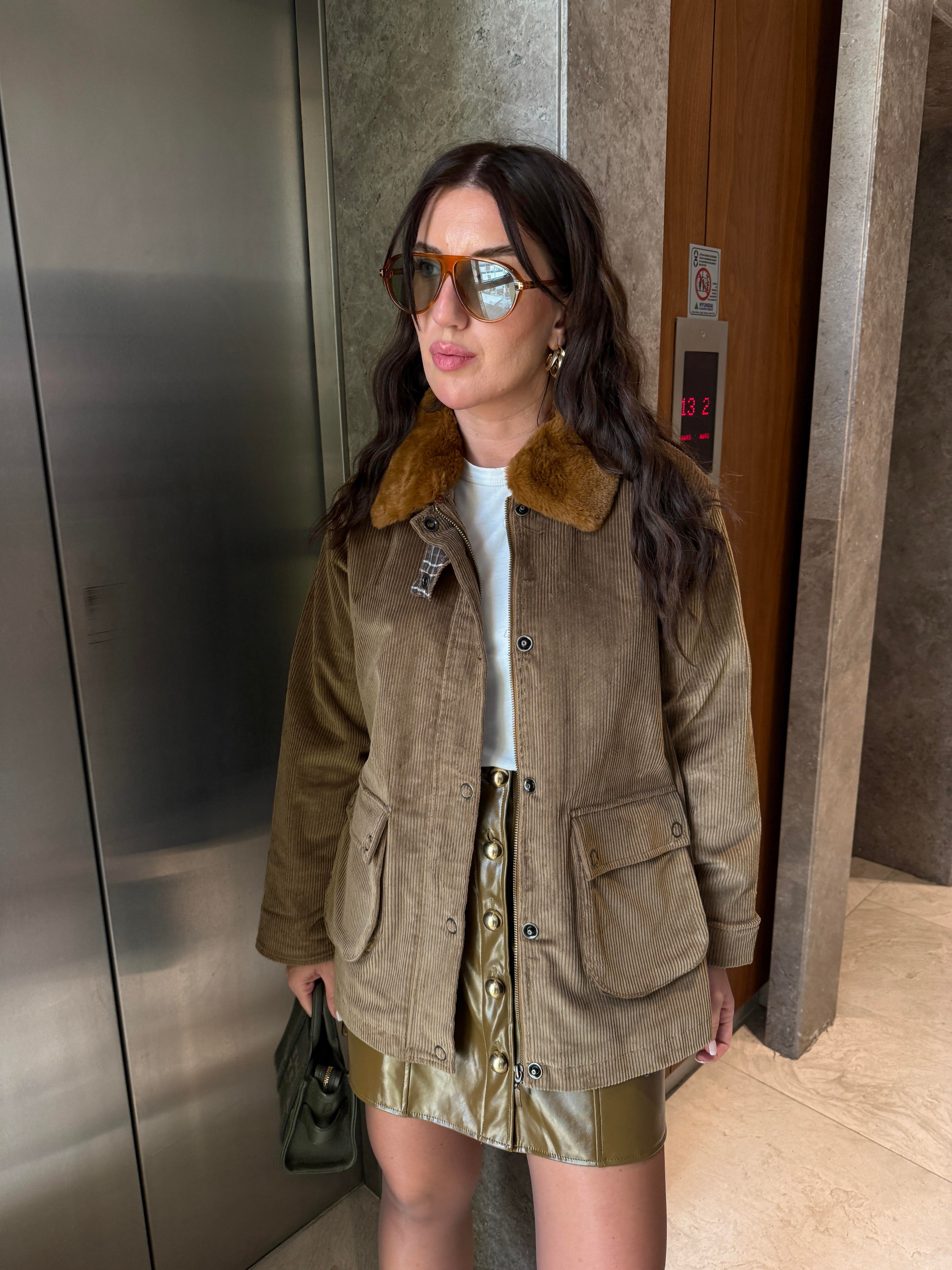 İçi Ekose Astarlı , Kürk Yakalı , Premium Kadife Ceket (ggy433krk7596)