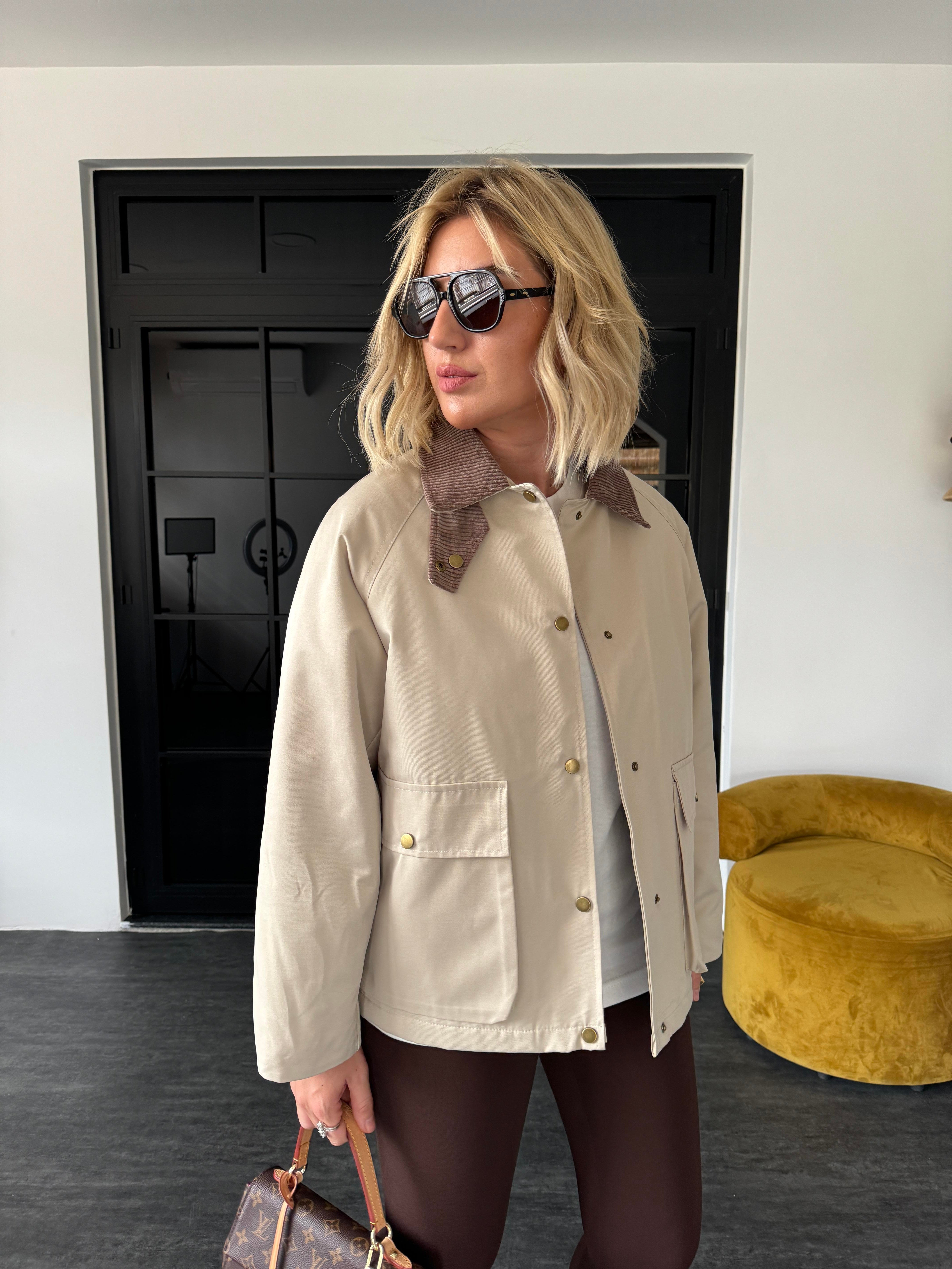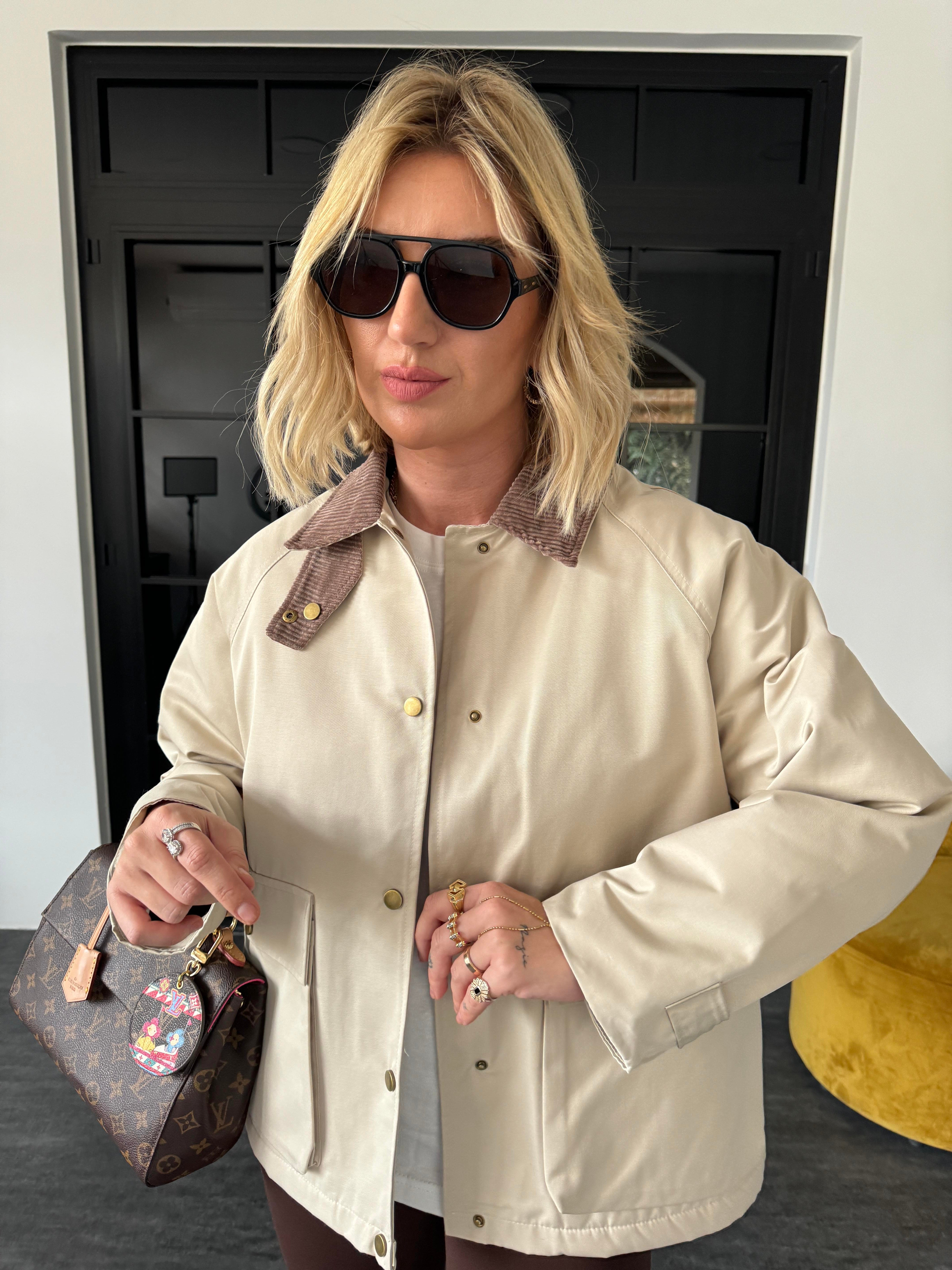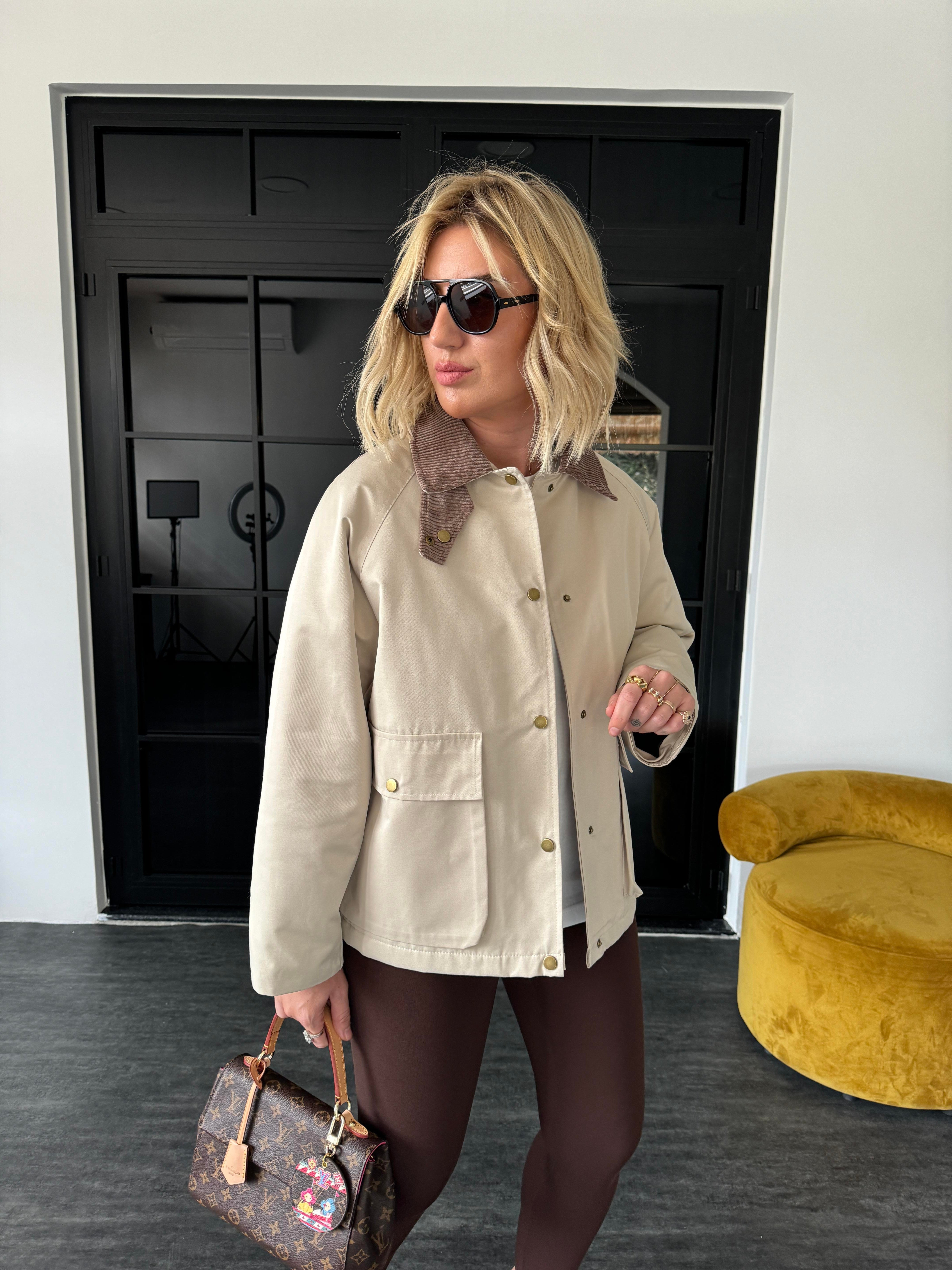 Kadife Yaka , Bej , Premium Kapitone Mont (lo44kap)