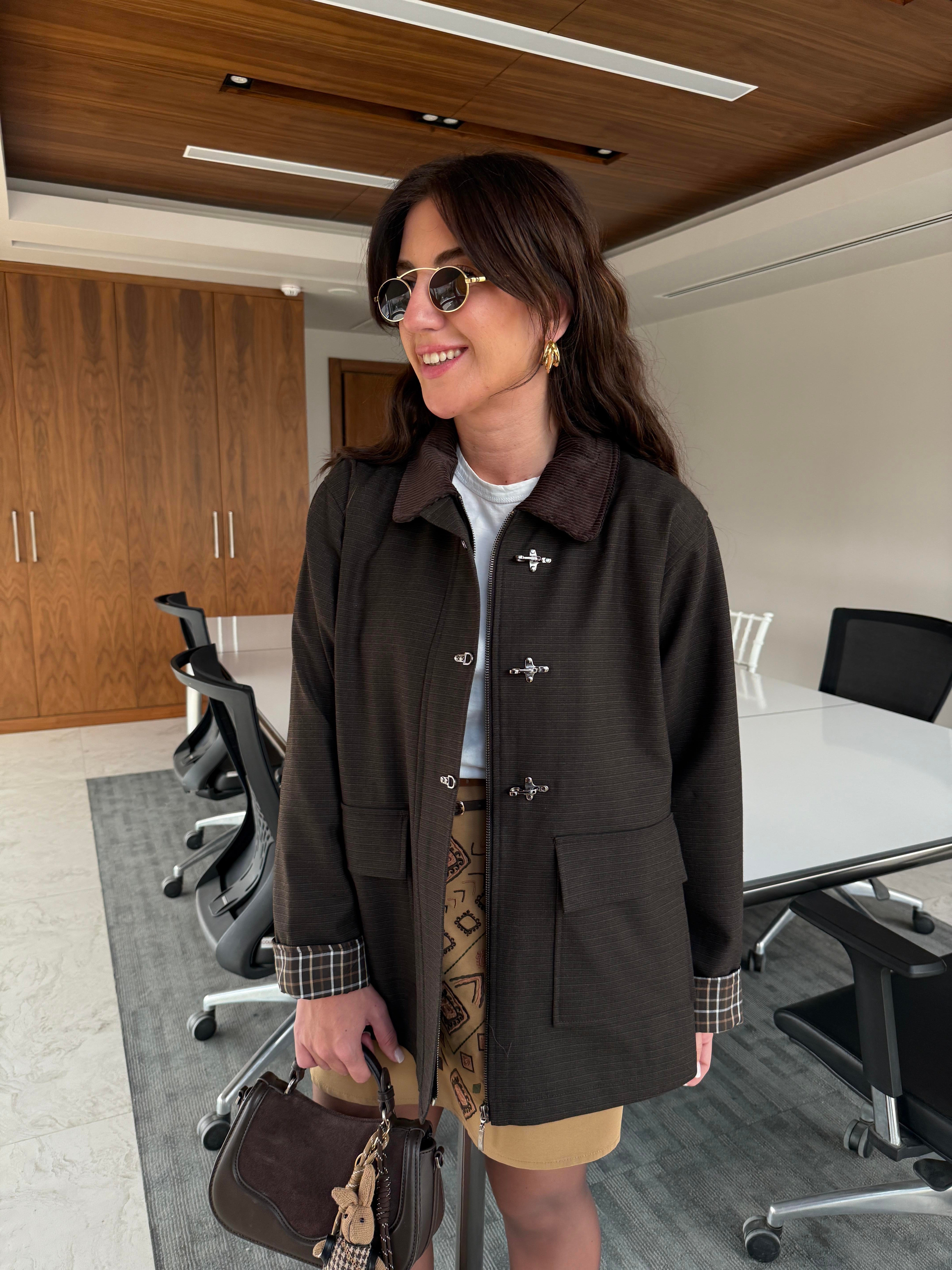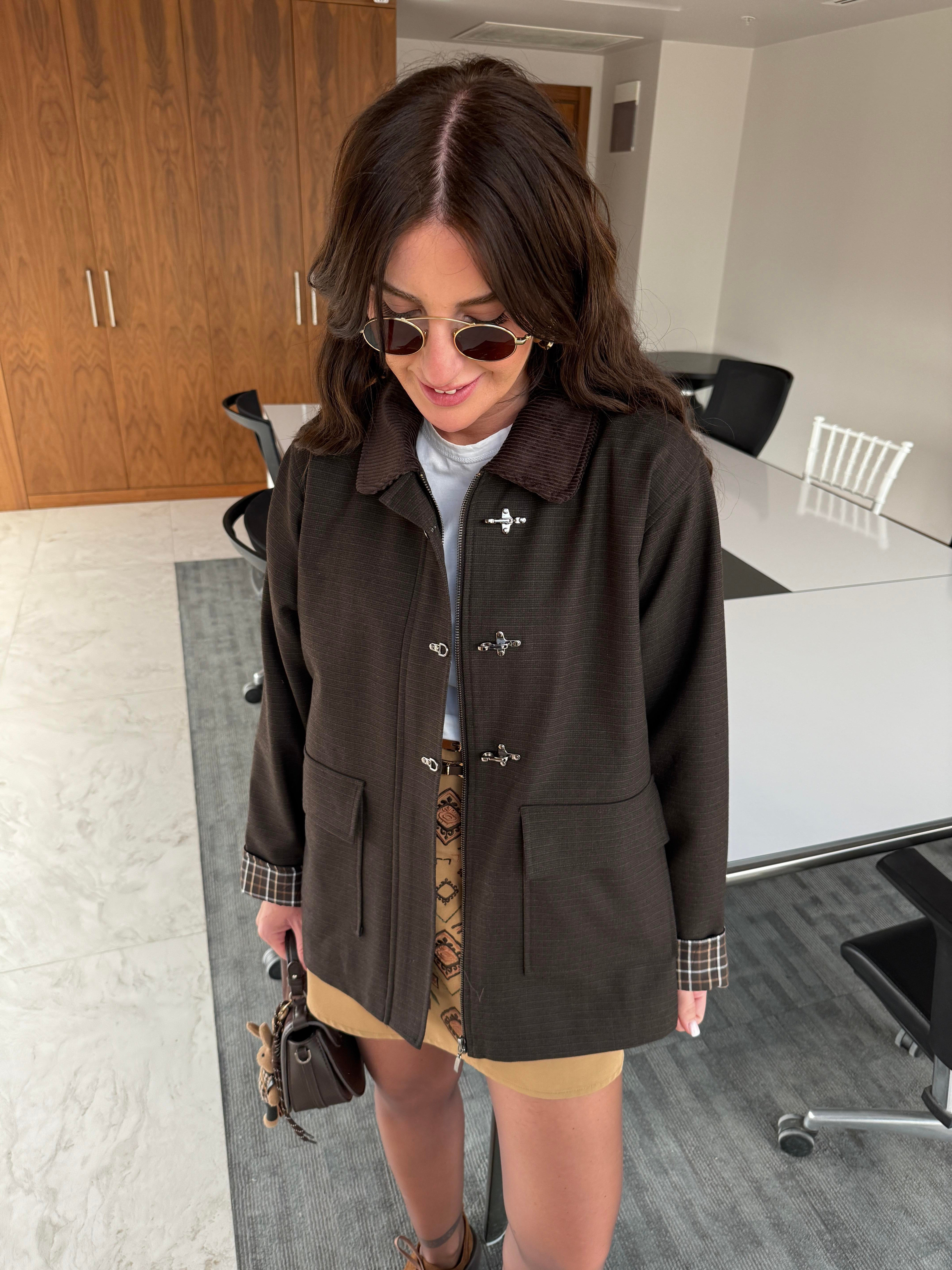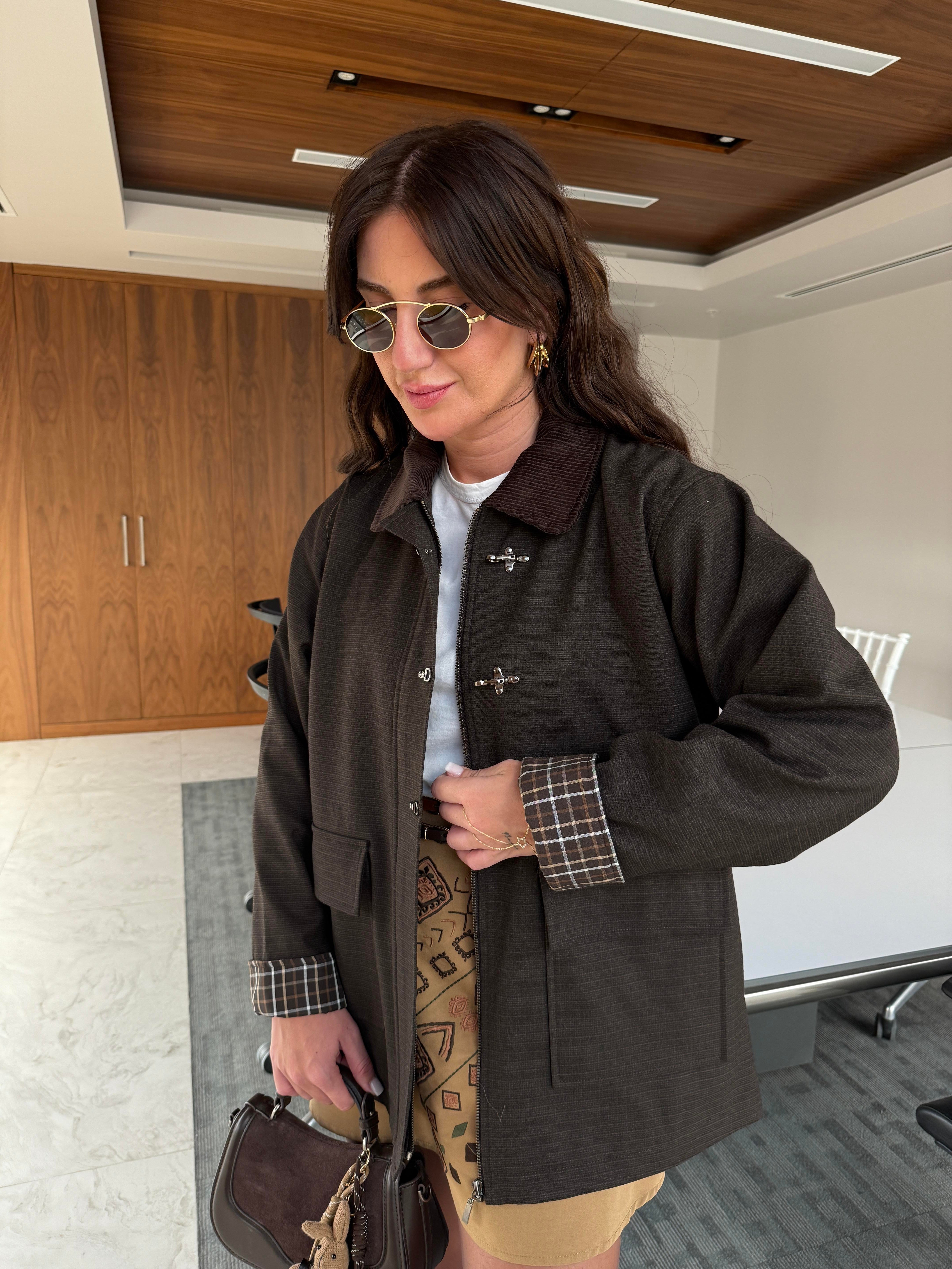 Kadife Yakalı , Ekose Astarlı , Acı Kahve , Premium Ceket (ggy433prem7595)