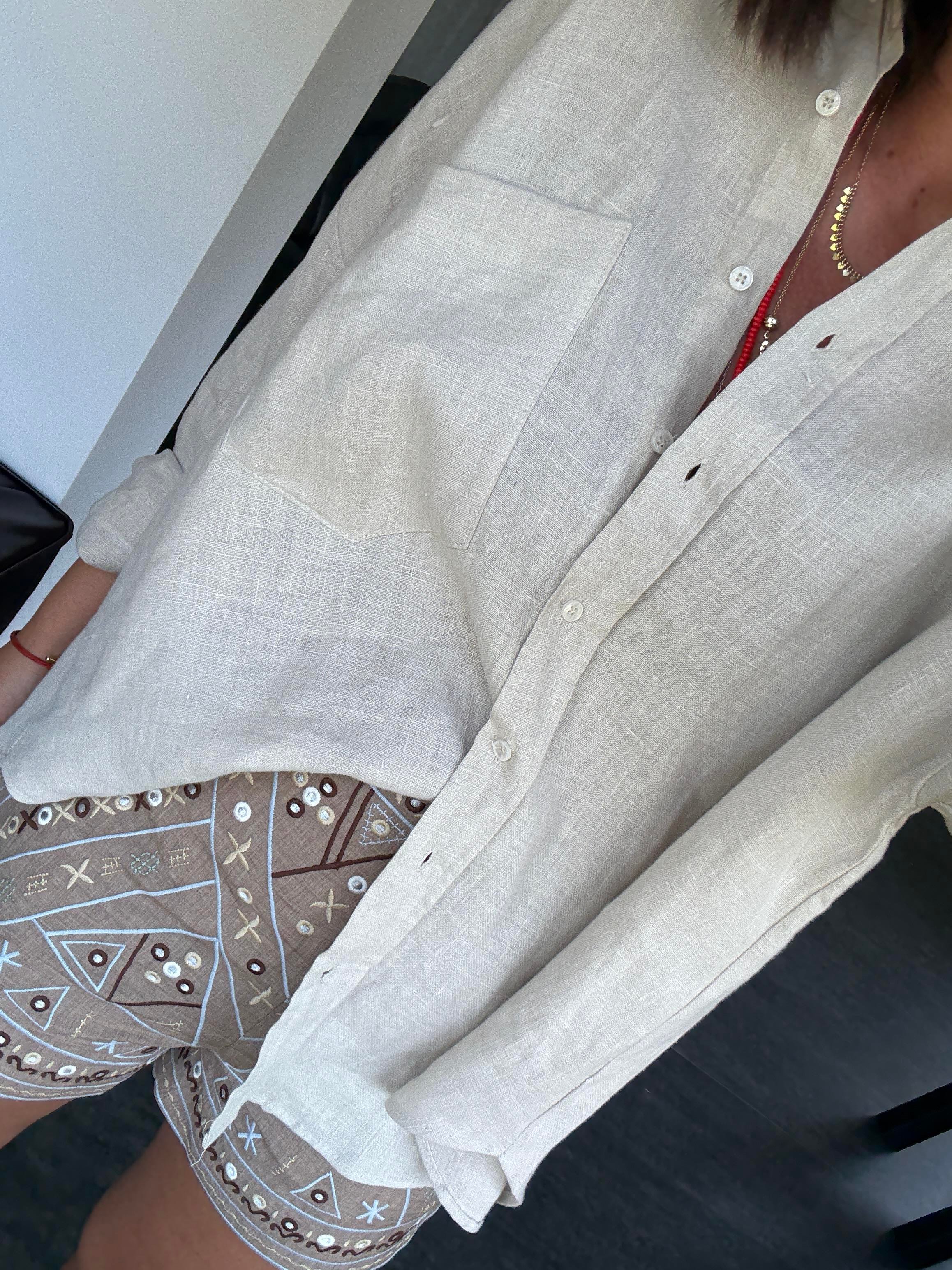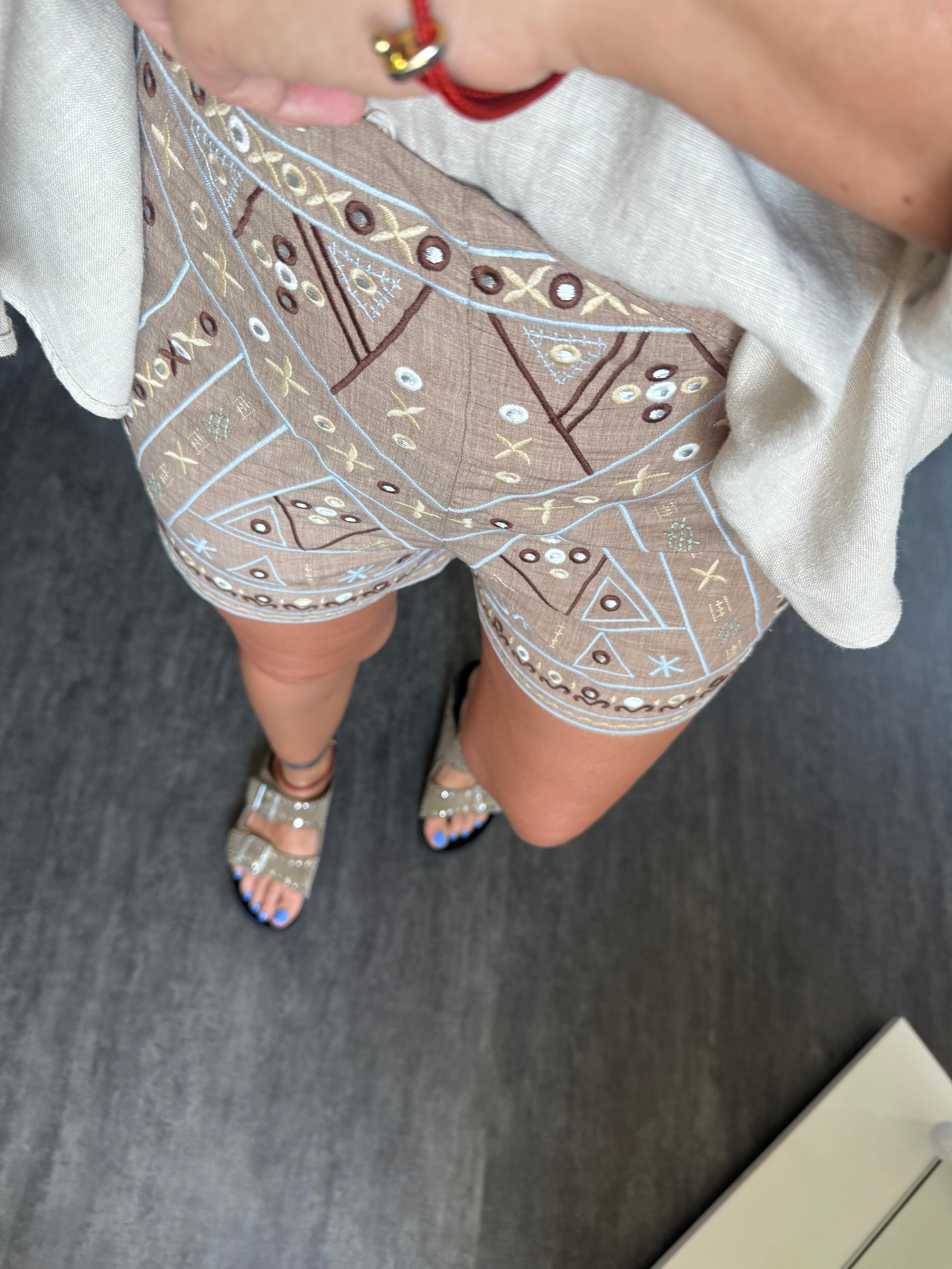 Kahve Nakış İşlemeli , Bej Şort (zu733srt)