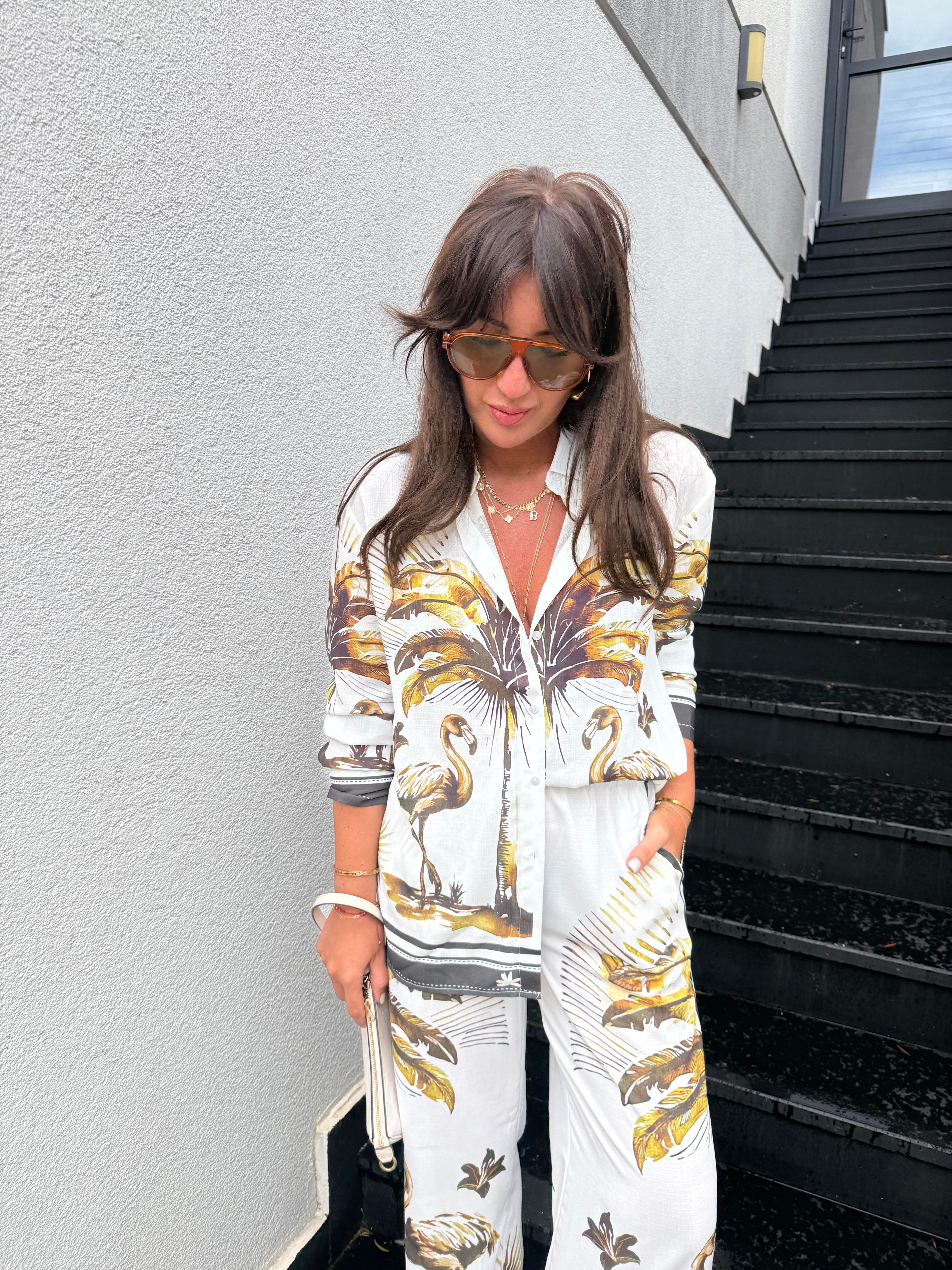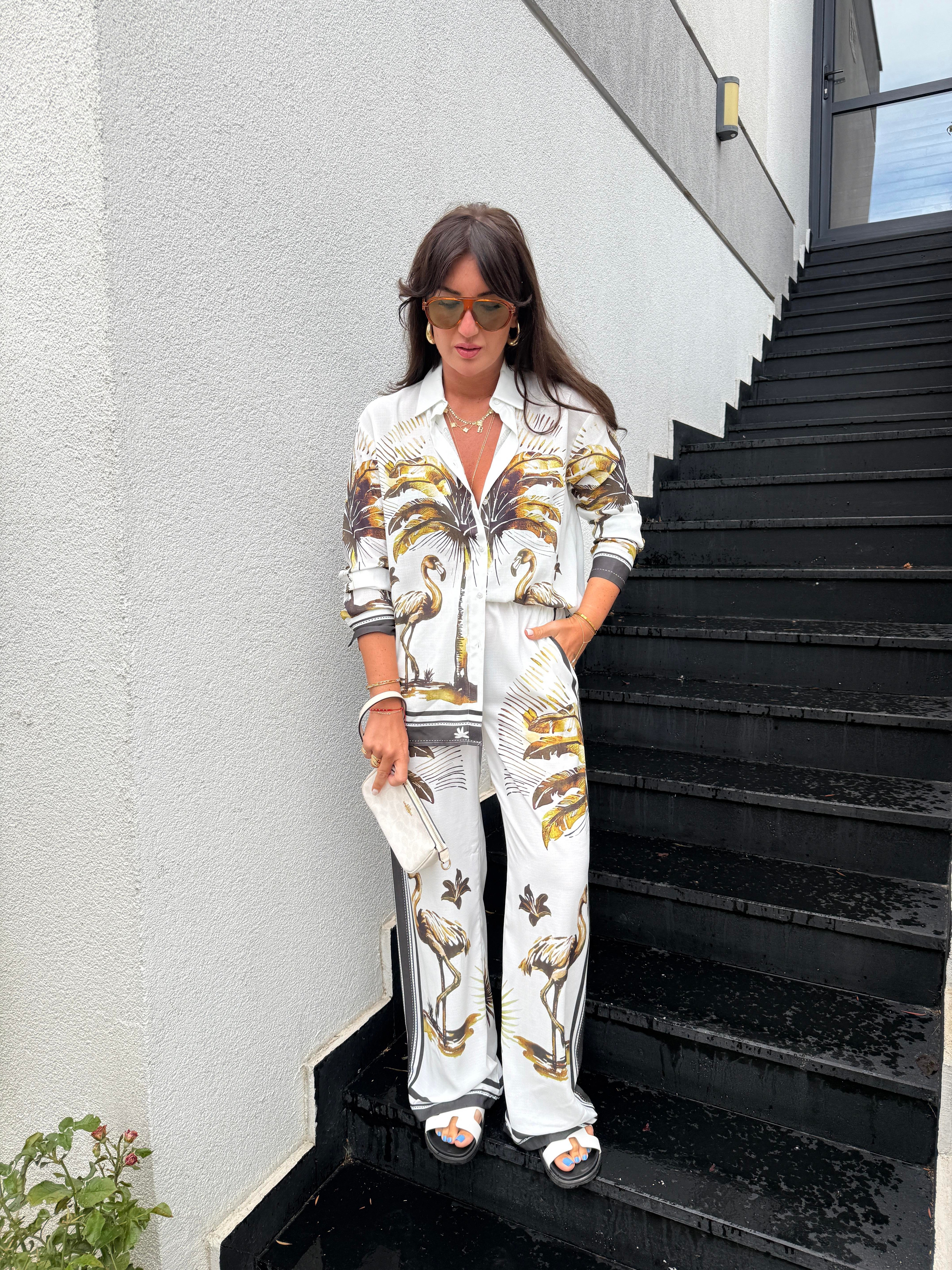 Haki Pastel Desenli , Premium , Gömlek & Pantolon Takım
