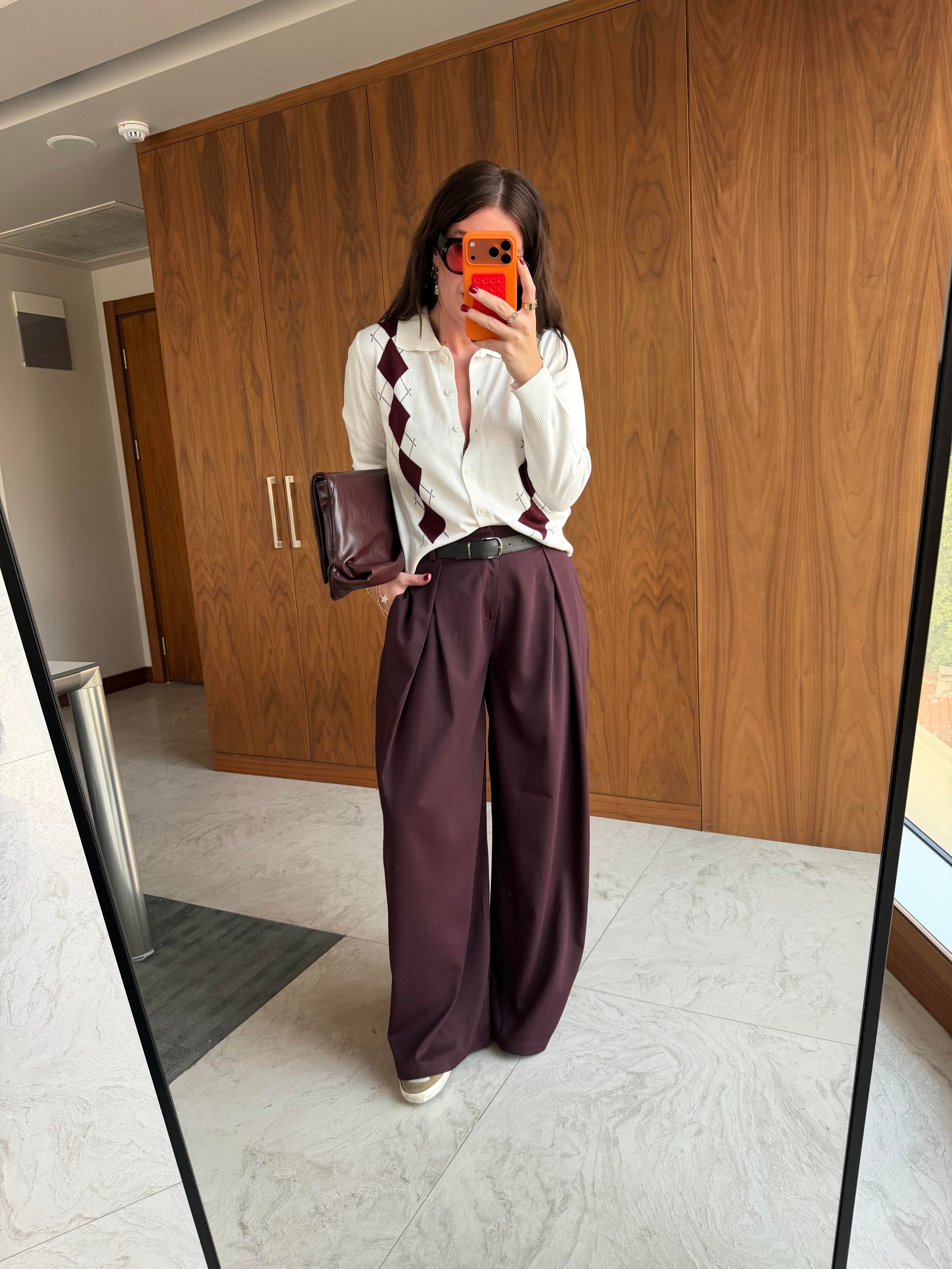 Kemerli Bordo Palazzo Pantalon (f894037757)